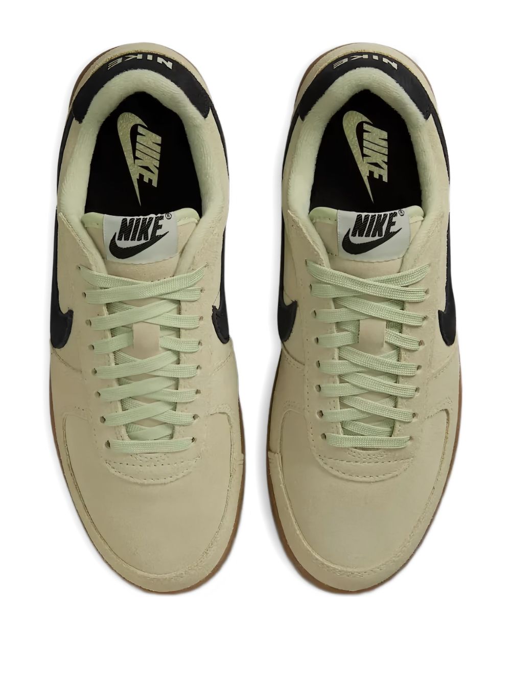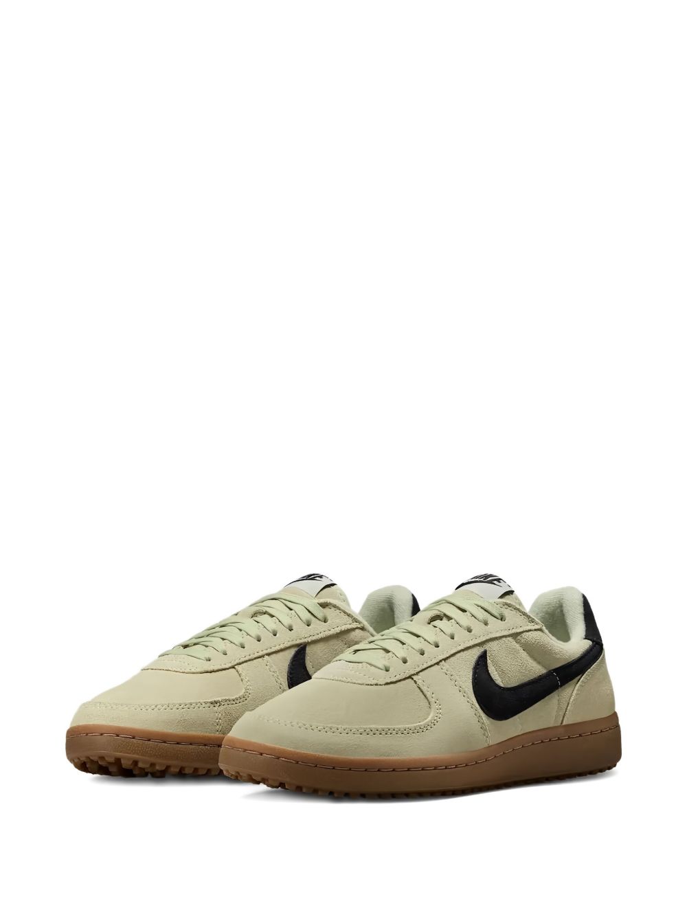 NIKE Field General sneaker in light green suede with a leather Swooshi, padded collar, a rubber sole, and a lace-up closure.