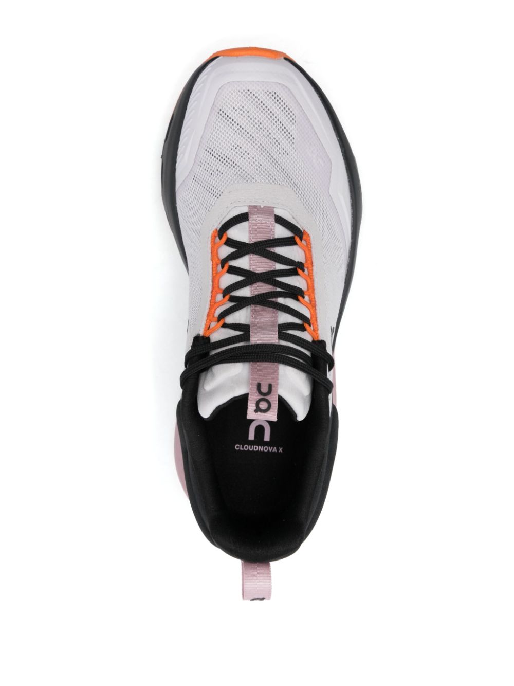 ON RUNNING Cloudnova X sneaker in white and multicolor with mesh inserts, embossed logo detail and chunky rubber sole.