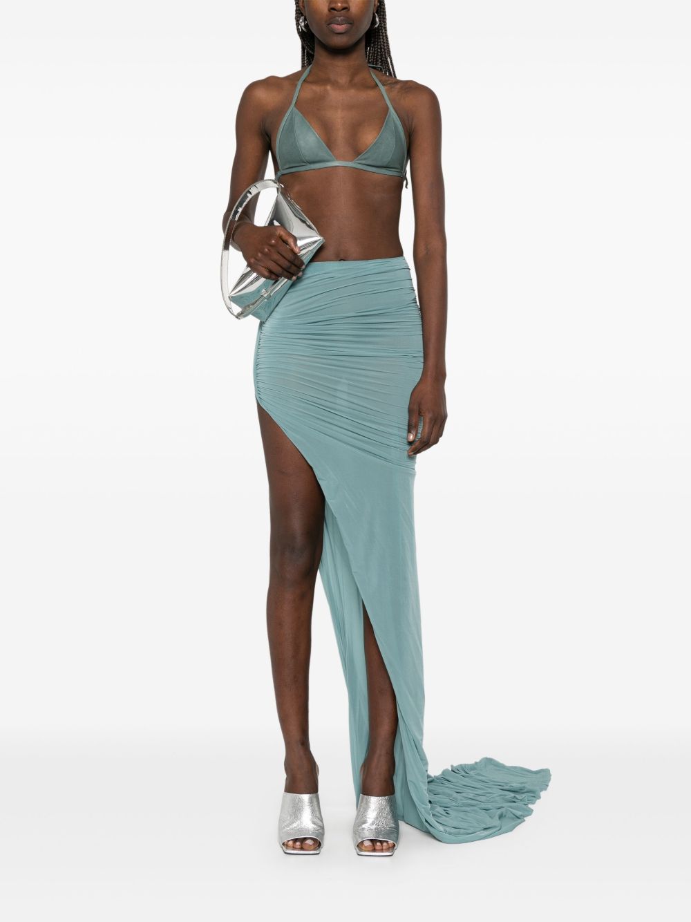 Edfu skirt by RICK OWENS in sugar paper cupro, elasticated waist, side slit, ruffled detail and floor length.