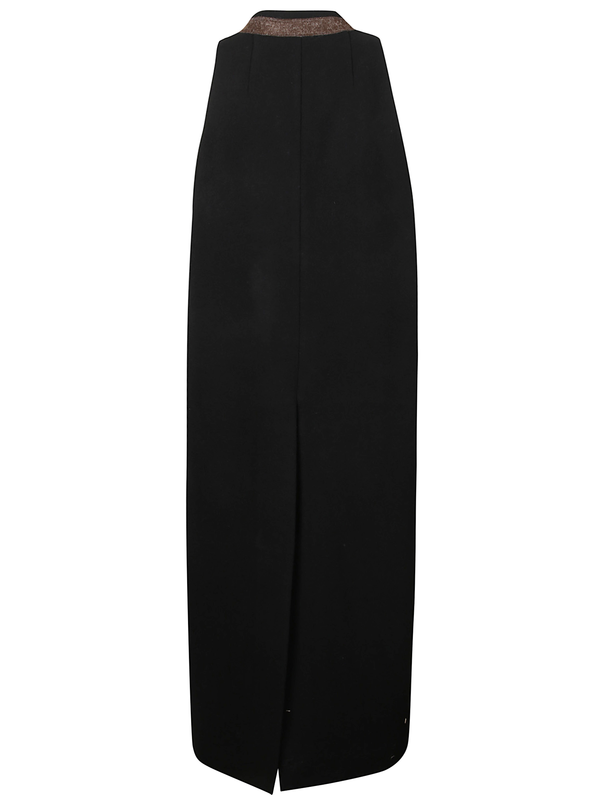 Black coat by RICK OWENS featuring button fastening and sleeveless design.