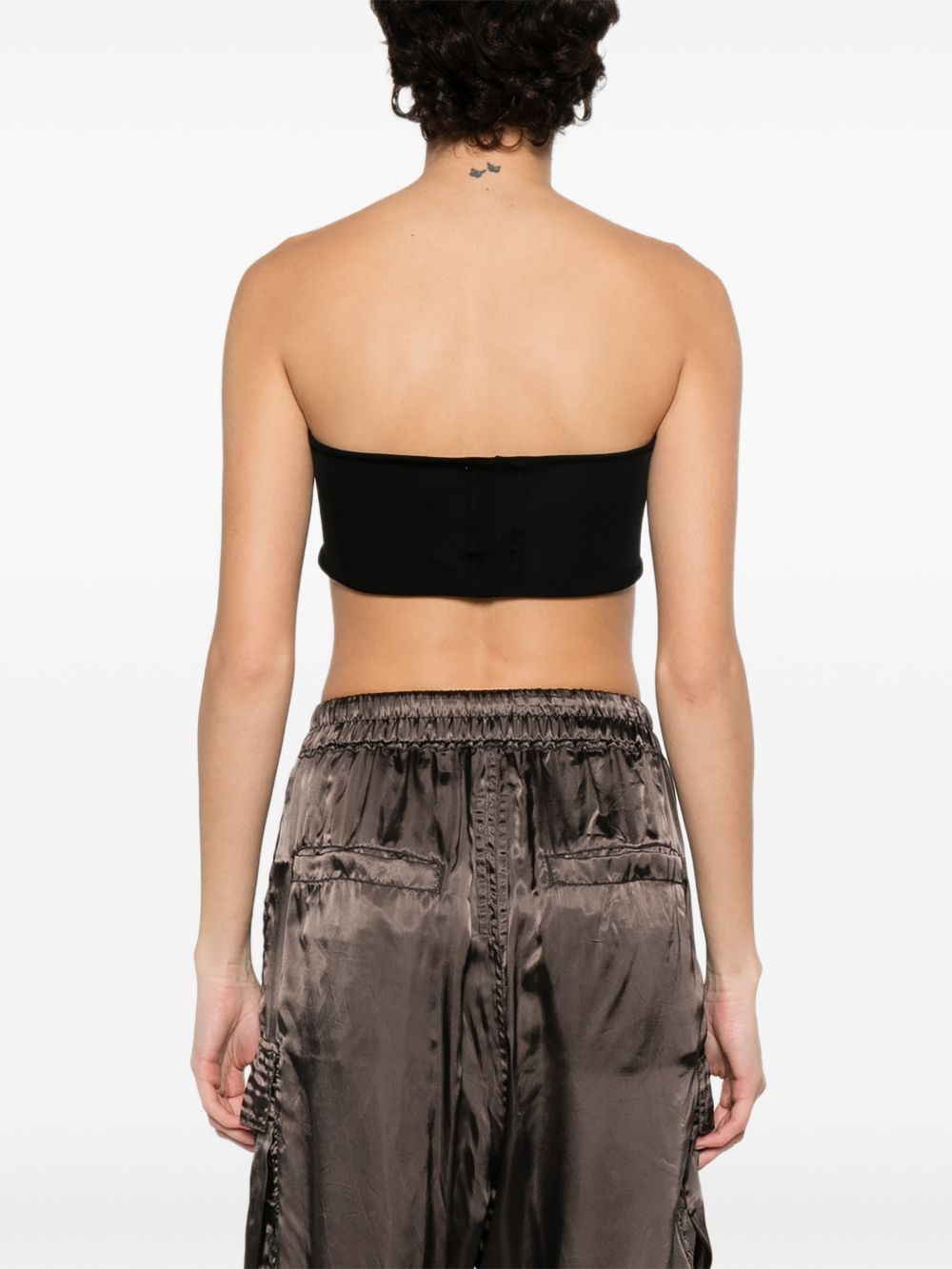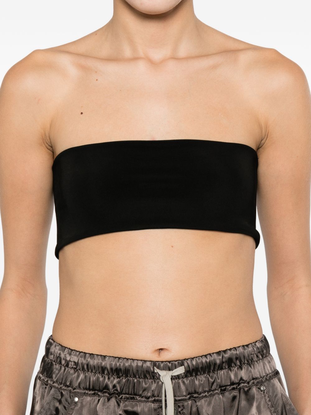 RICK OWENS black strapless viscose bandeau top with stretch fabric.