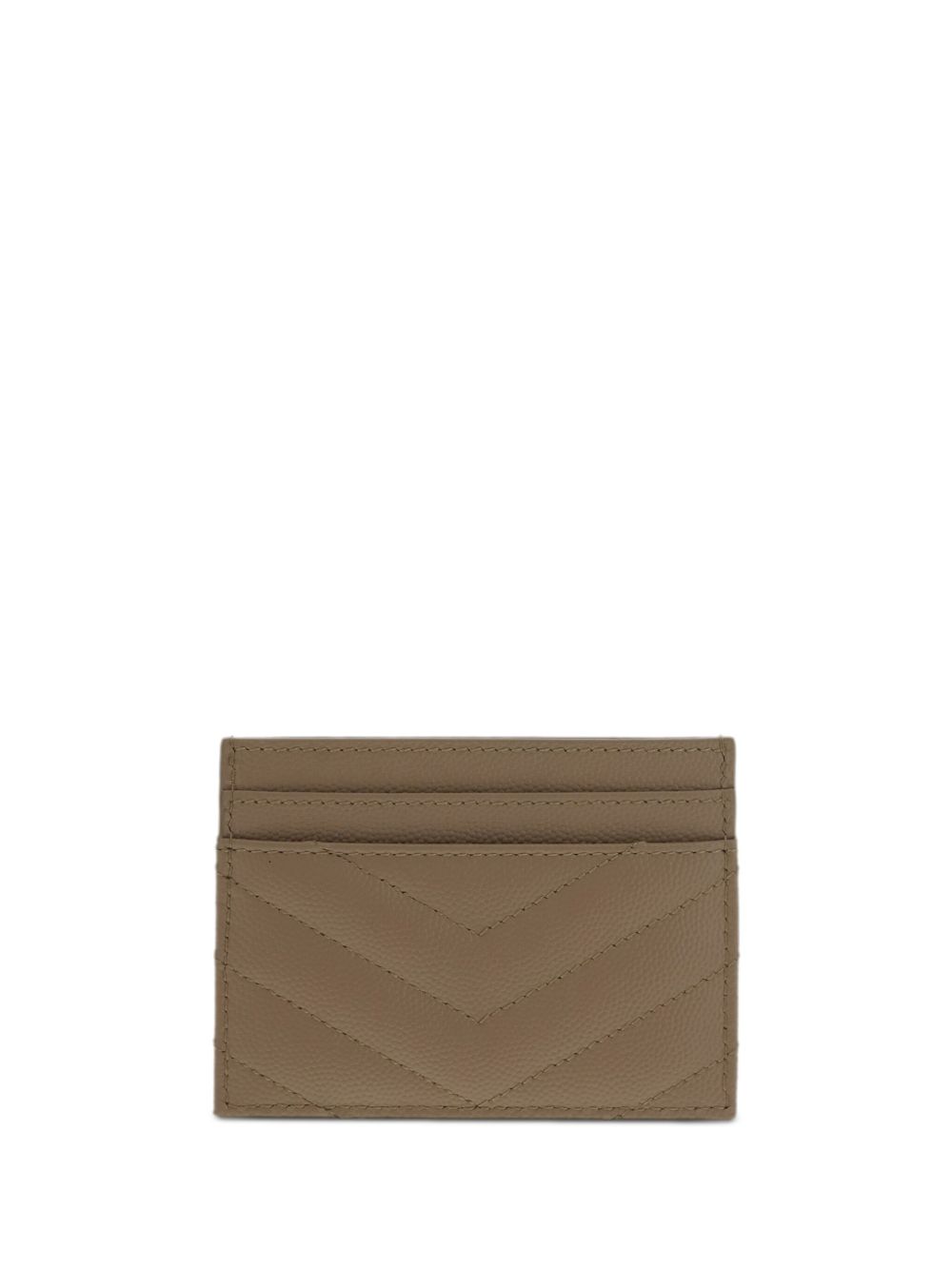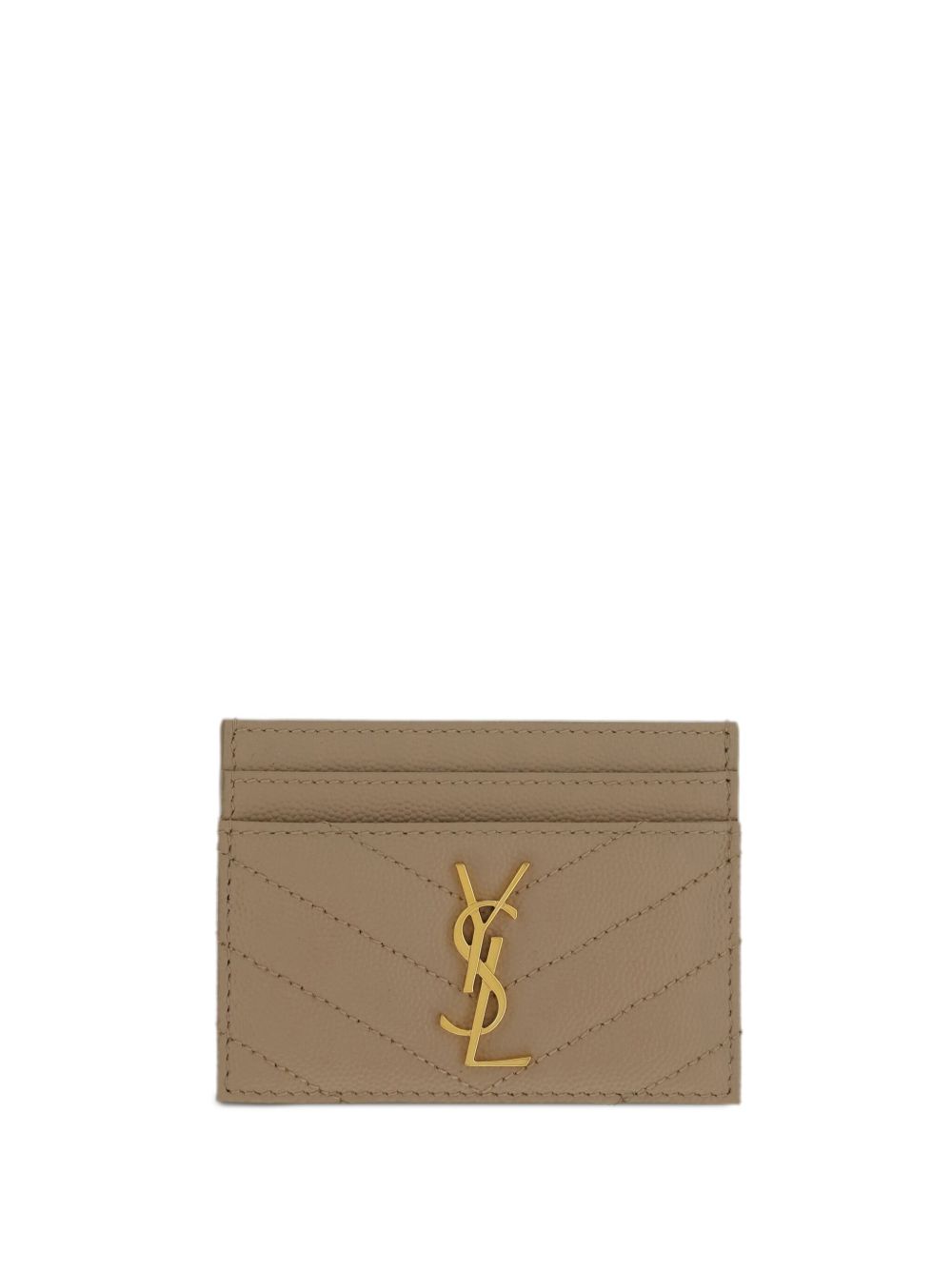 Cassandre card holder by SAINT LAURENT in beige leather, featuring YSL logo, gold hardware, five card slots and quilted stitching.