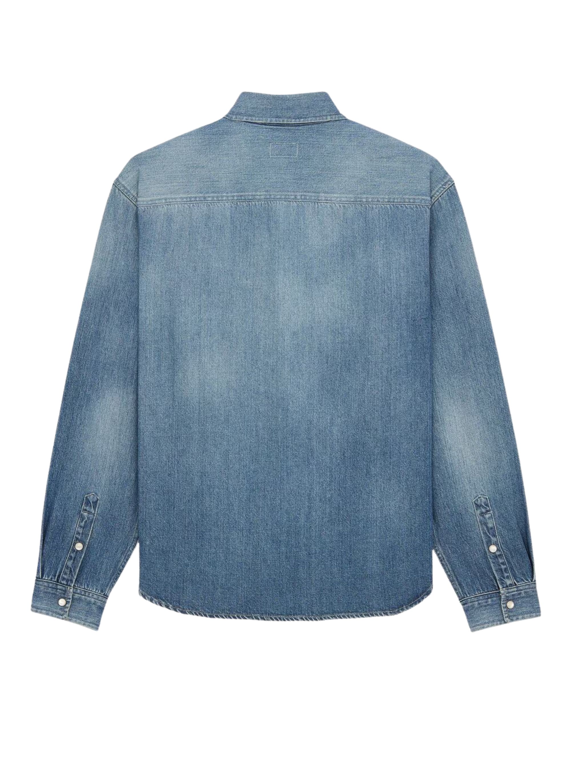 Cassandre shirt by SAINT LAURENT in blue cotton, featuring button fastening, buttoned cuffs, pointed collar and Cassandre embroidery on the chest.