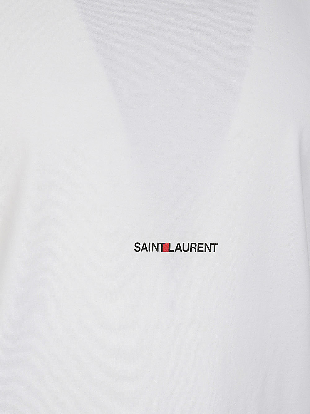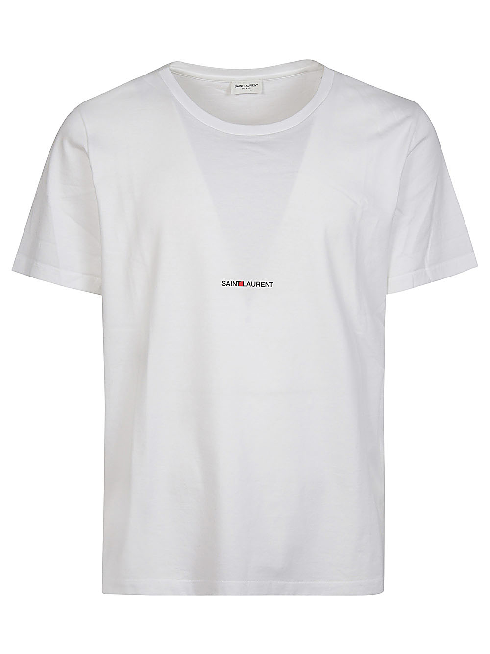 White SAINT LAURENT cotton T-shirt featuring a front logo print, short sleeves, a printed logo on the front and a straight hem.