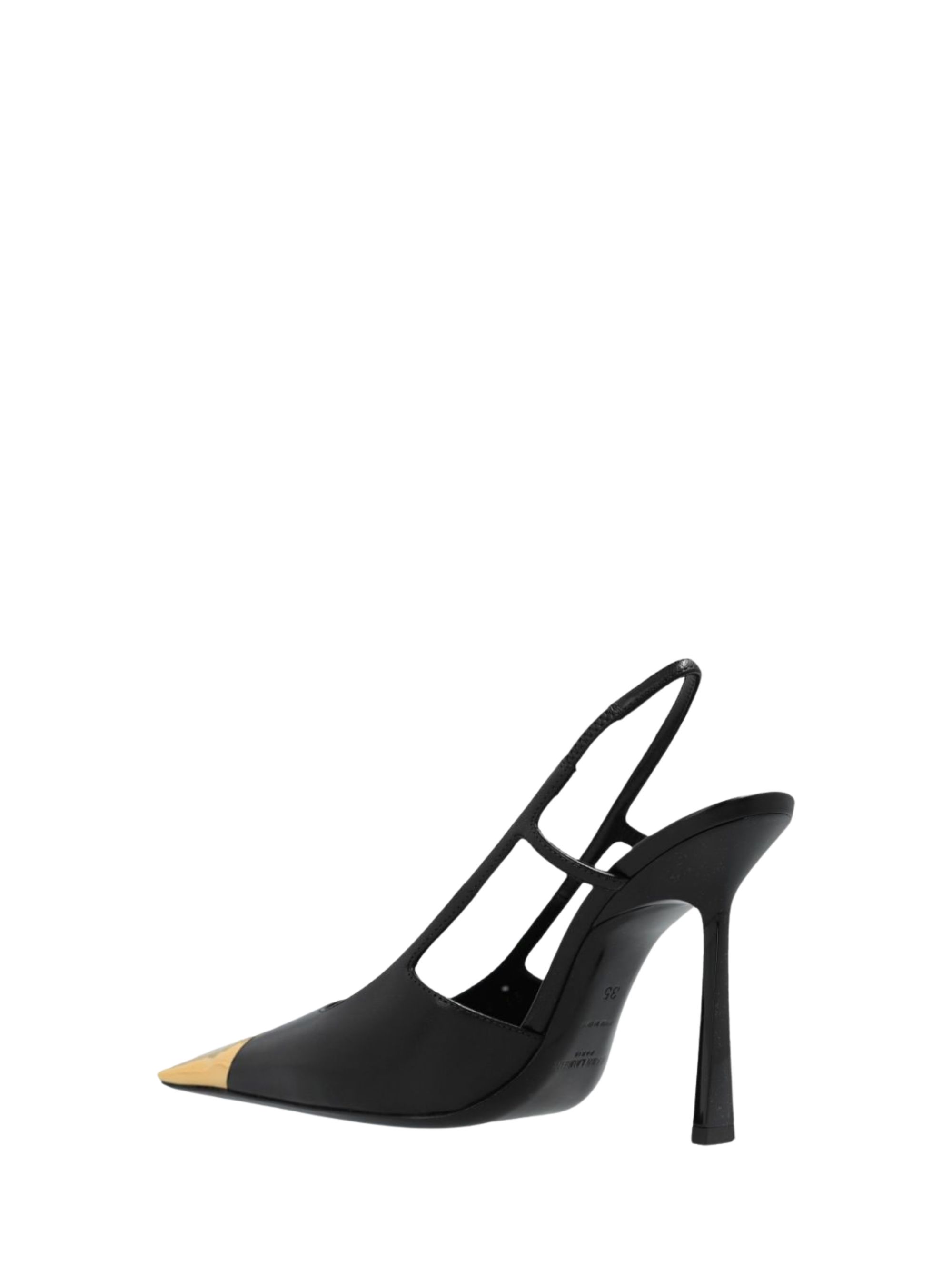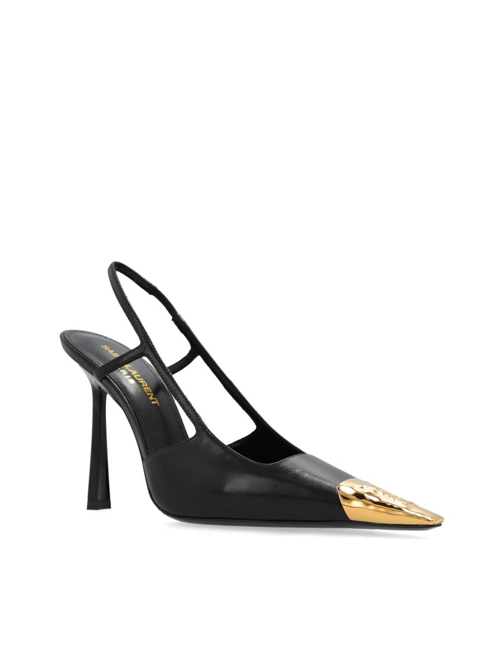 SAINT LAURENT Jeanne black leather pumps with a metal toe, elasticated heel strap, and 110mm stiletto heel.
