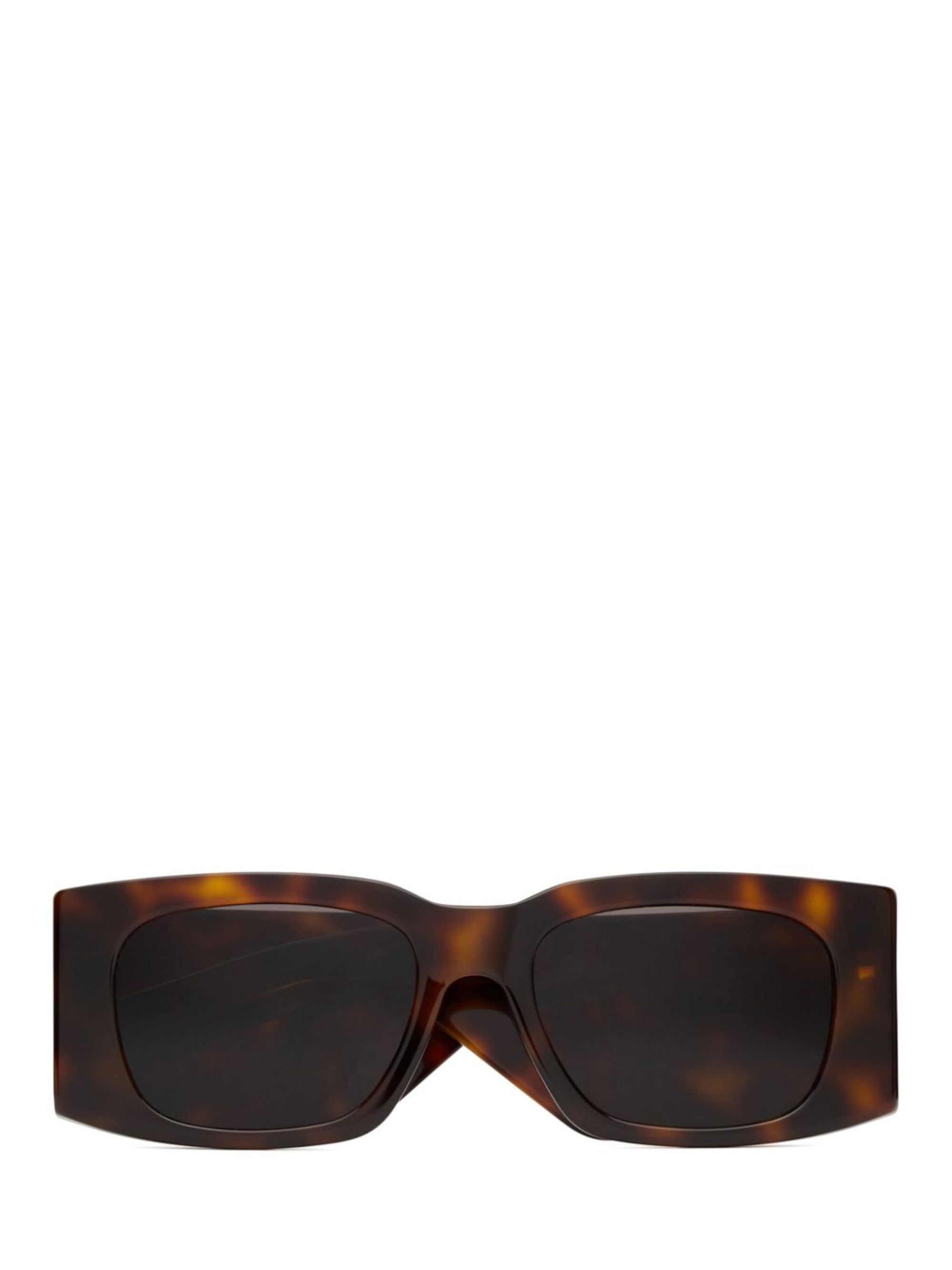 SAINT LAURENT sunglasses in leopard print, characterized by side logo, rectangular acetate frame, black lenses.
