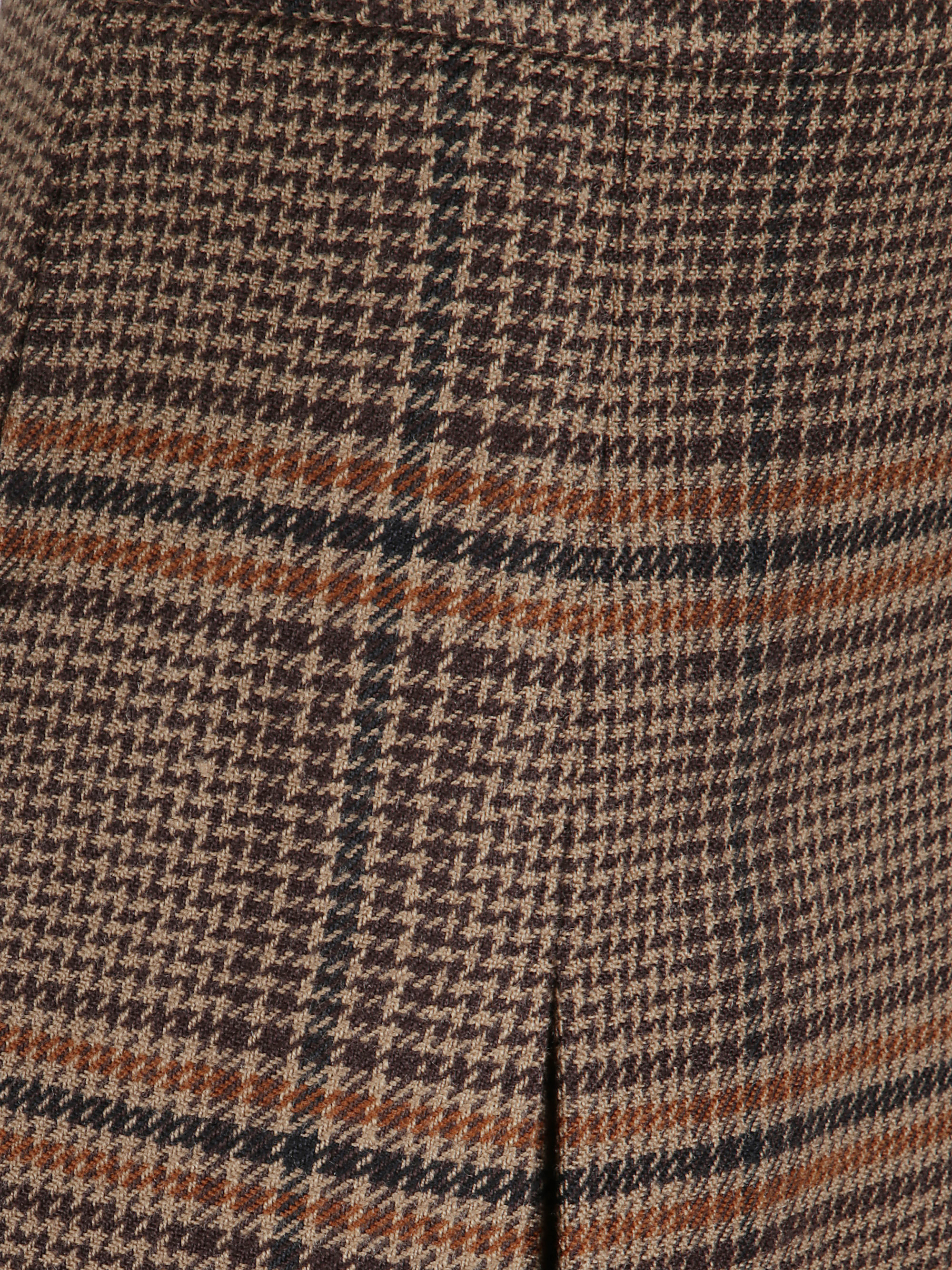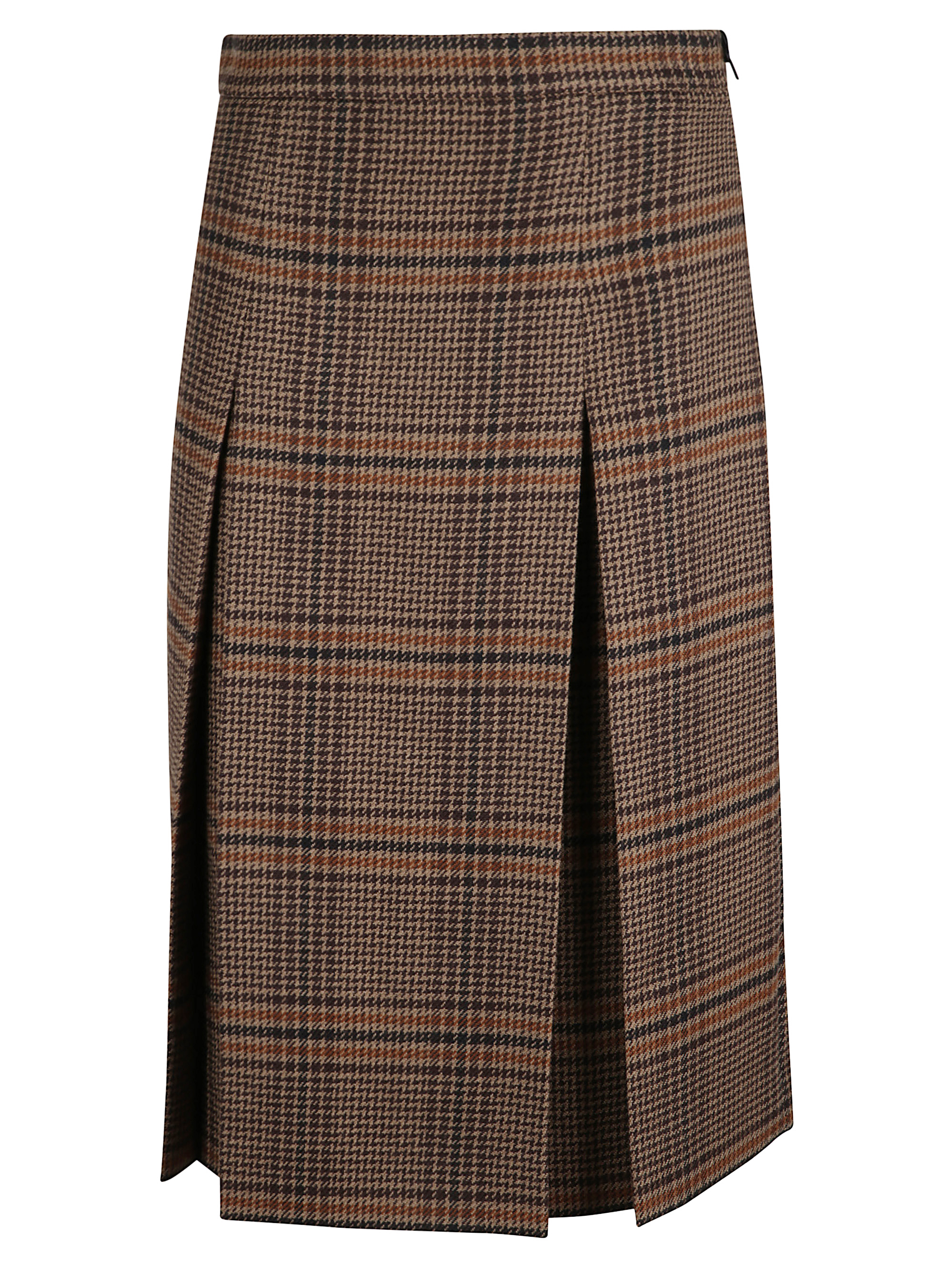 Brown Prince of Wales midi skirt by SAINT LAURENT in wool, featuring silk lining, hidden zip fastening on the side and hidden side pockets.