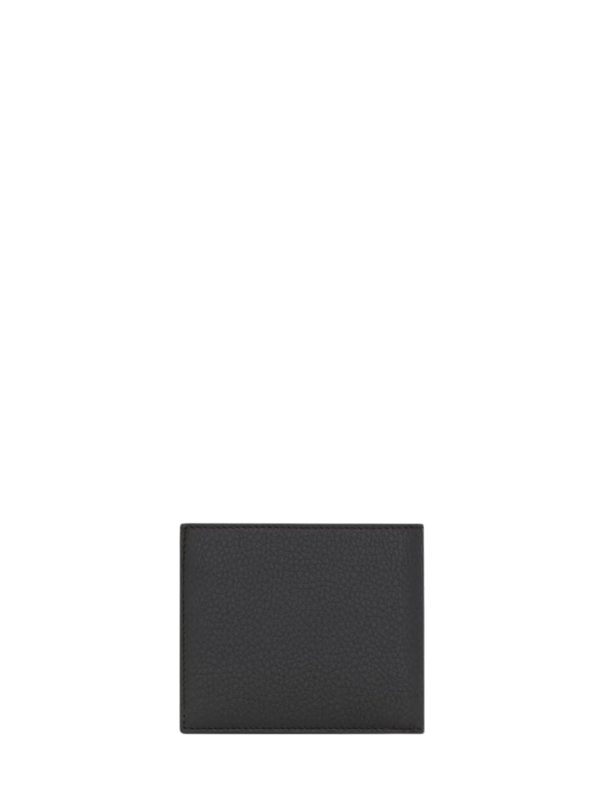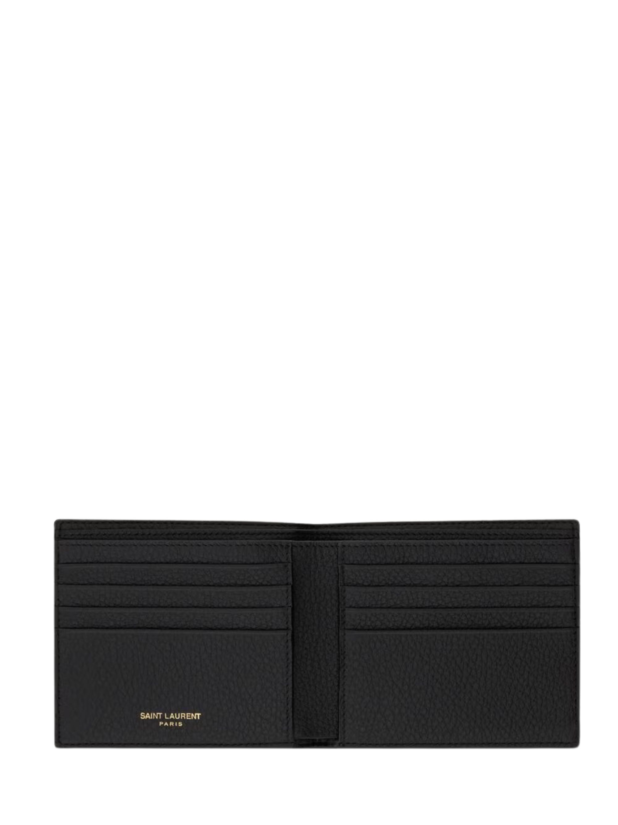 SAINT LAURENT Tiny East/West wallet in black leather, featuring silver-tone hardware, 2 bill compartments, 8 card slots, leather lining and YSL signature.