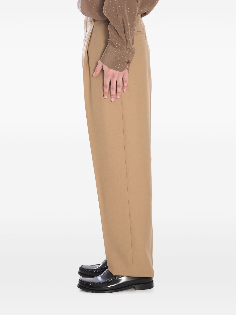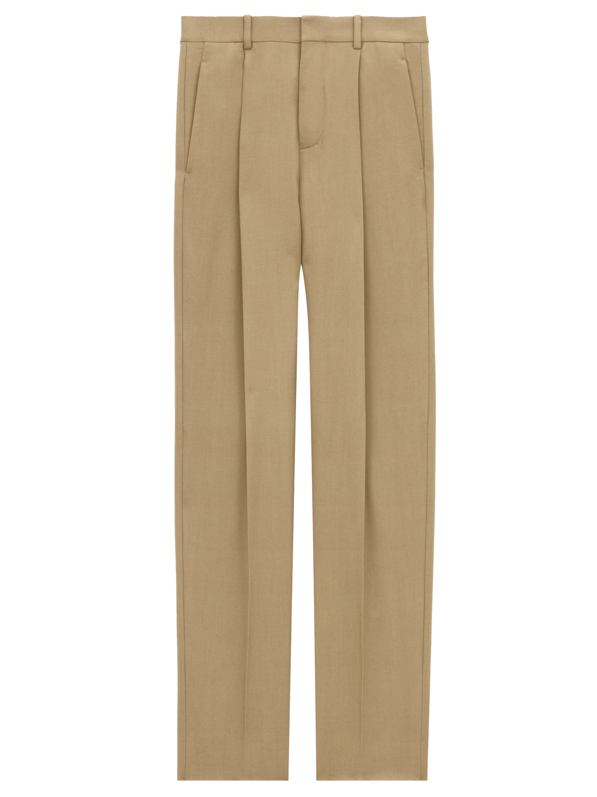 Beige trousers by SAINT LAURENT featuring a high waist, slanted pockets, belt loops and a carrot-fit cut with a single pleat.