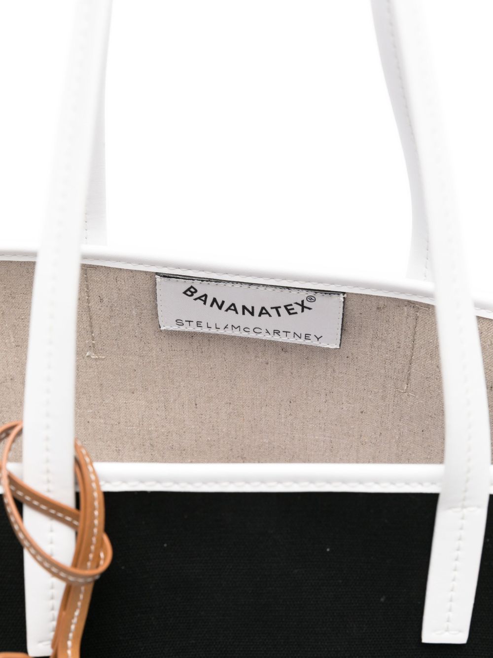 STELLA MCCARTNEY black hemp logo shoulder bag with long top handles, adjustable and removable shoulder strap and metal feet.