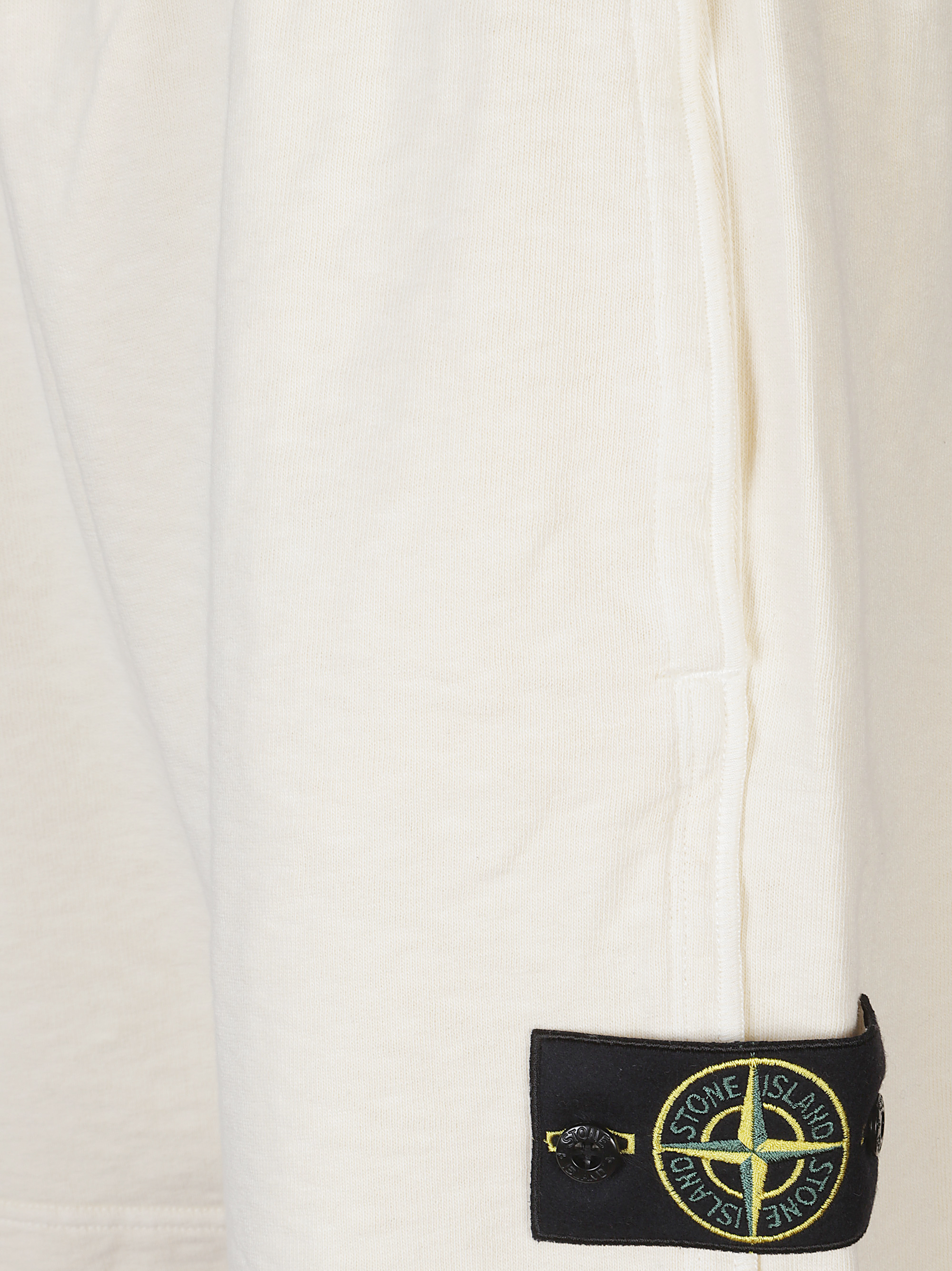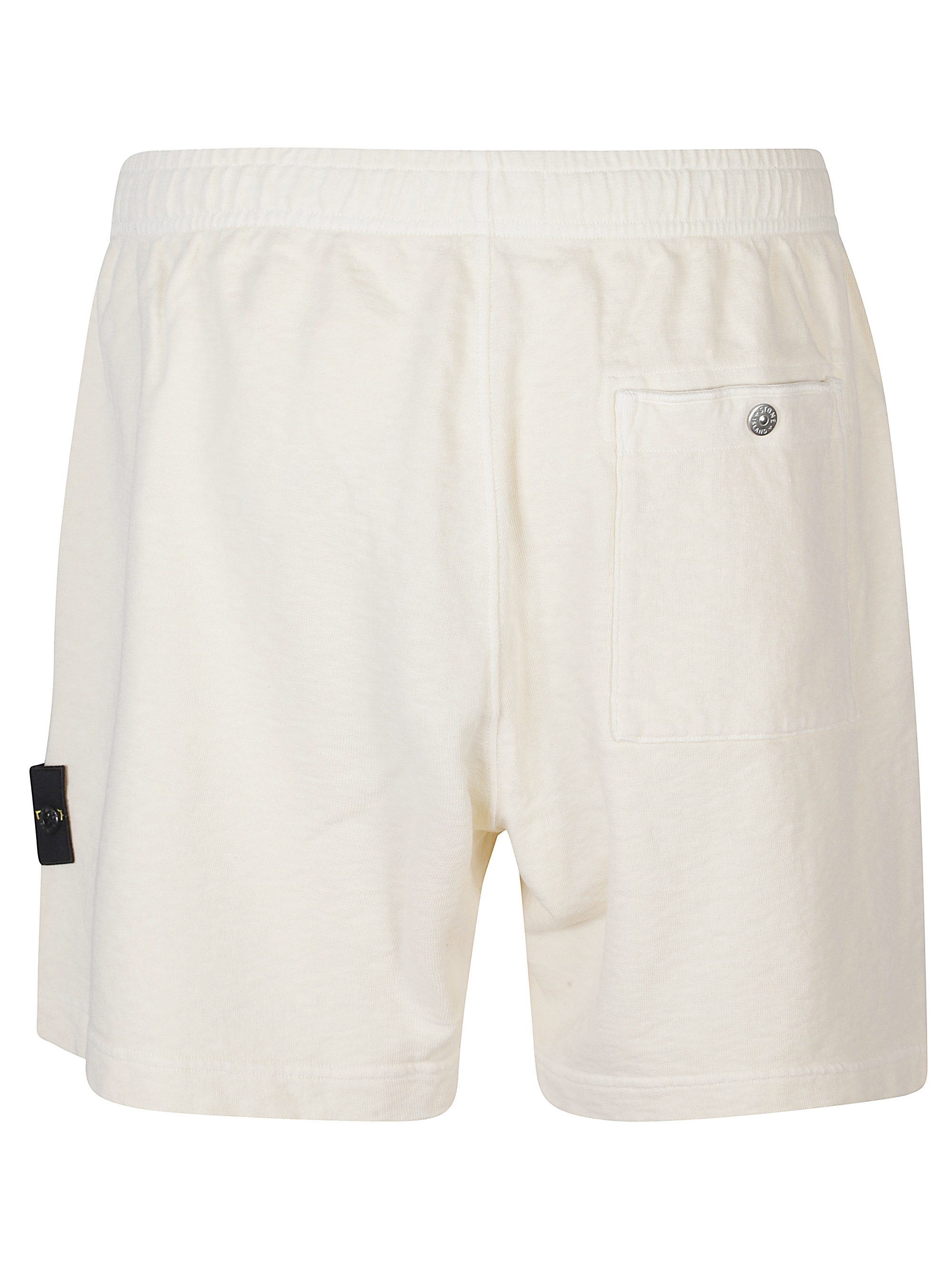 STONE ISLAND ivory cotton shorts featuring an elasticated waist, back pocket and side logo.