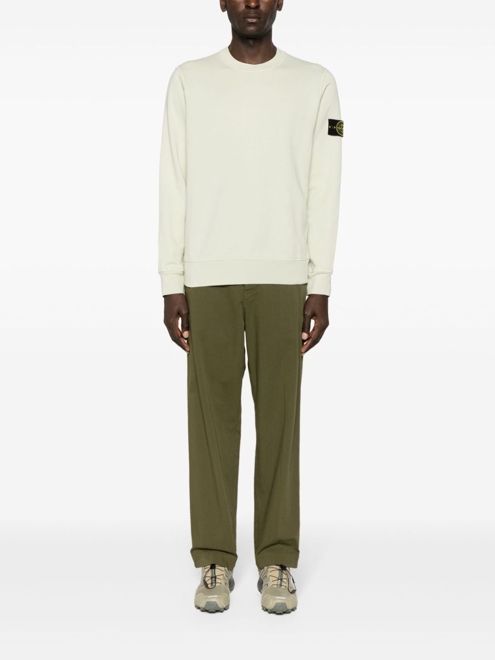 STONE ISLAND cotton sweatshirt in green color, characterized by logo patch on the side, two long sleeves, crew neck.