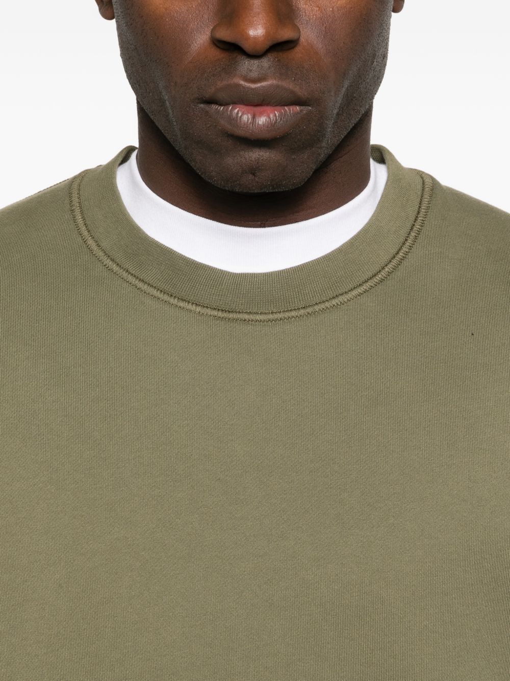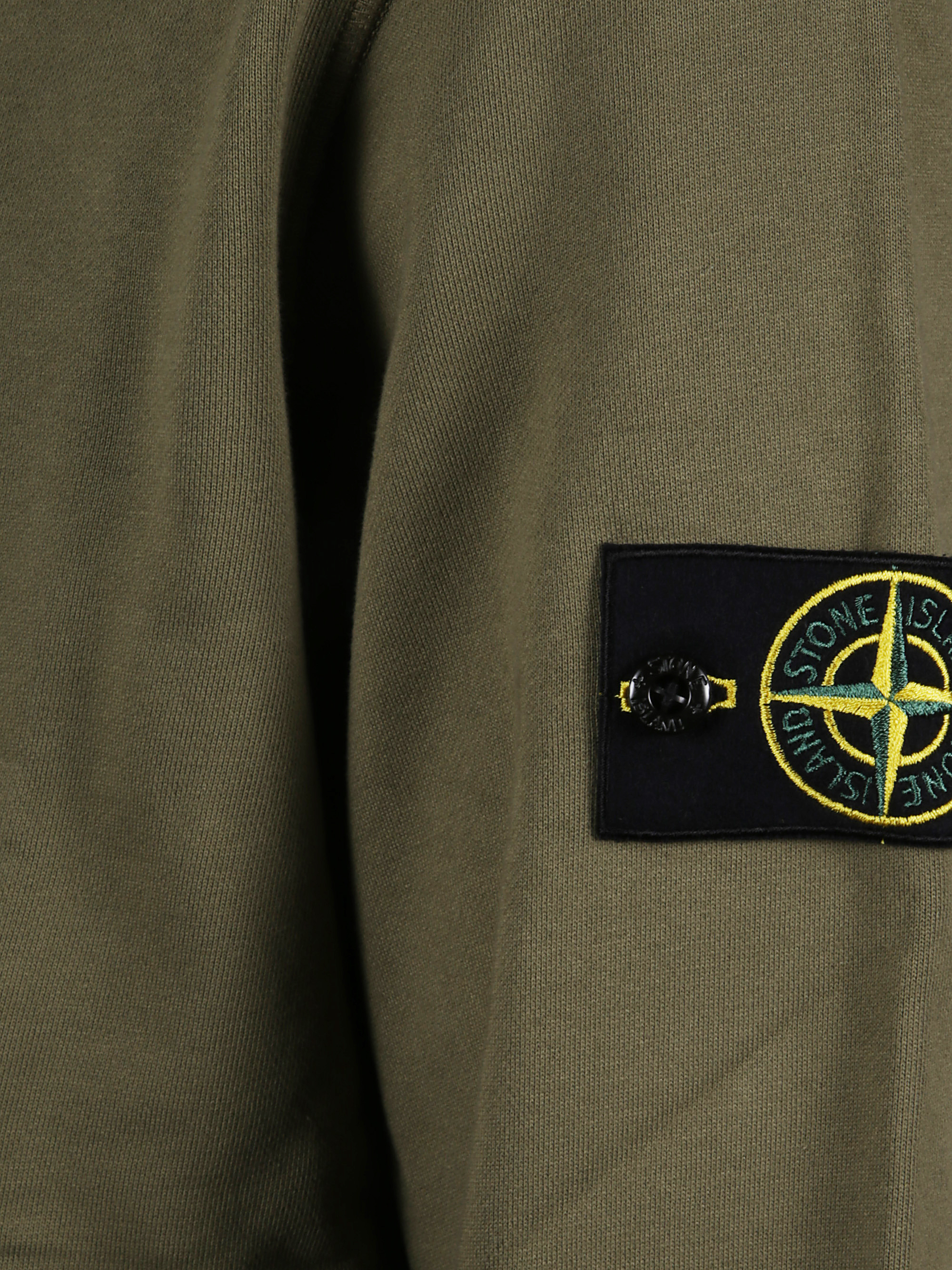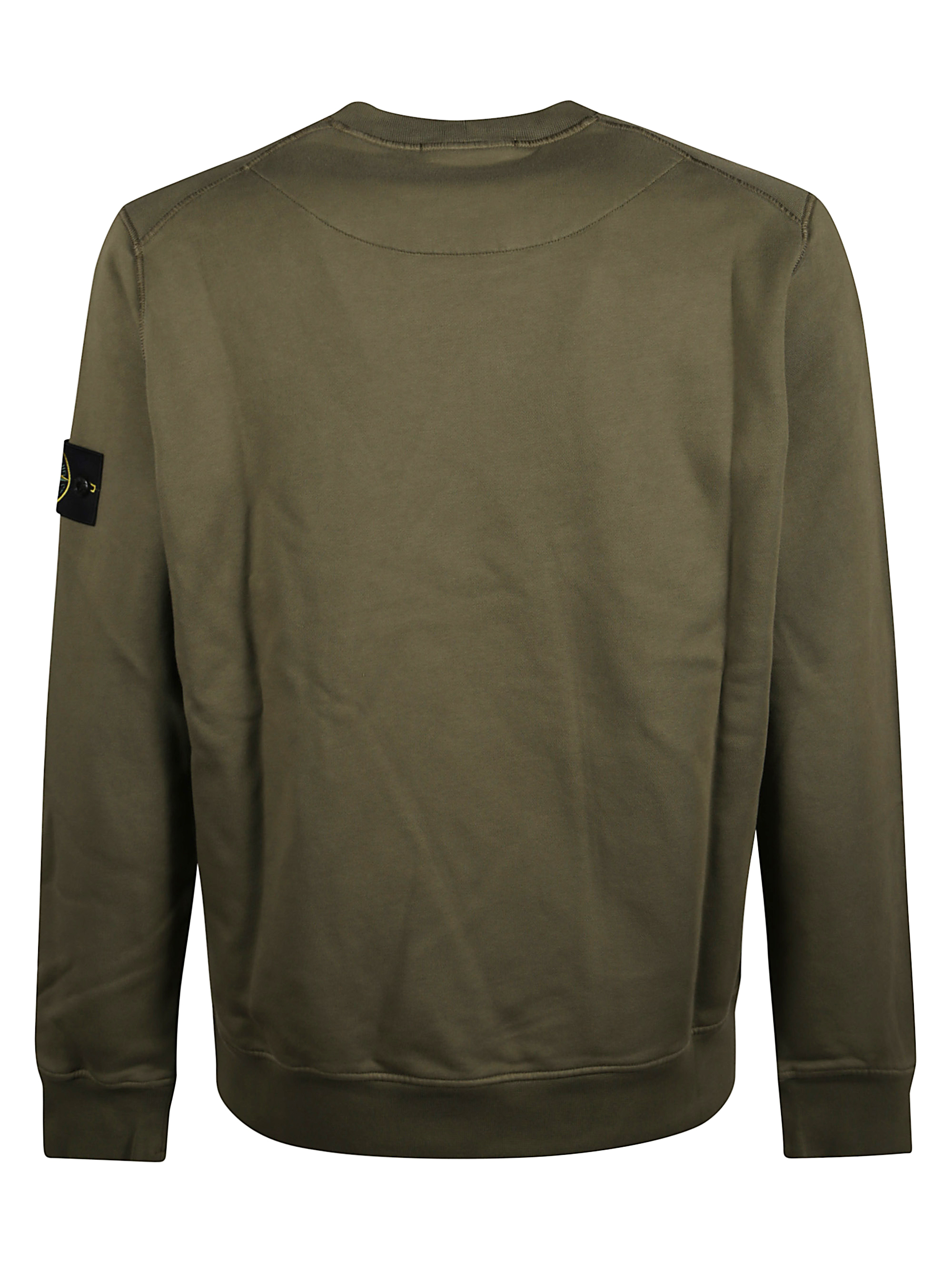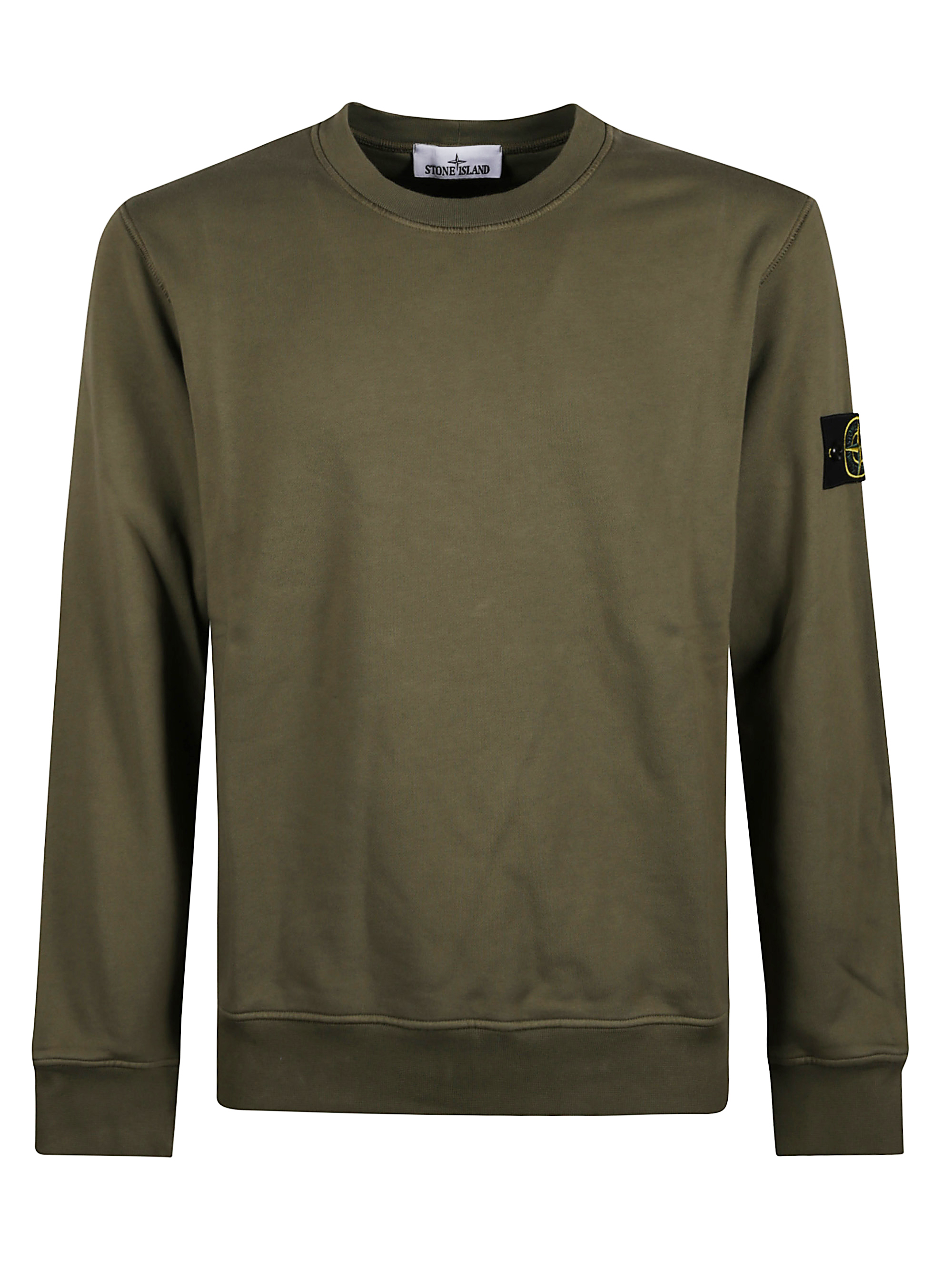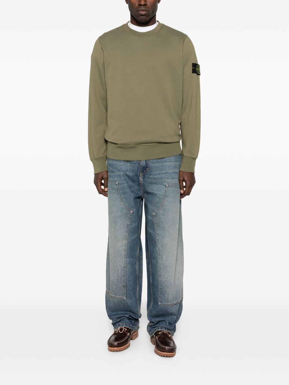 STONE ISLAND green cotton logo crew neck sweater featuring long sleeves, a crew neck, a ribbed hem and a logo on the sleeve.