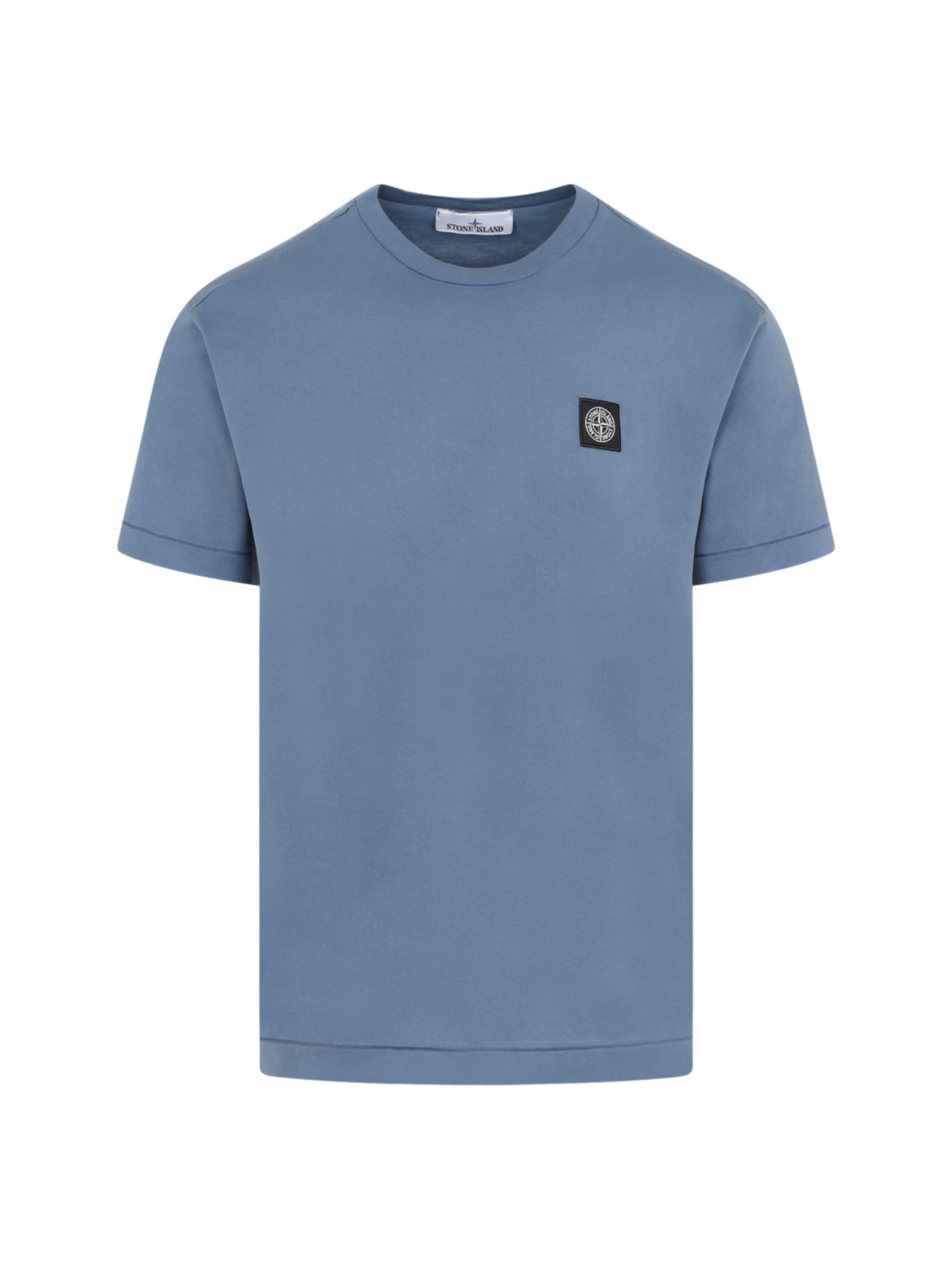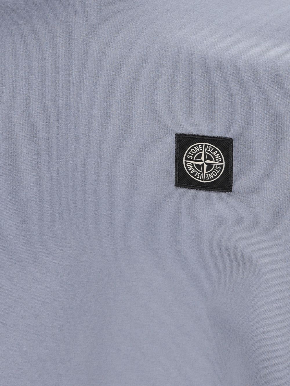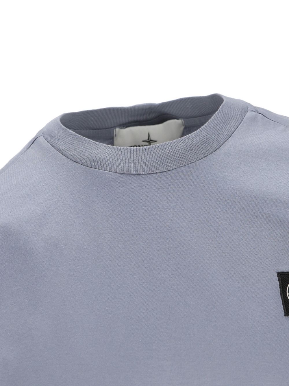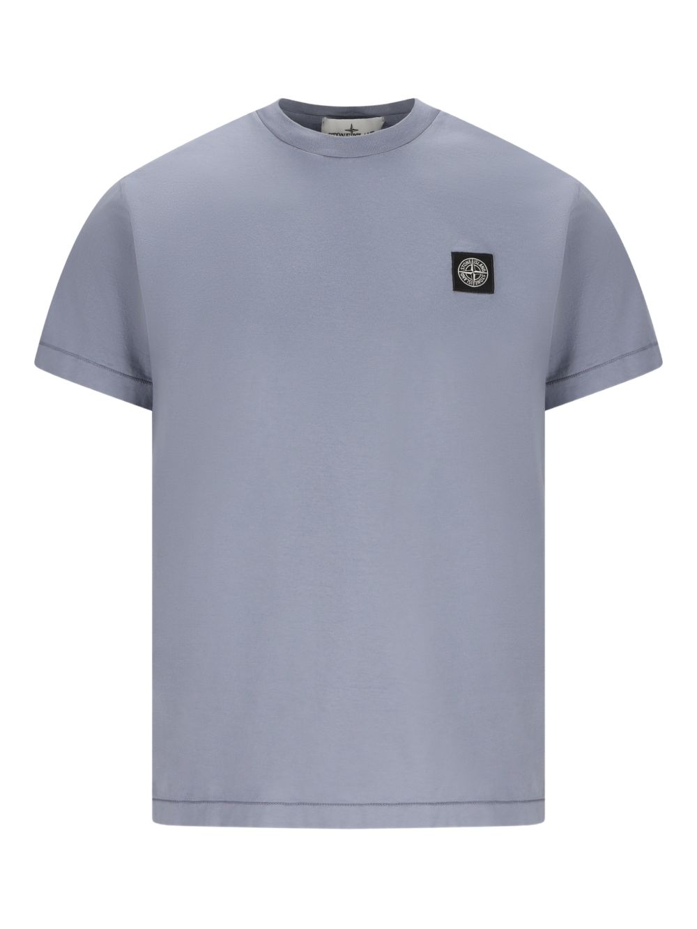 STONE ISLAND blue cotton logo T-shirt, featuring a crew neck, chest logo, and short sleeves.