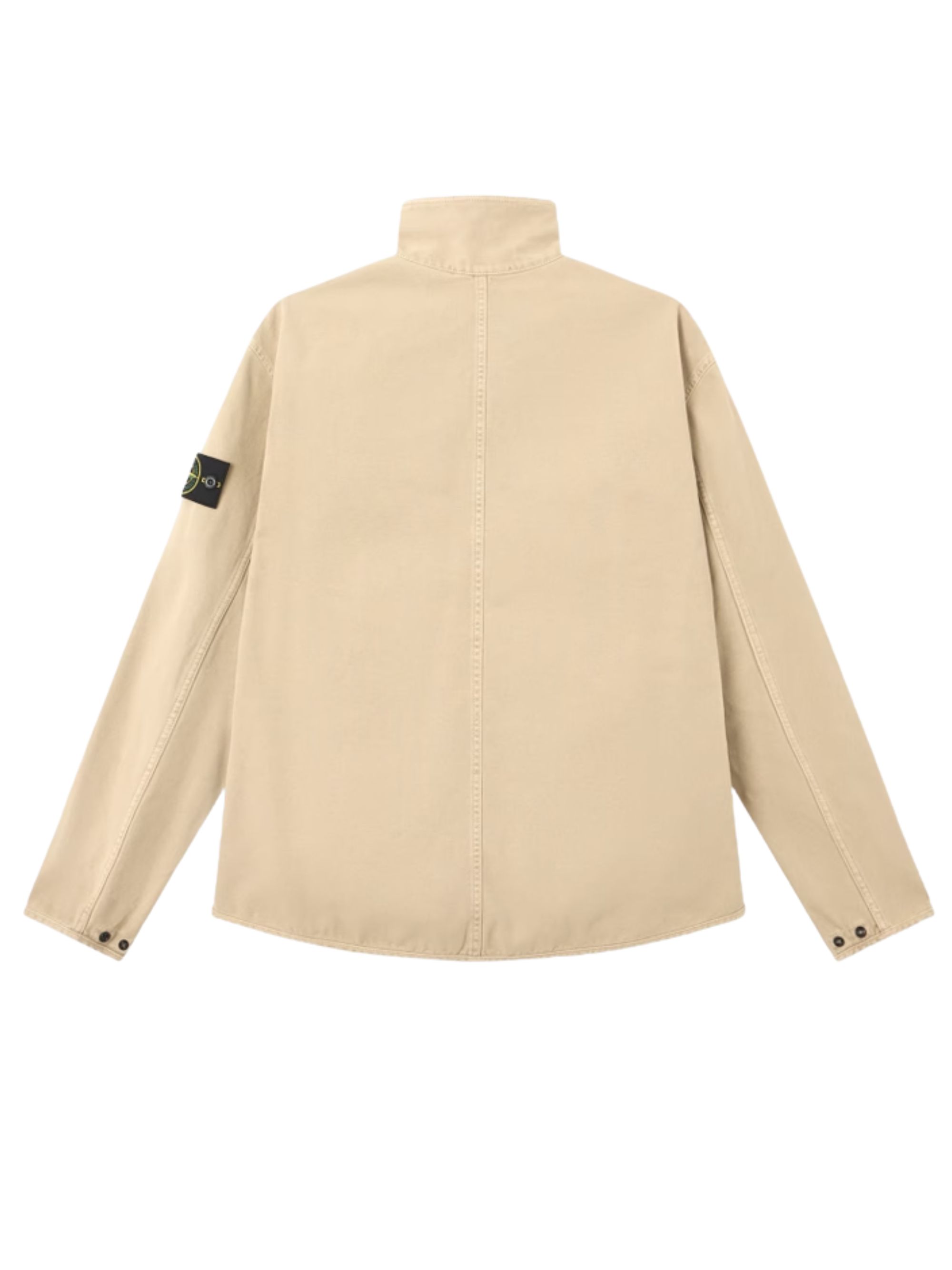 STONE ISLAND beige cotton Panama shirt with an old-fashioned look, featuring a chest pocket, adjustable cuffs, a high collar, a two-way zip closure, and a logo on the sleeve.