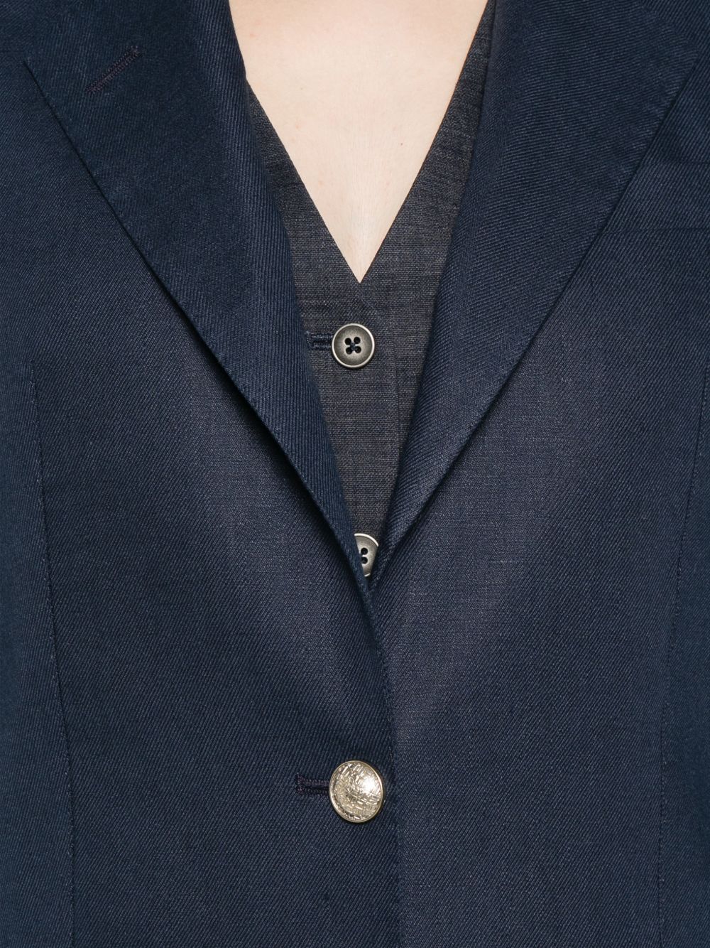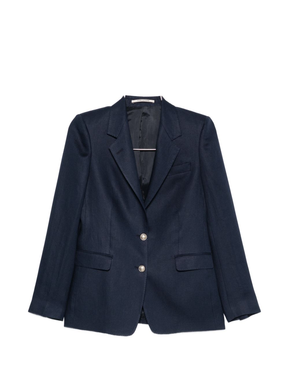 TAGLIATORE blue linen Paris blazer featuring classic lapels, single-breasted button fastening, buttoned cuffs, back vent and two flap pockets.