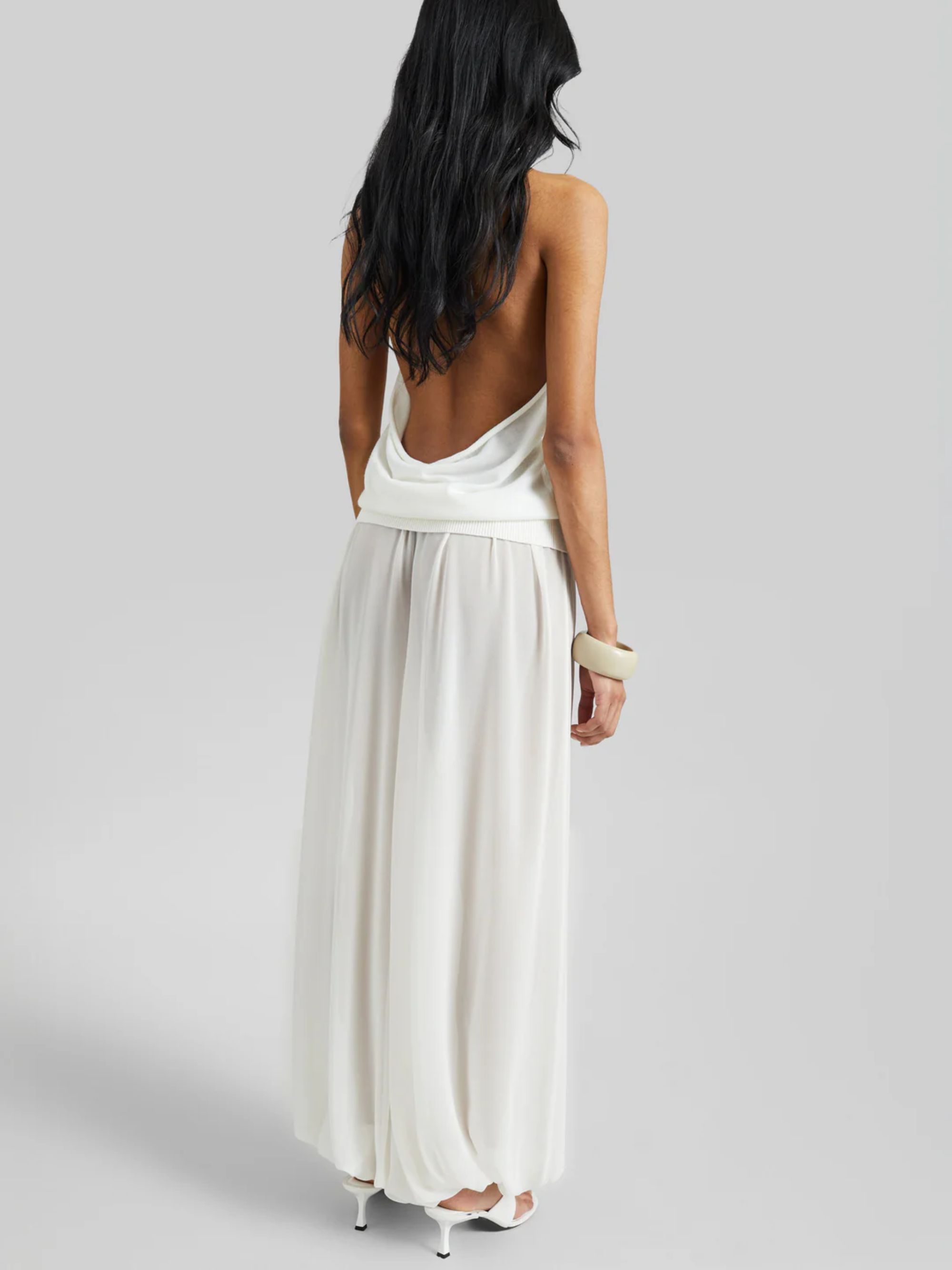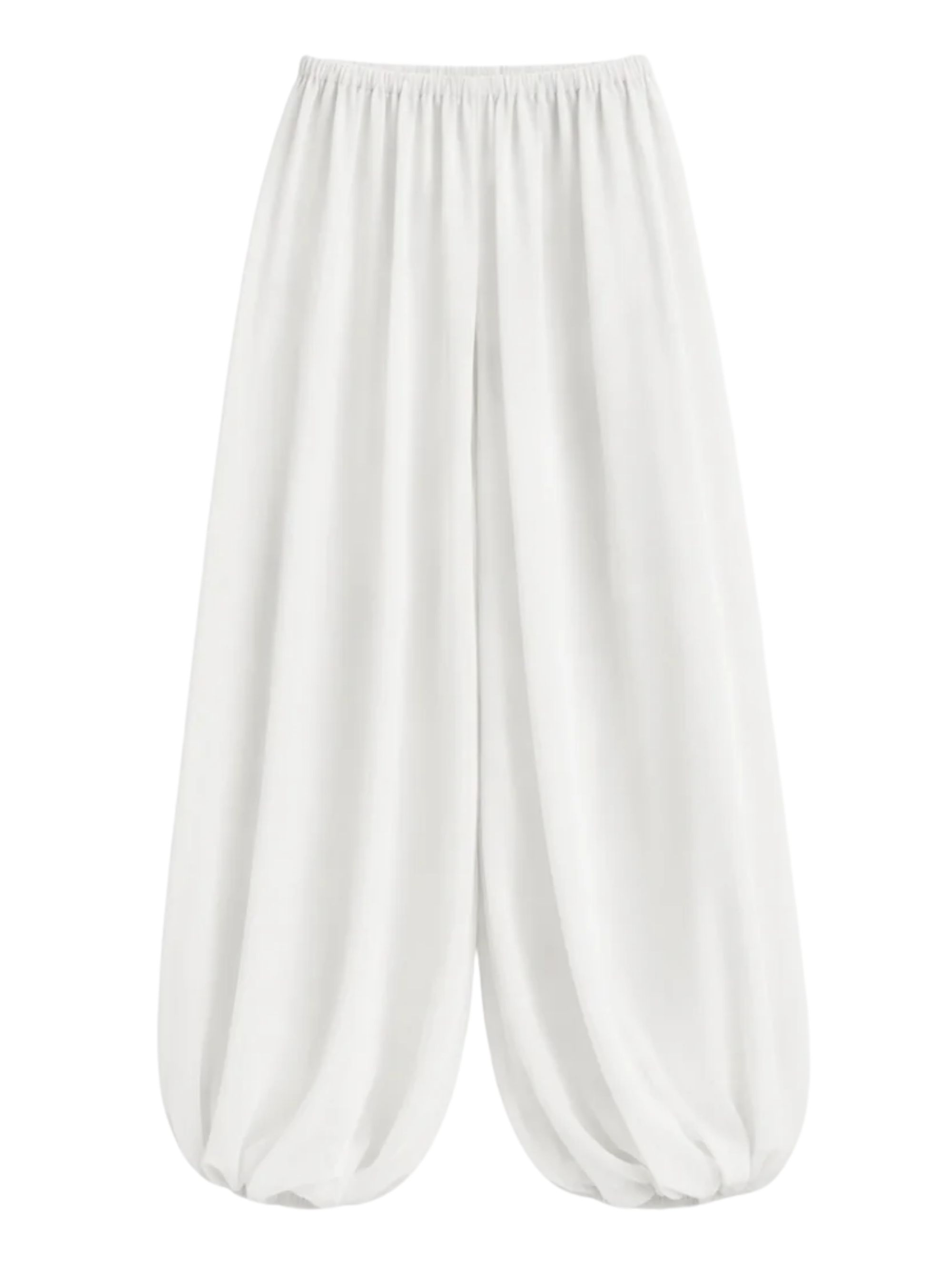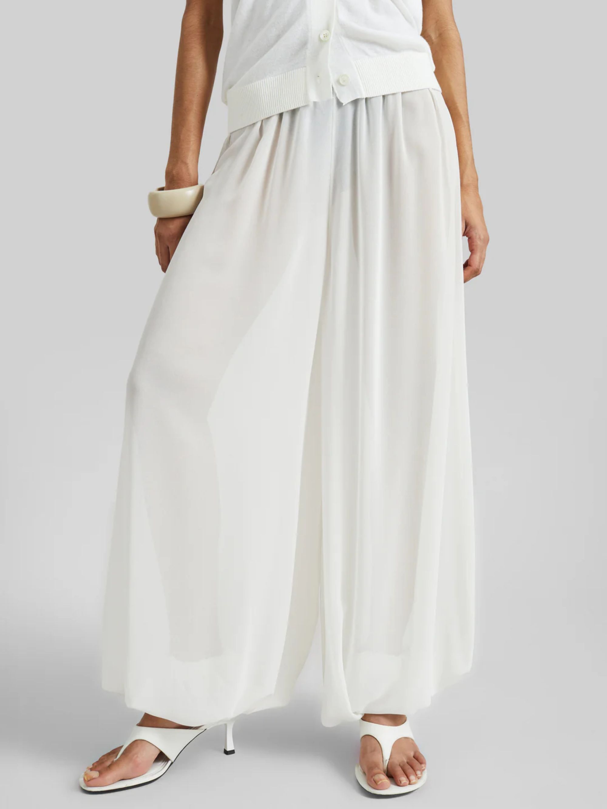 THE FRANKIE SHOP Mio trousers in sheer, lightweight white featuring a balloon design, pleated detail on the front, elasticated waist and cuffs and a slip-on style.