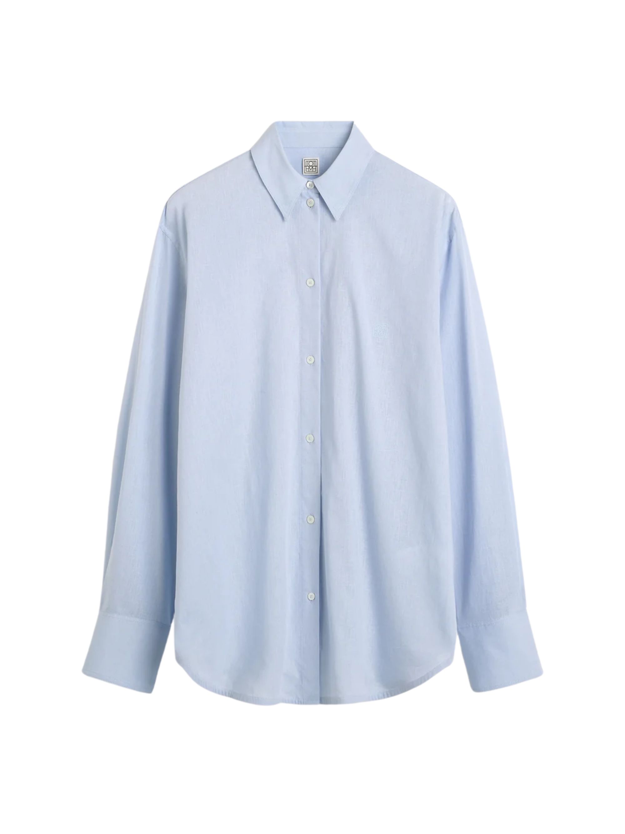 TOTEME light blue linen blend shirt with collar, flared hem and button fastening.