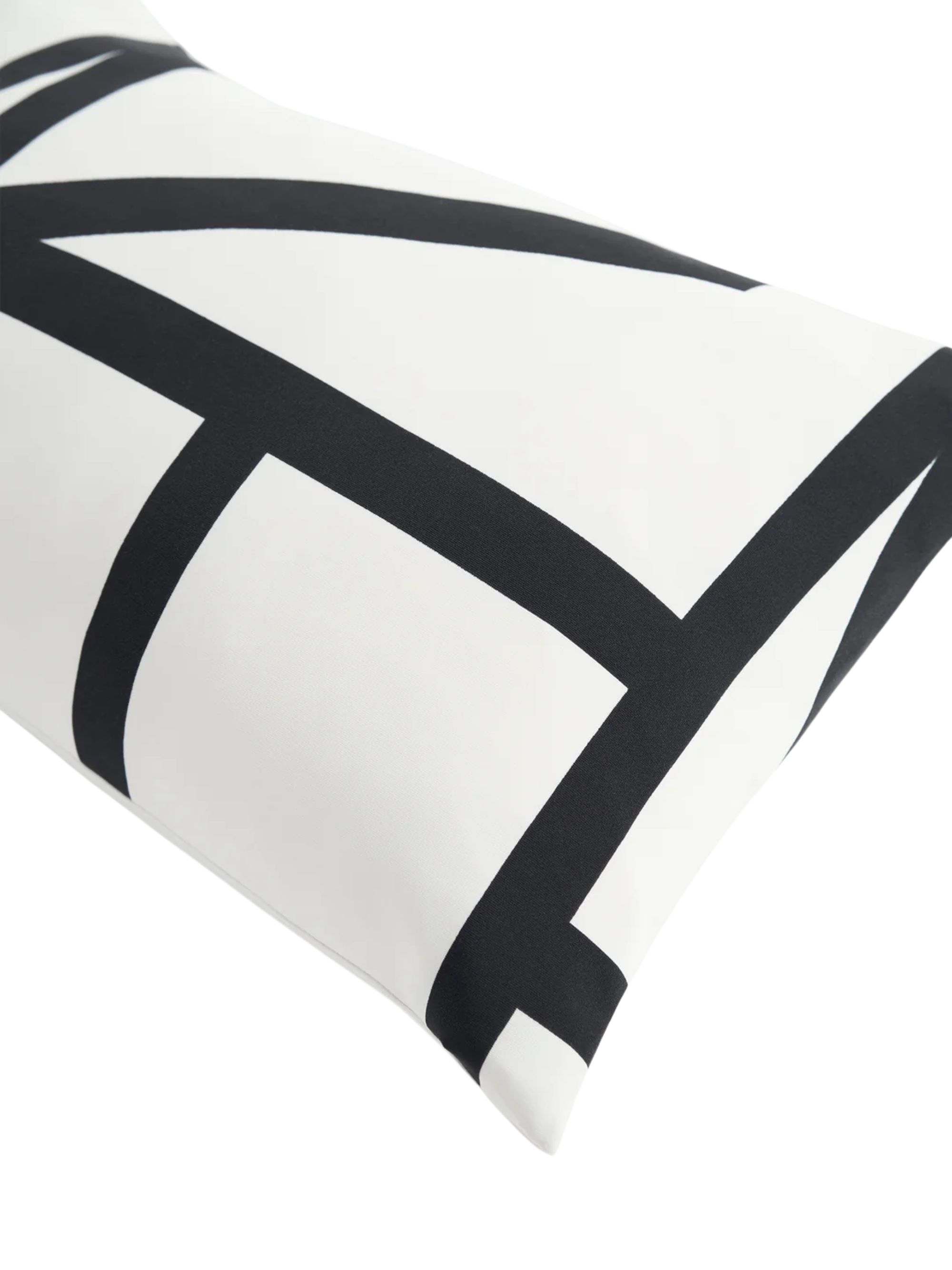 Monogram cushion by TOTEME in white lyocell, featuring ultra-light padding, monogrammed print and removable lining.