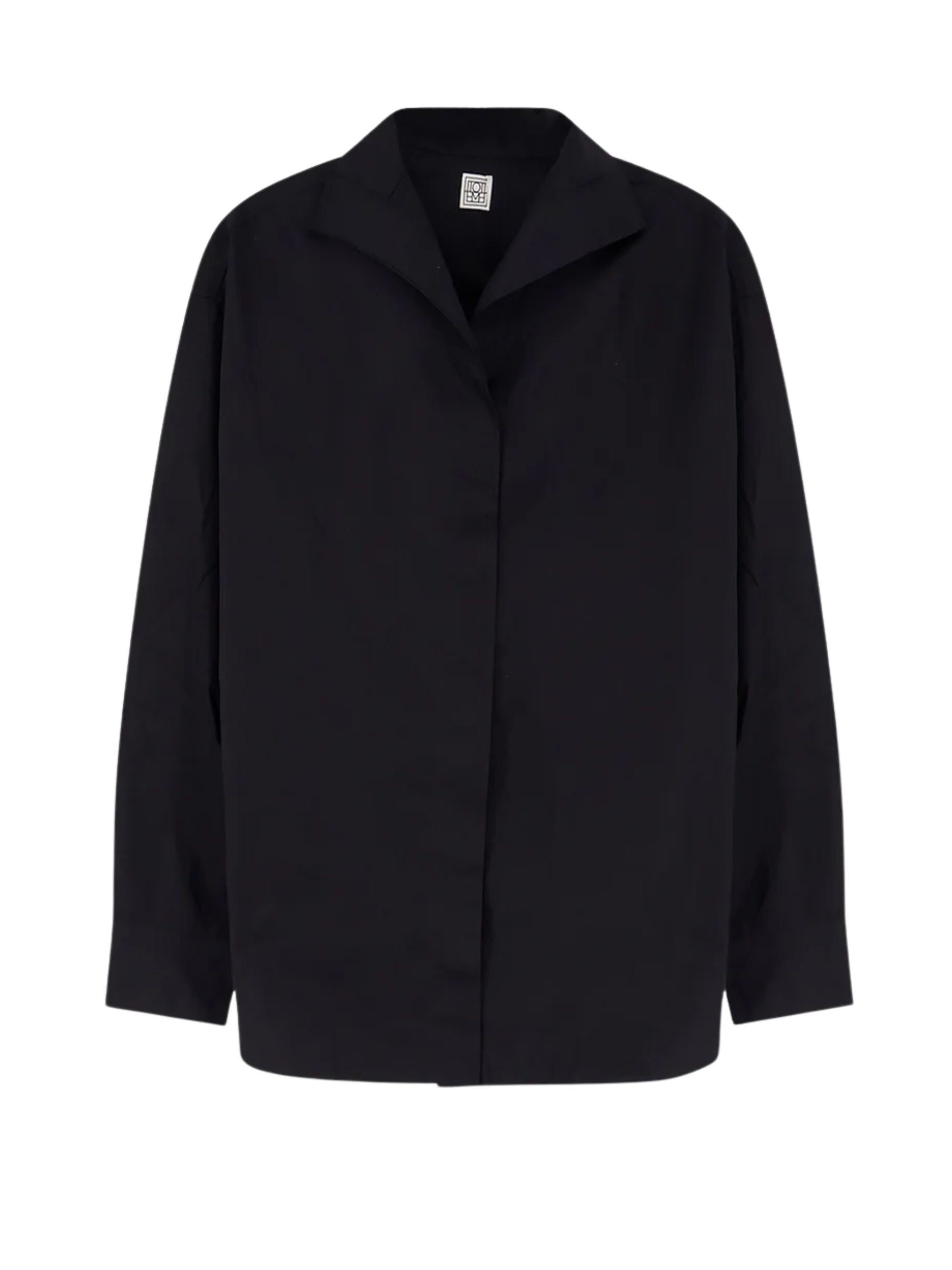 Black oversized cotton shirt by TOTEME, featuring a pointed collar, concealed button fastening, long sleeves, an oversized fit and buttoned cuffs.