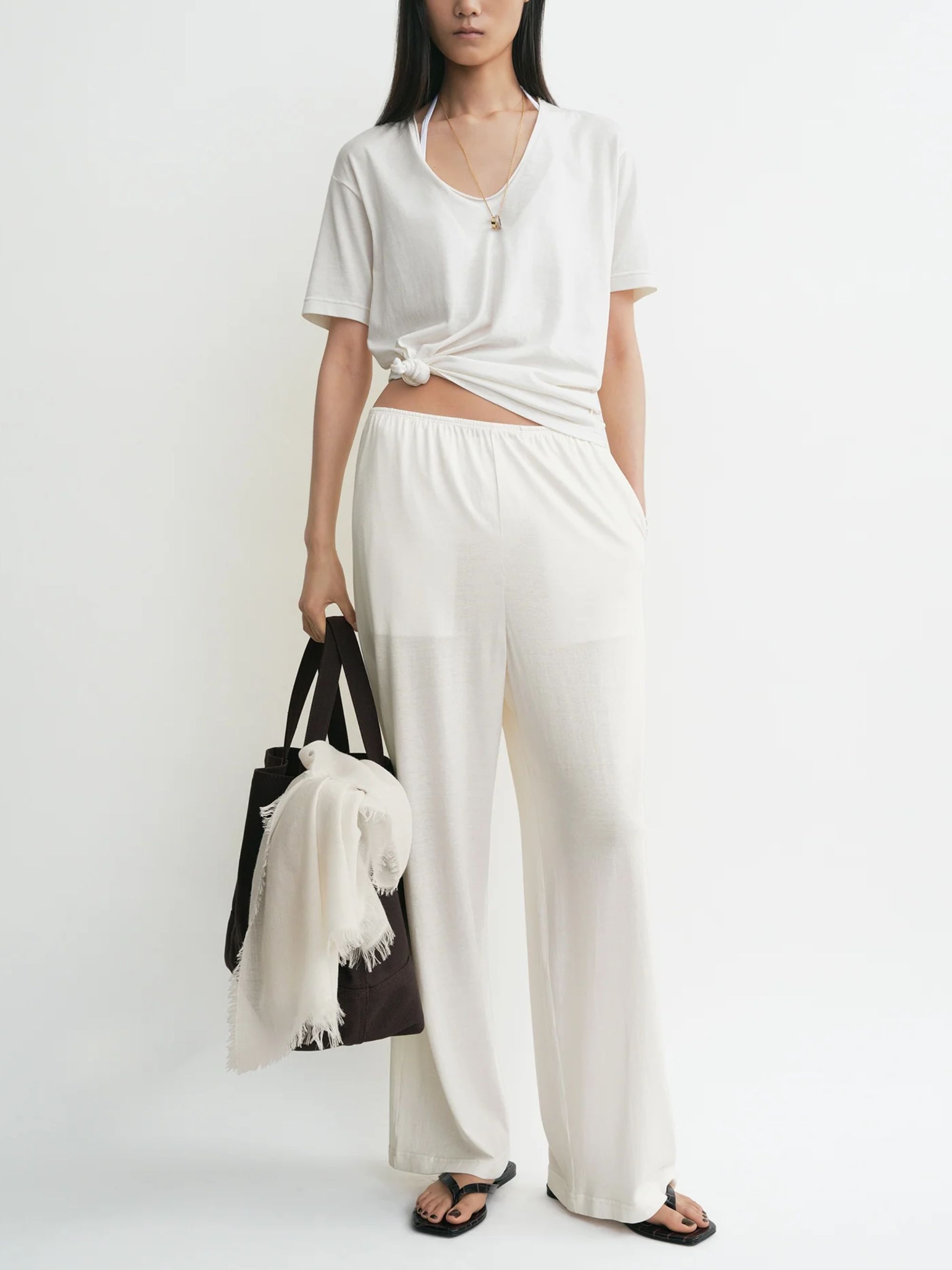 TOTEME white silk pajama bottoms featuring an elasticated waist and side pockets.