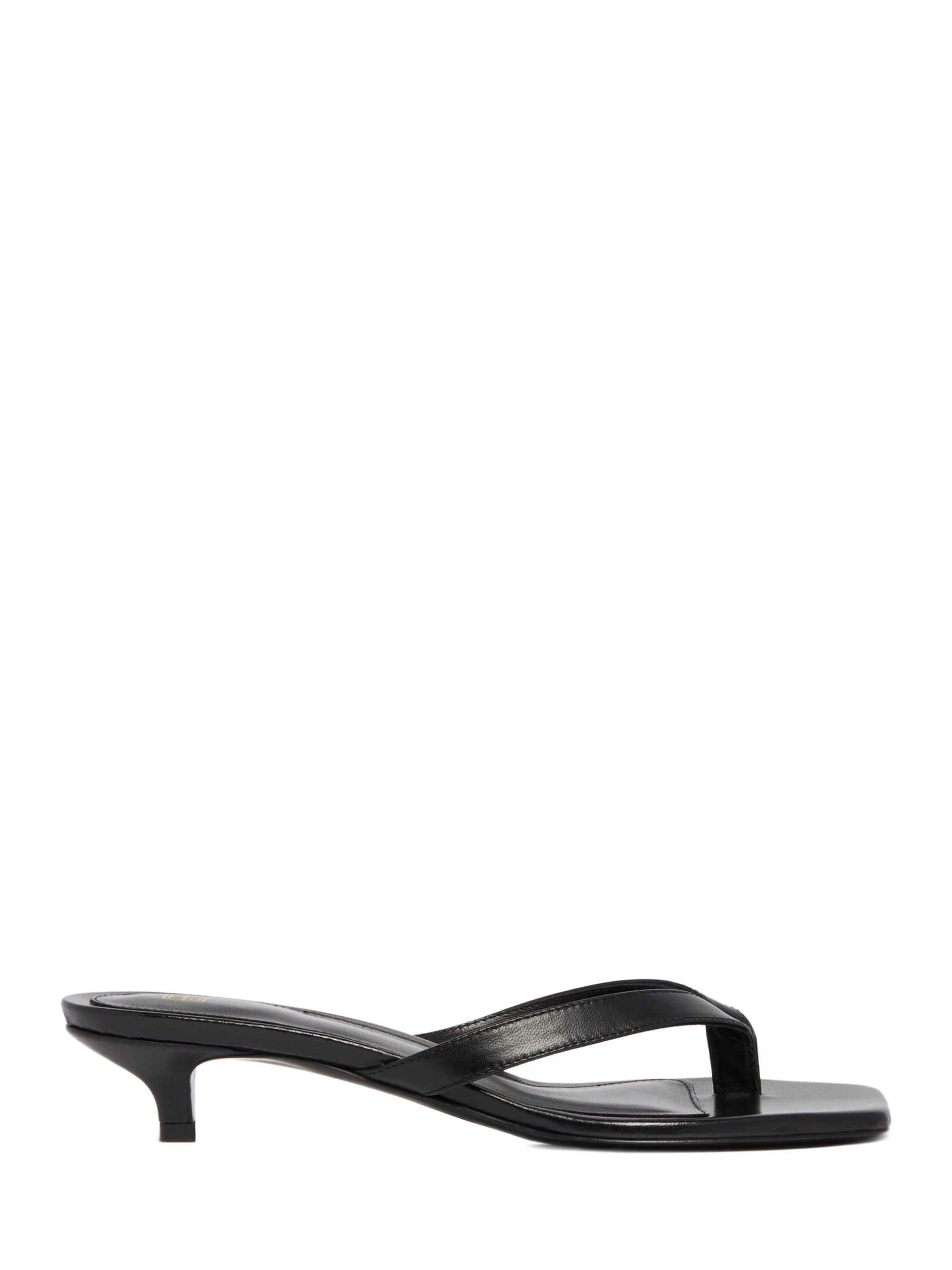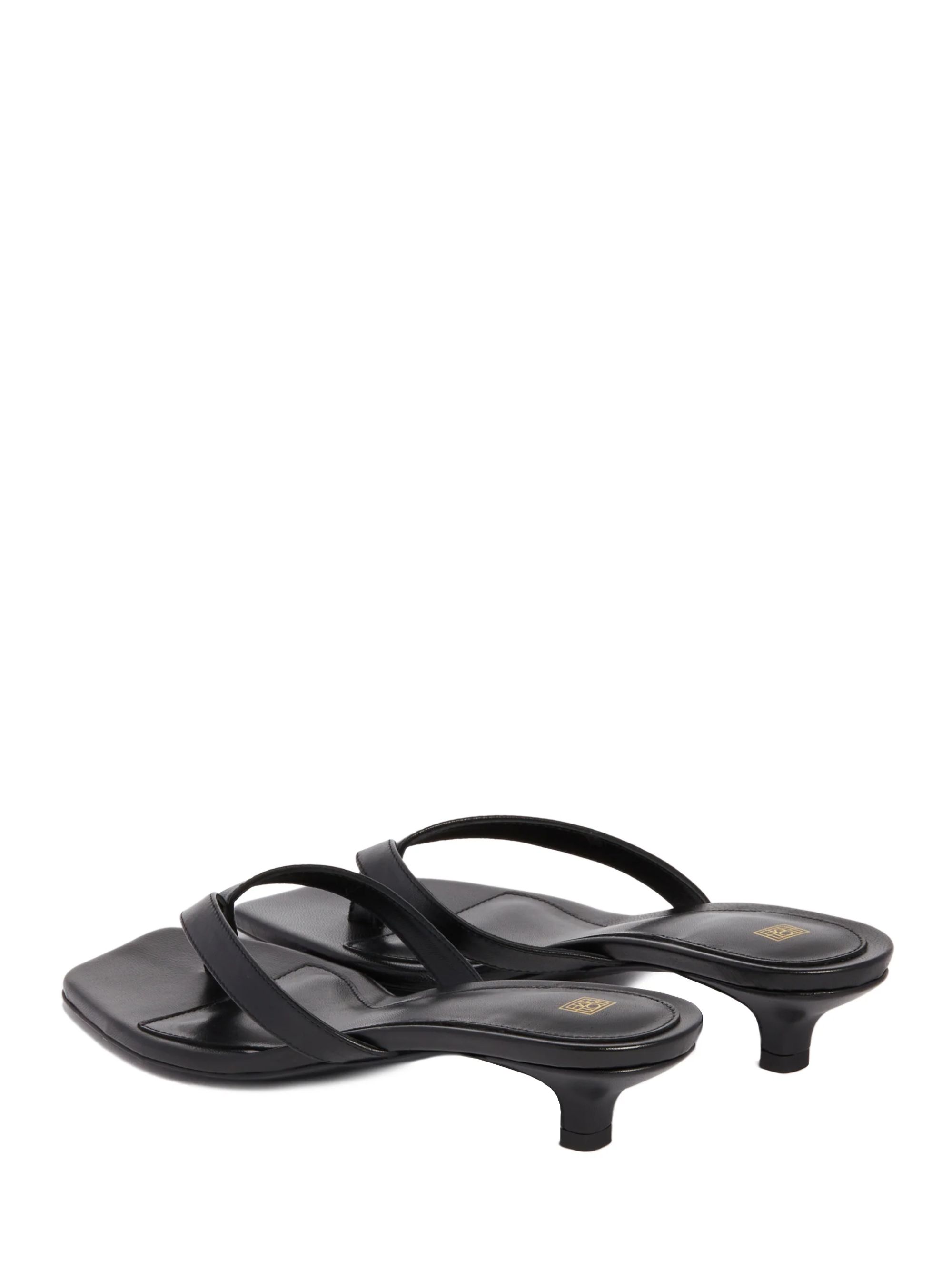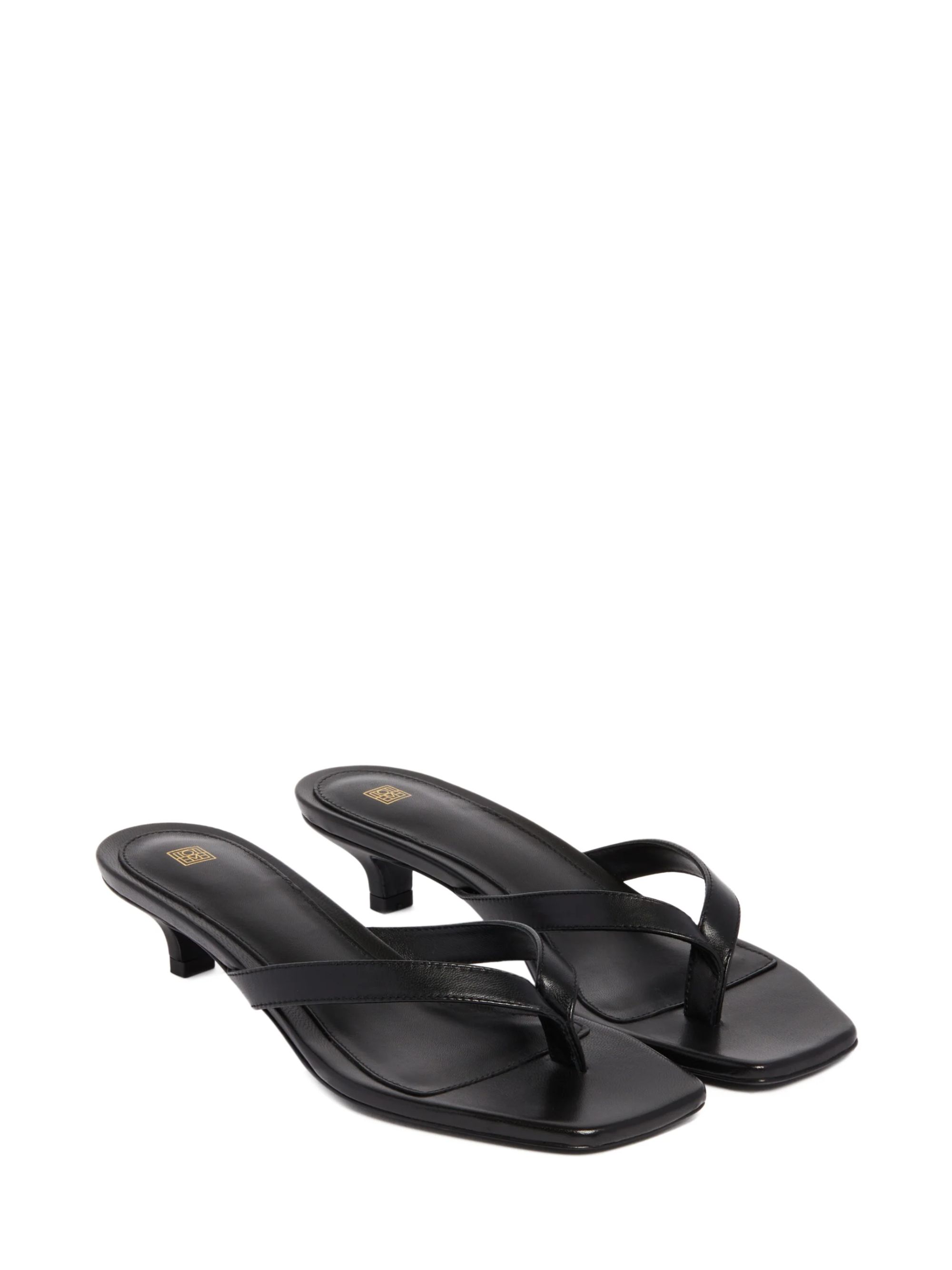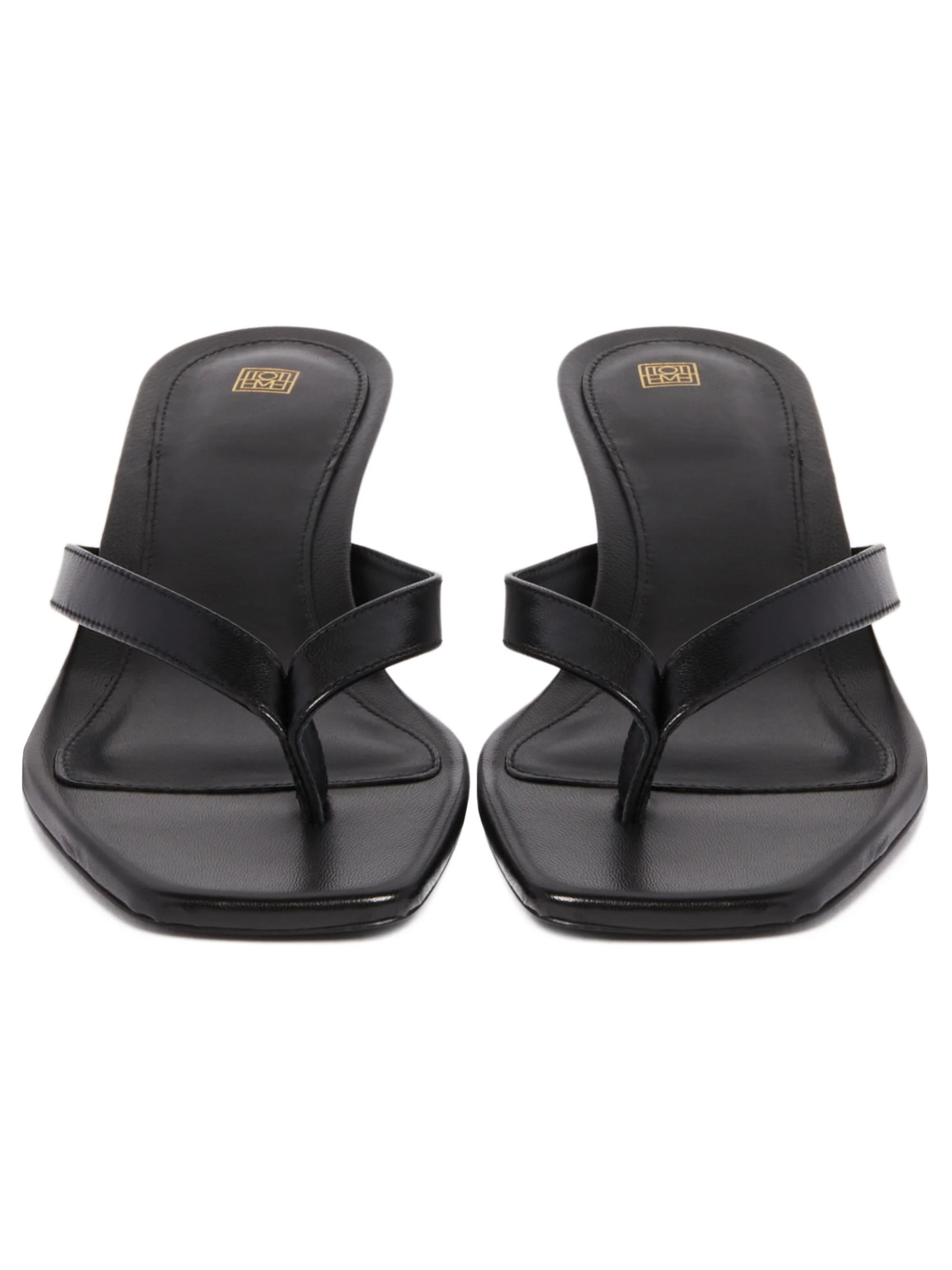 Black leather Thong sandal by TOTEME, featuring a low heel, leather insole, square toe and flip-flop.