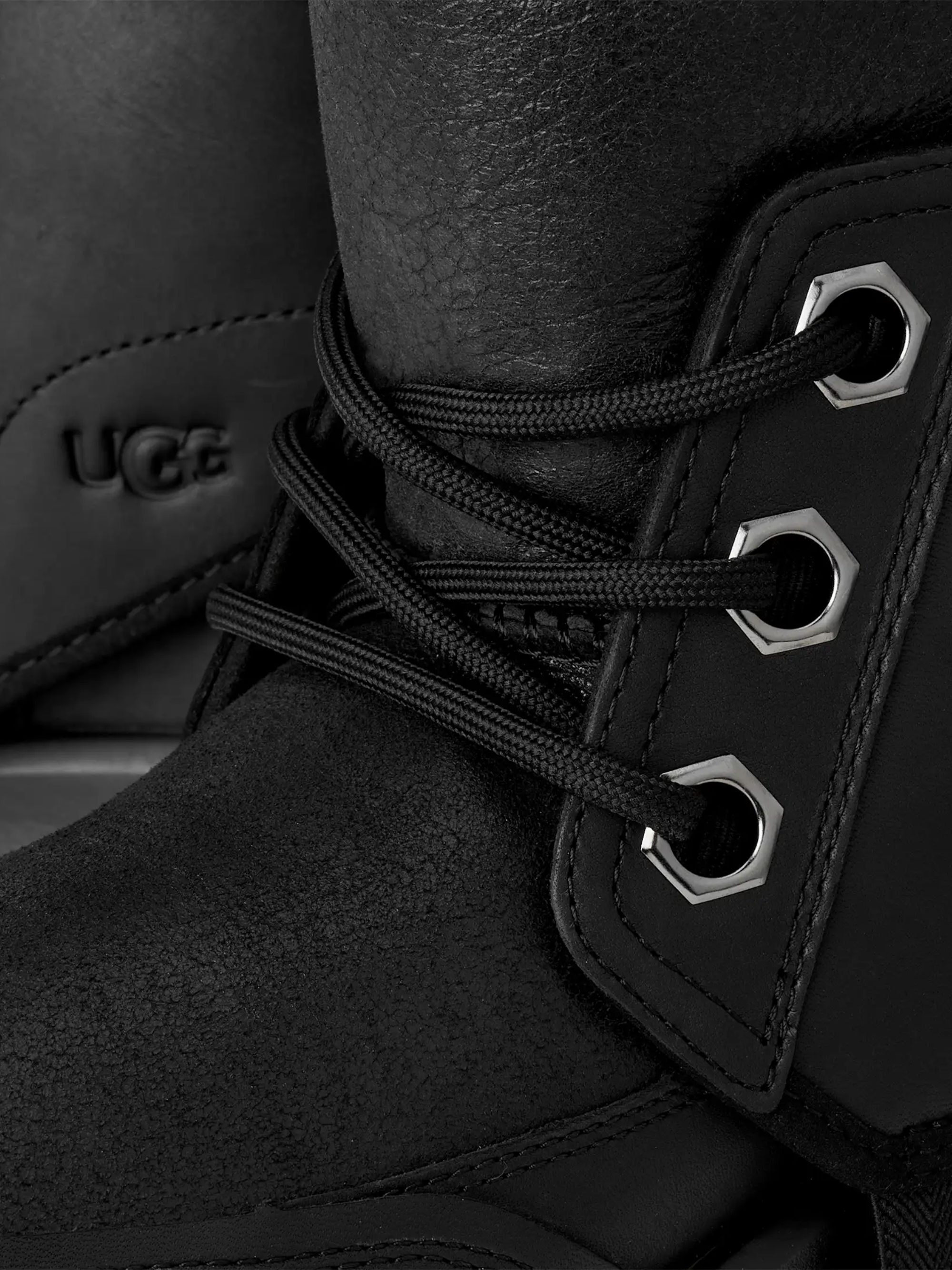 Black UGG JLD sheepskin boot featuring metal eyelets and hardware, an embossed UGG logo, sheepskin lining and a lace-up fastening.