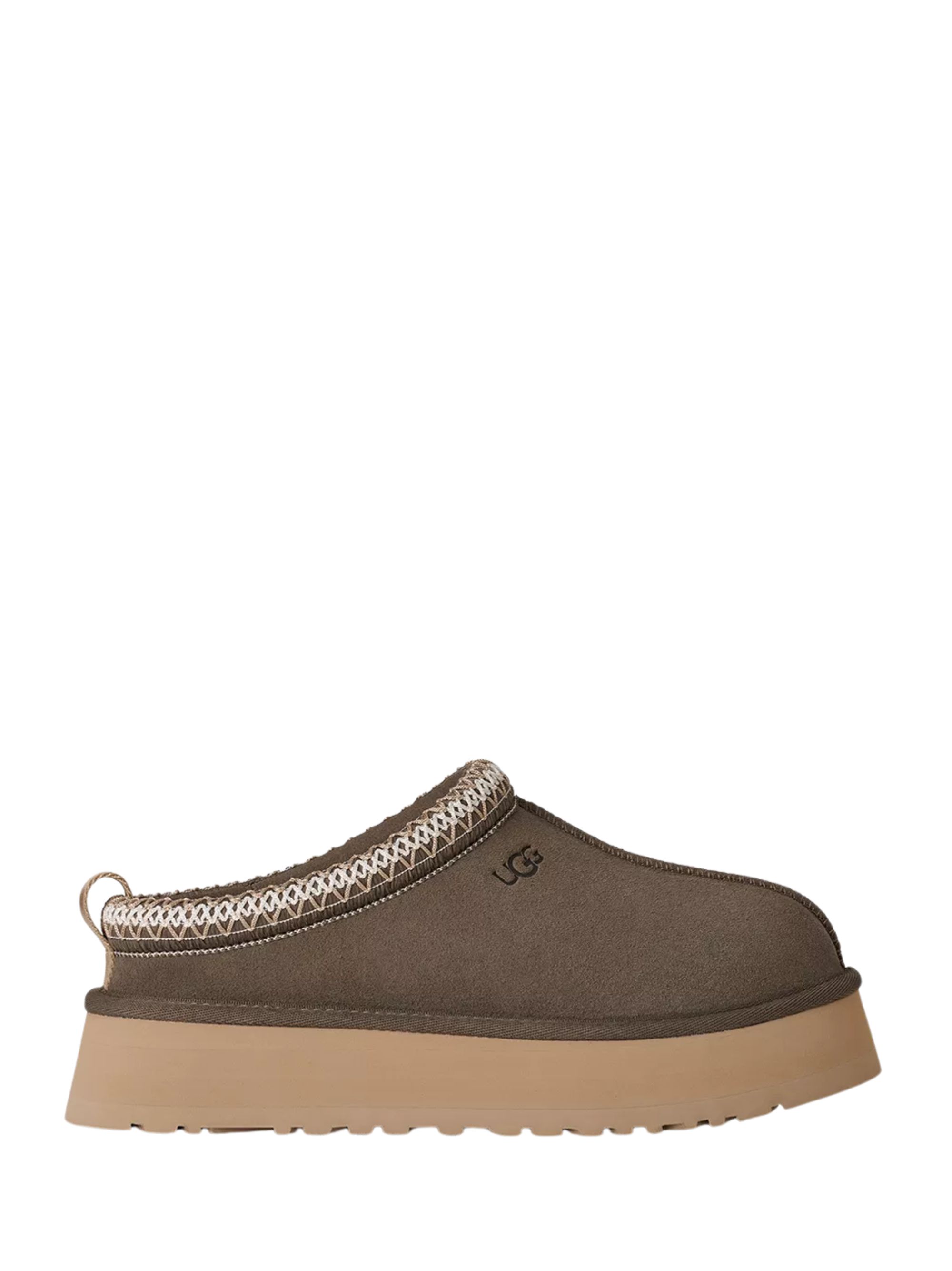 UGG W Tazz II slipper in brown suede, featuring EVA sole, round toe, edge with embroidered detail and side logo.