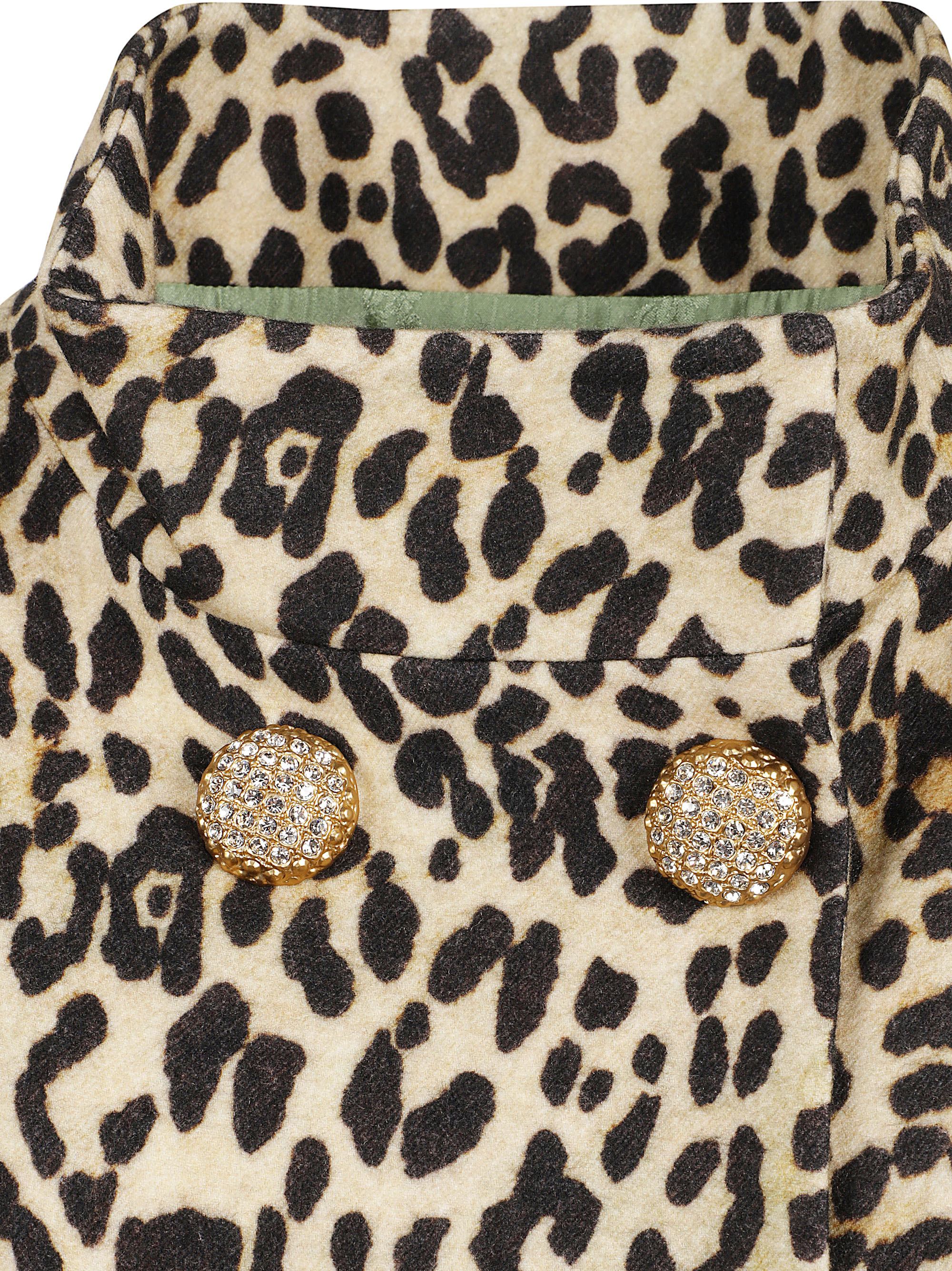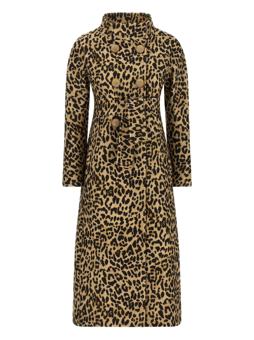 VALENTINO coat featuring animal print, crystal button fastening, belted waist and medium collar.