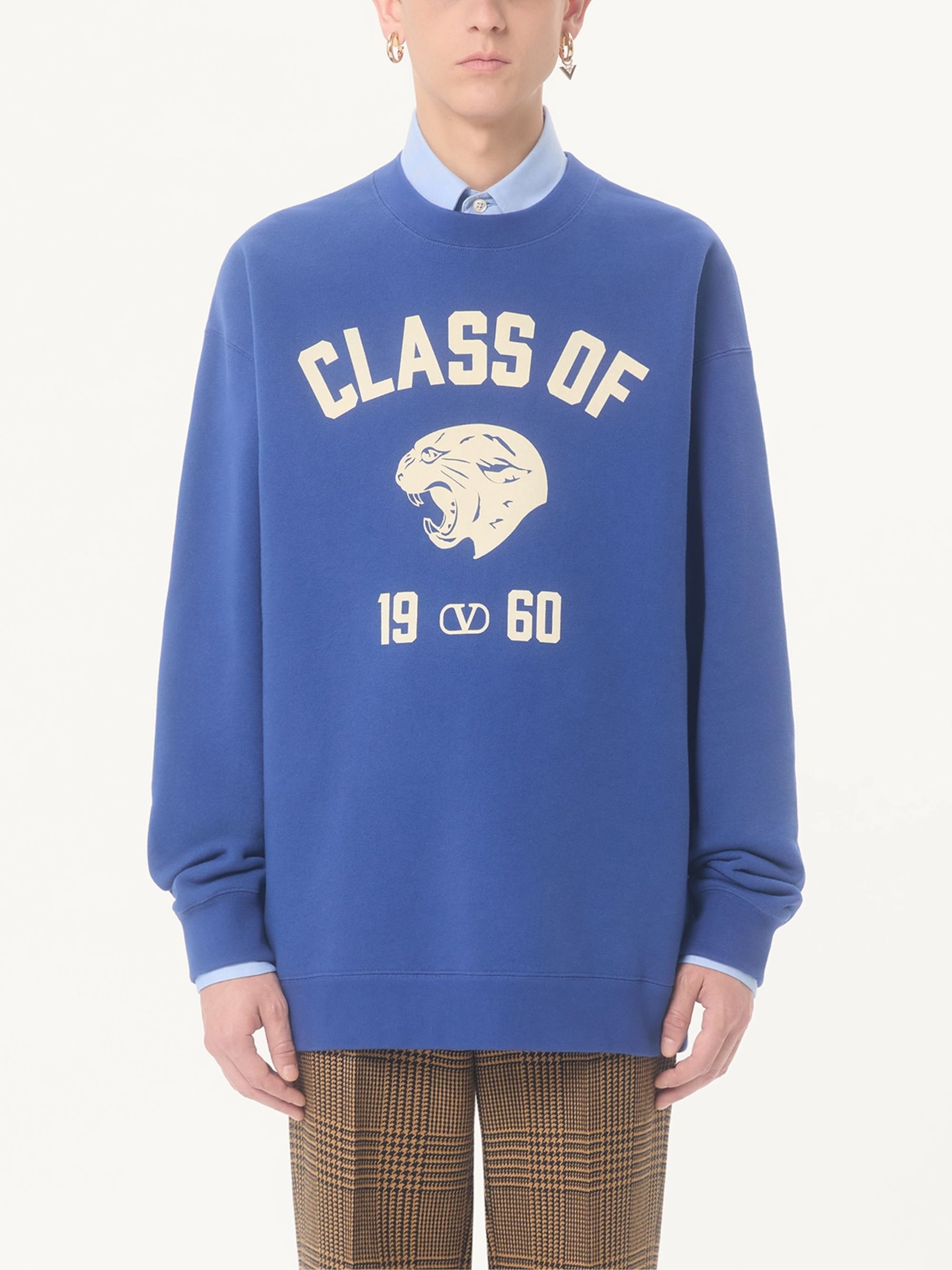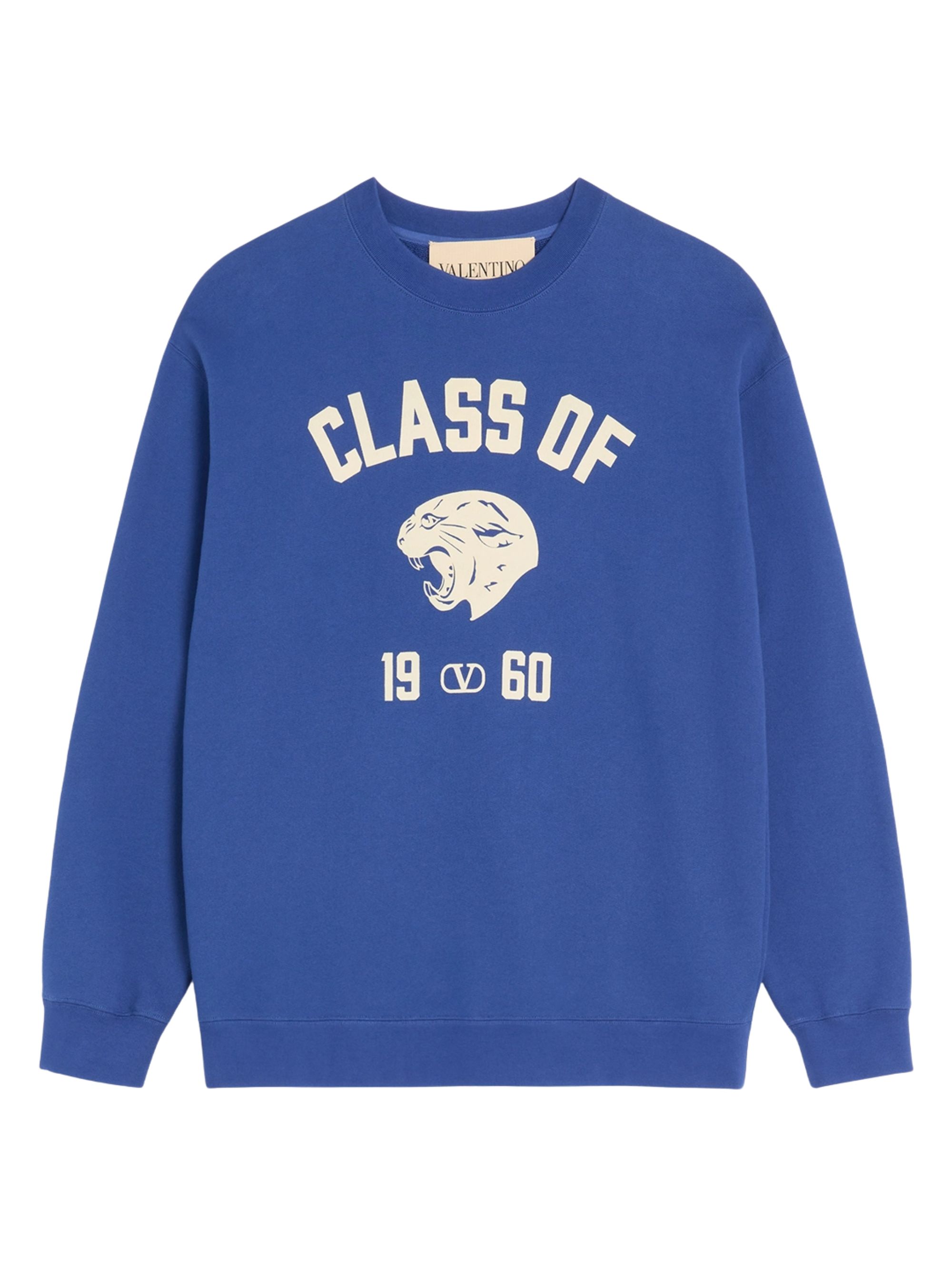 Class of 1960 sweatshirt by VALENTINO in blue cotton, featuring a print on the chest, ribbed finishes and a crew neck.