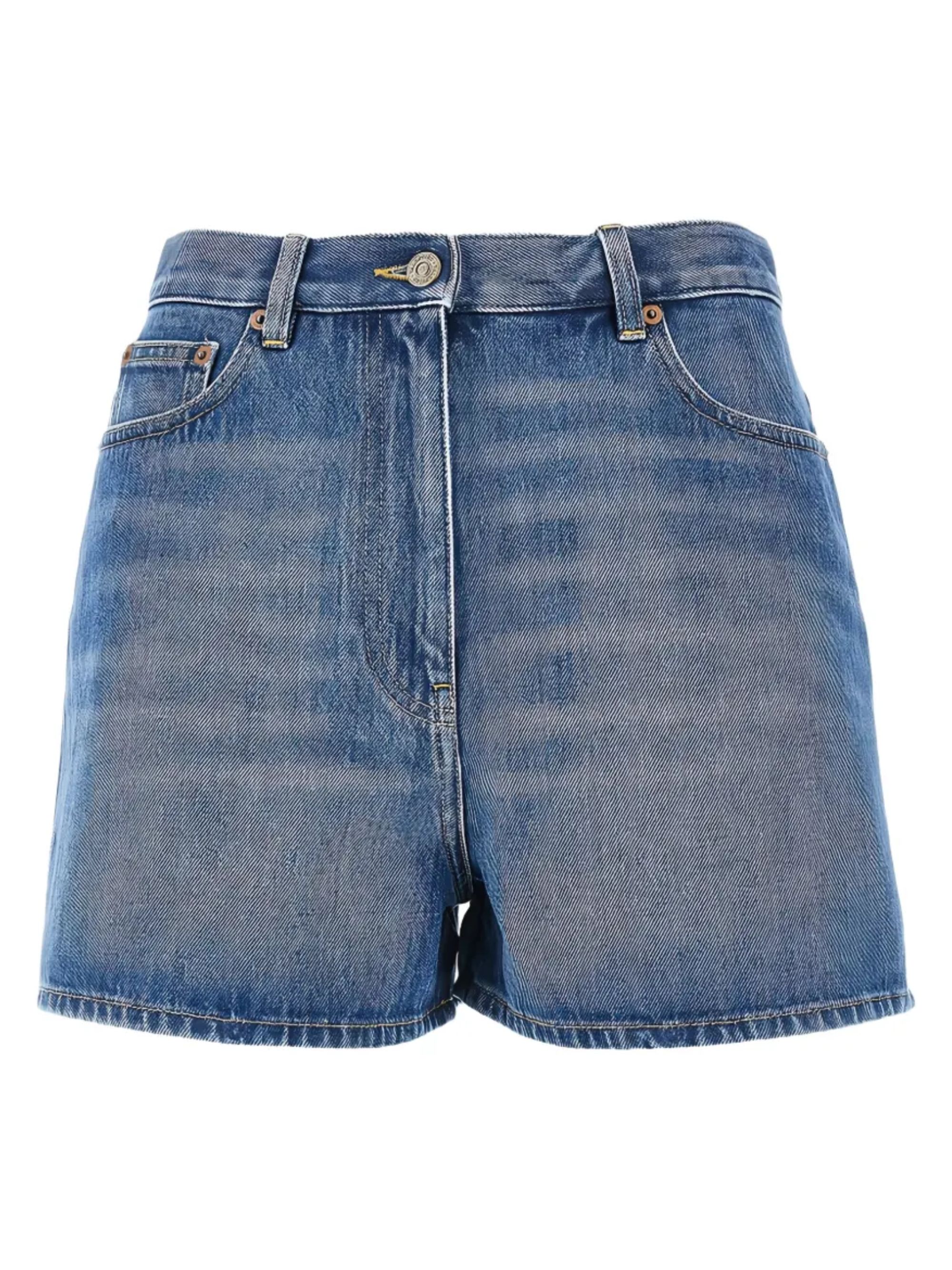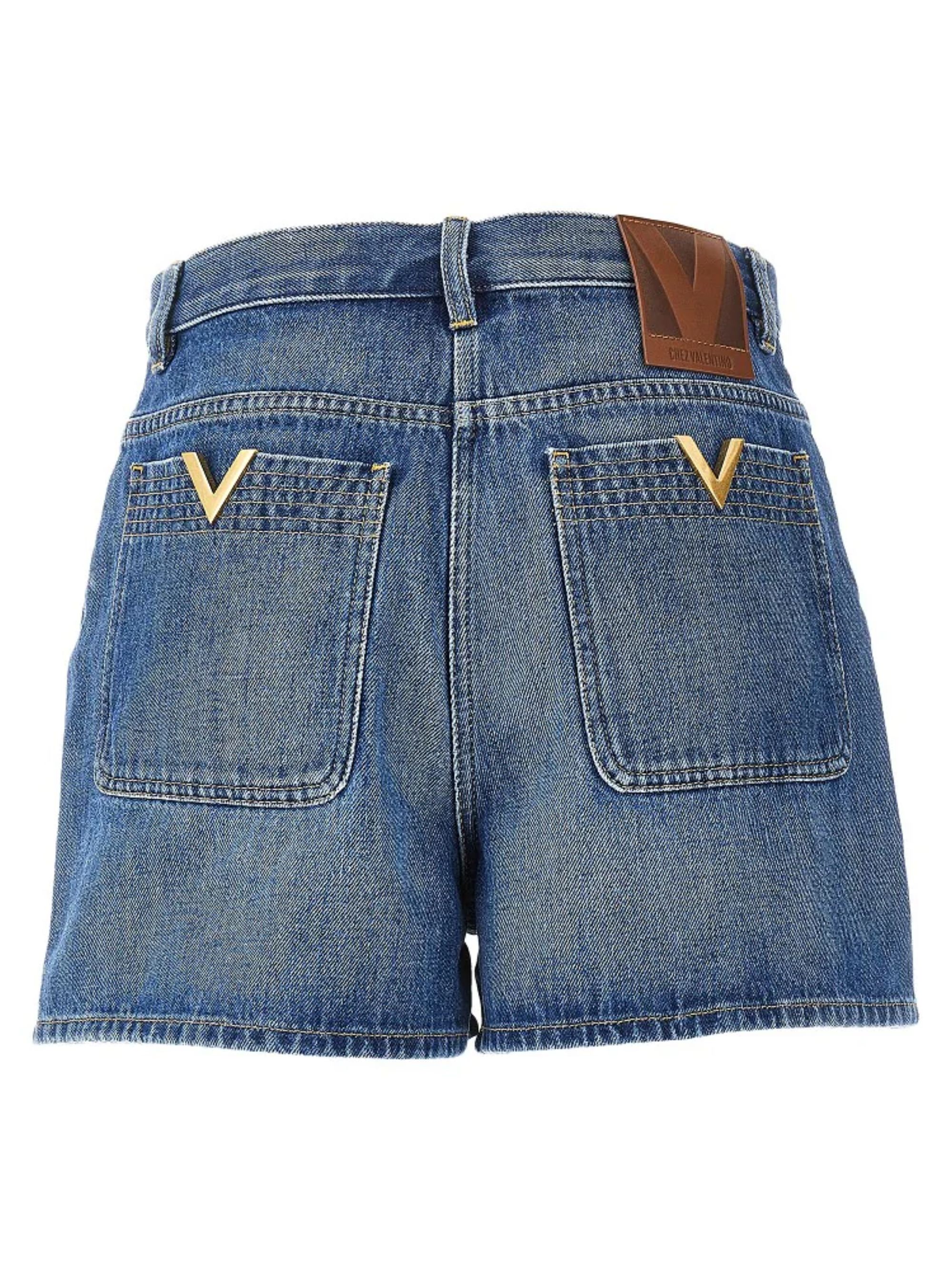 VALENTINO blue denim shorts with Vgold details, featuring a zip and button fastening, two front pockets, two back pockets with VGold details, belt loops and a logo label on the back.