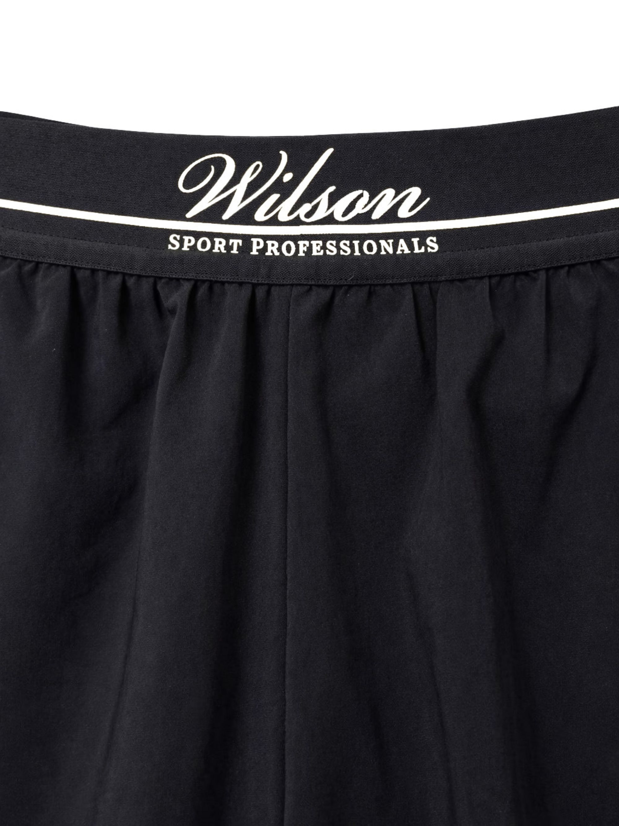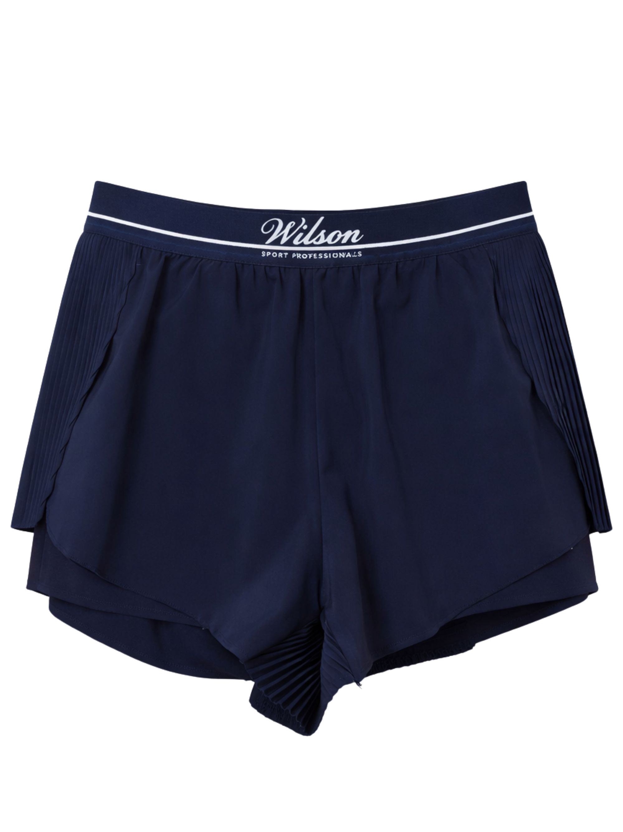 WILSON blue logo shorts featuring a front logo, elasticated waist, a flared fit and pleated inserts.