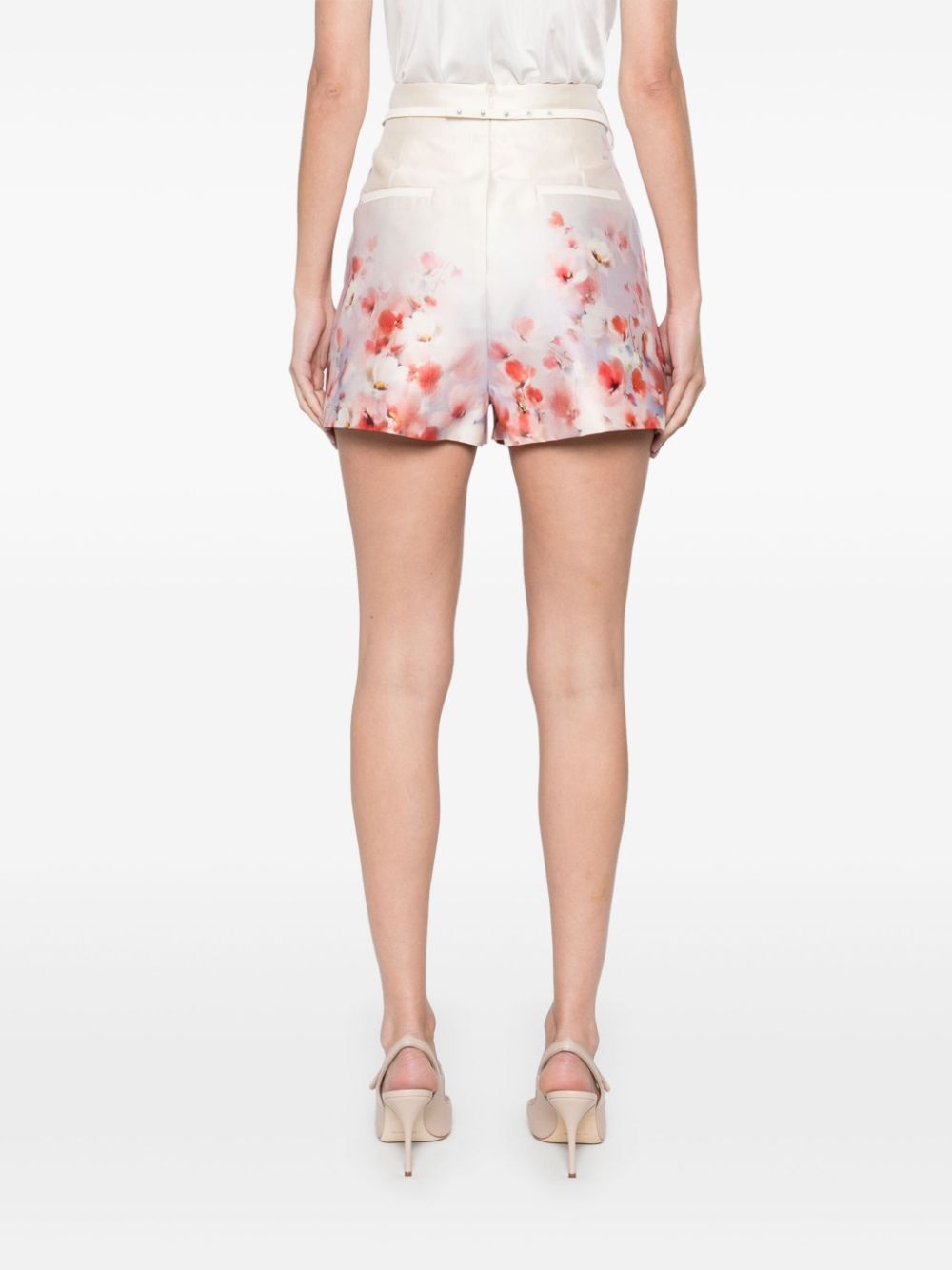 White ZIMMERMANN silk shorts with side and back welt pockets, removable belt and hidden back zip.