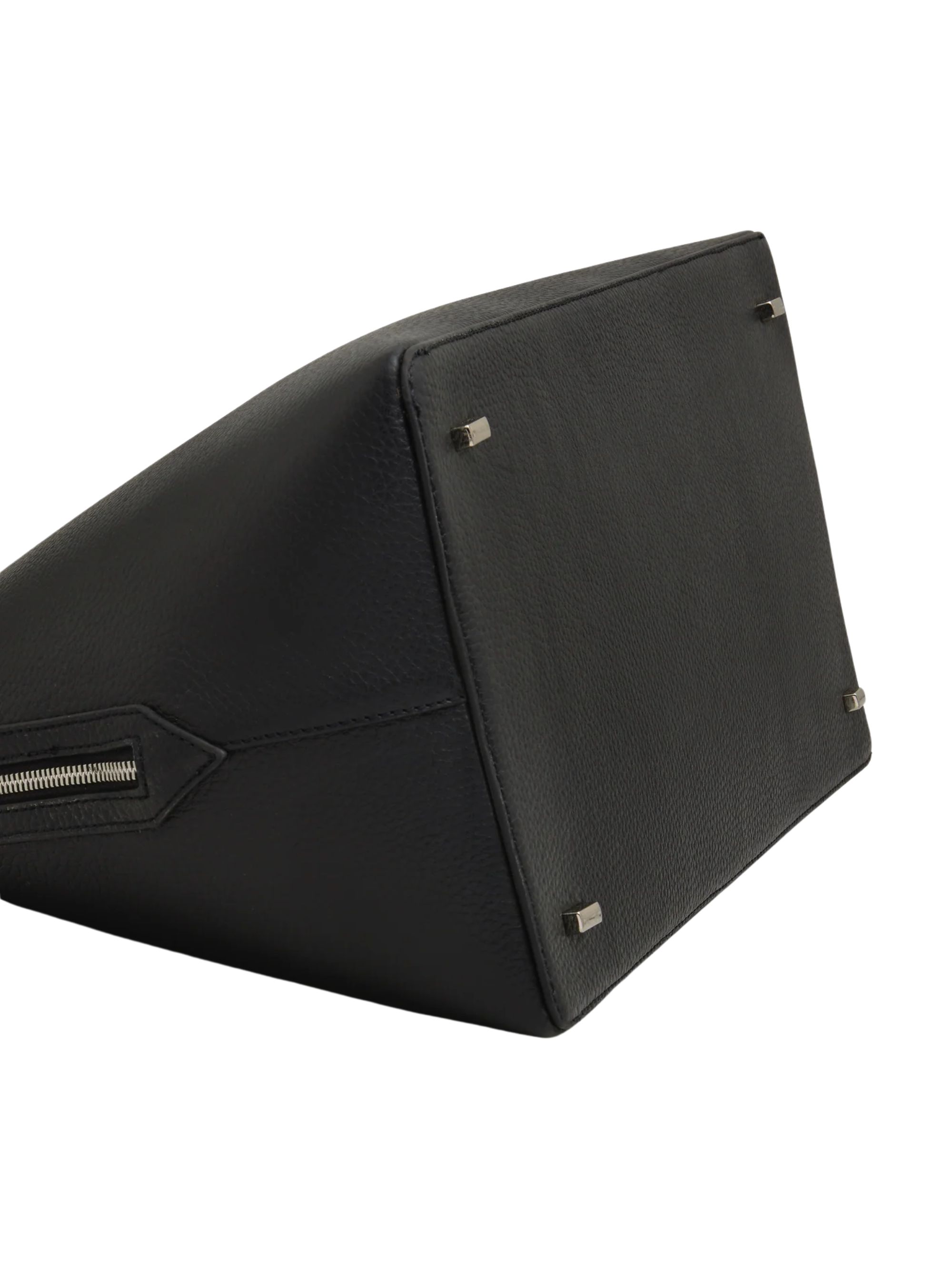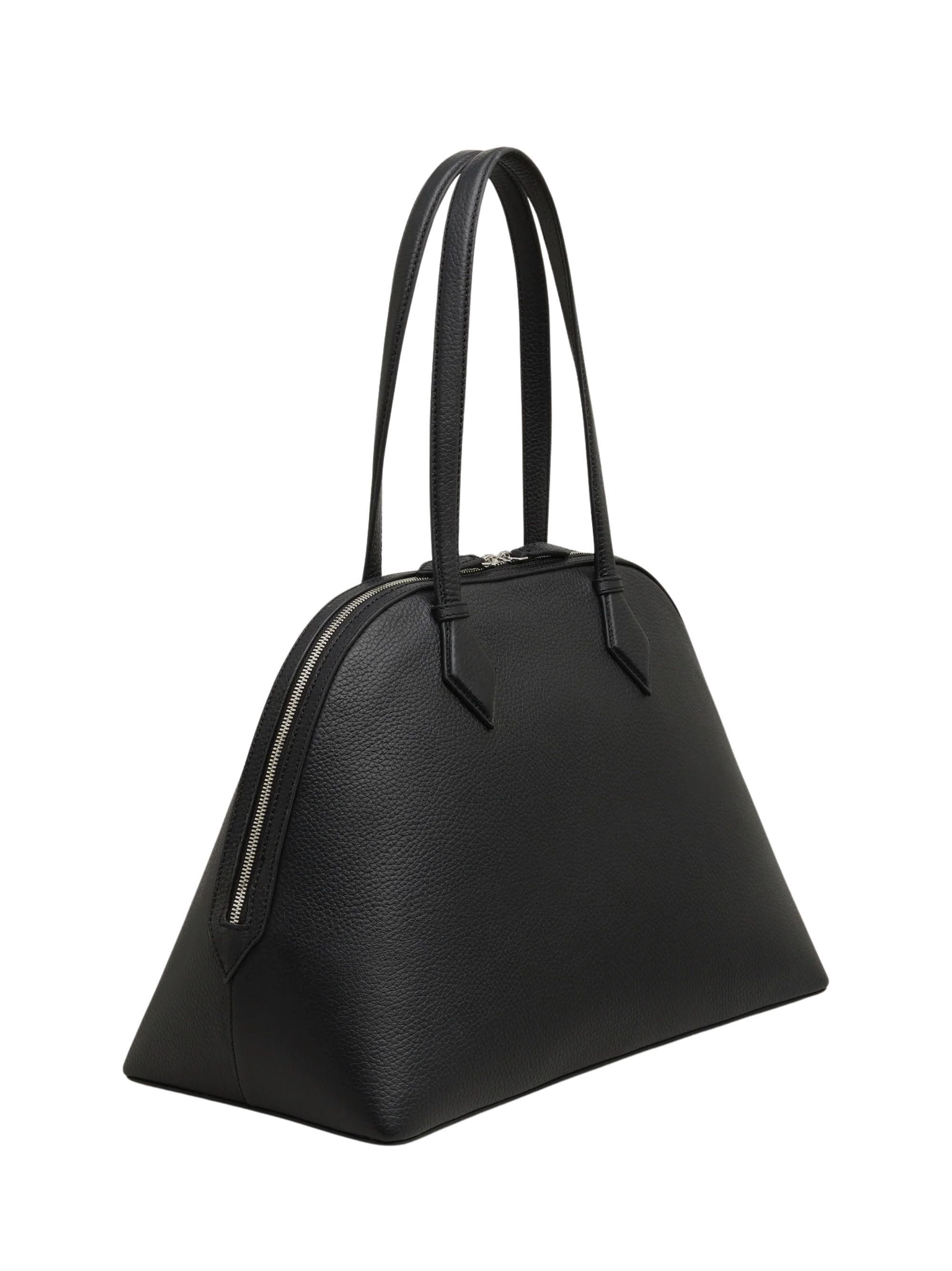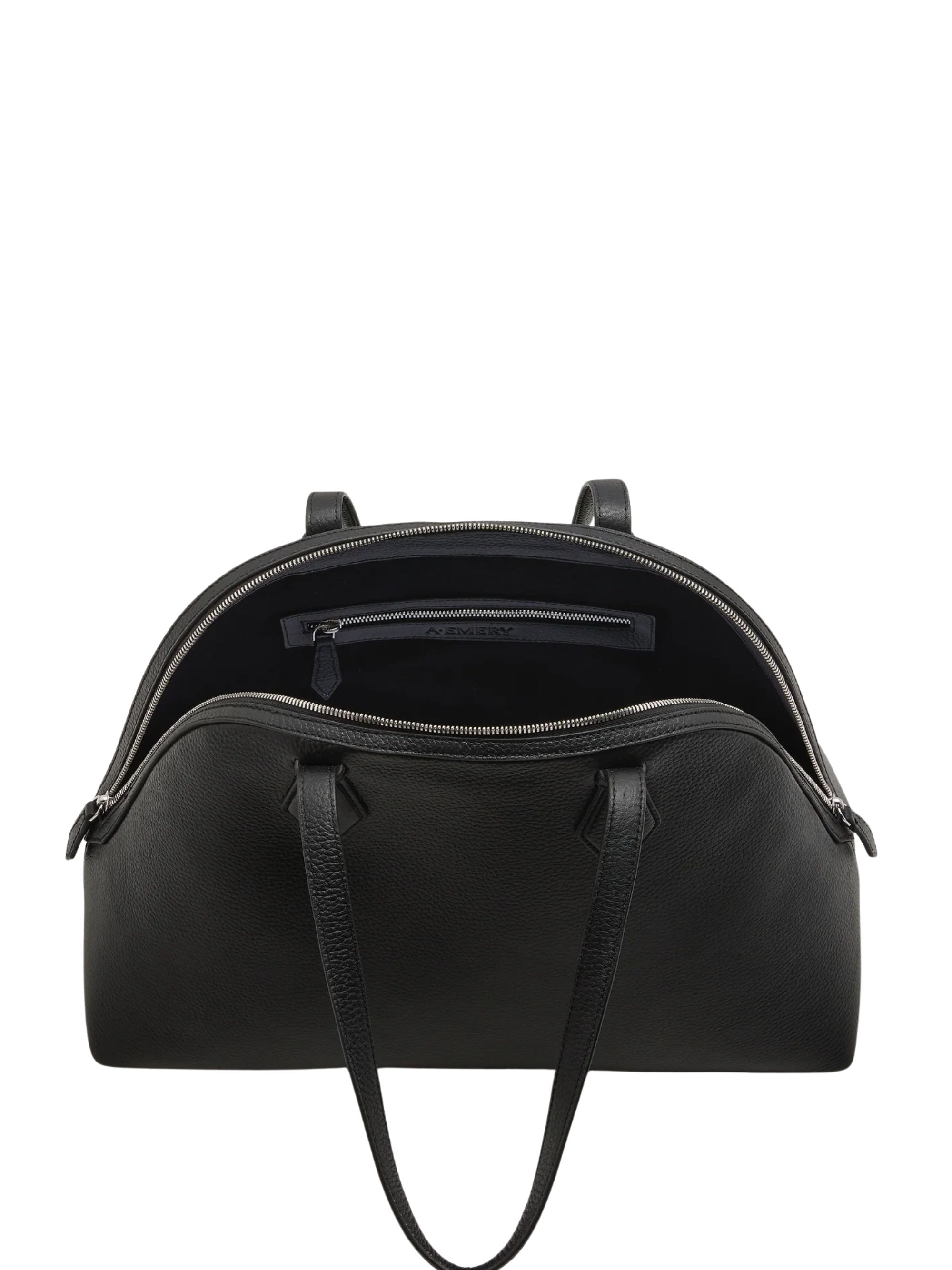 Borsa Harnick di A.EMERY nera in pelle con due manici, hardware argento, piedini e chiusura con zip. Dimensioni: 42x31x20 cm.