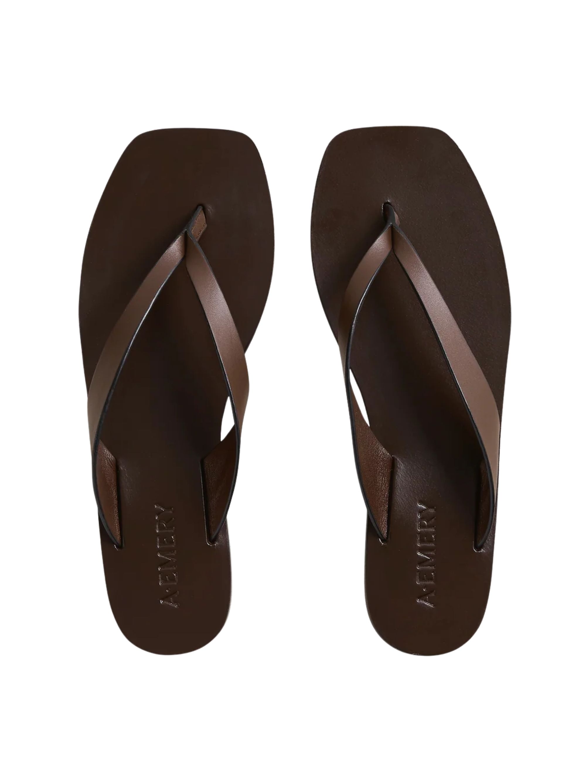 Sandalo Kinto di A.EMERY marrone in pelle caratterizzato da design a infradito e logo marchiato.