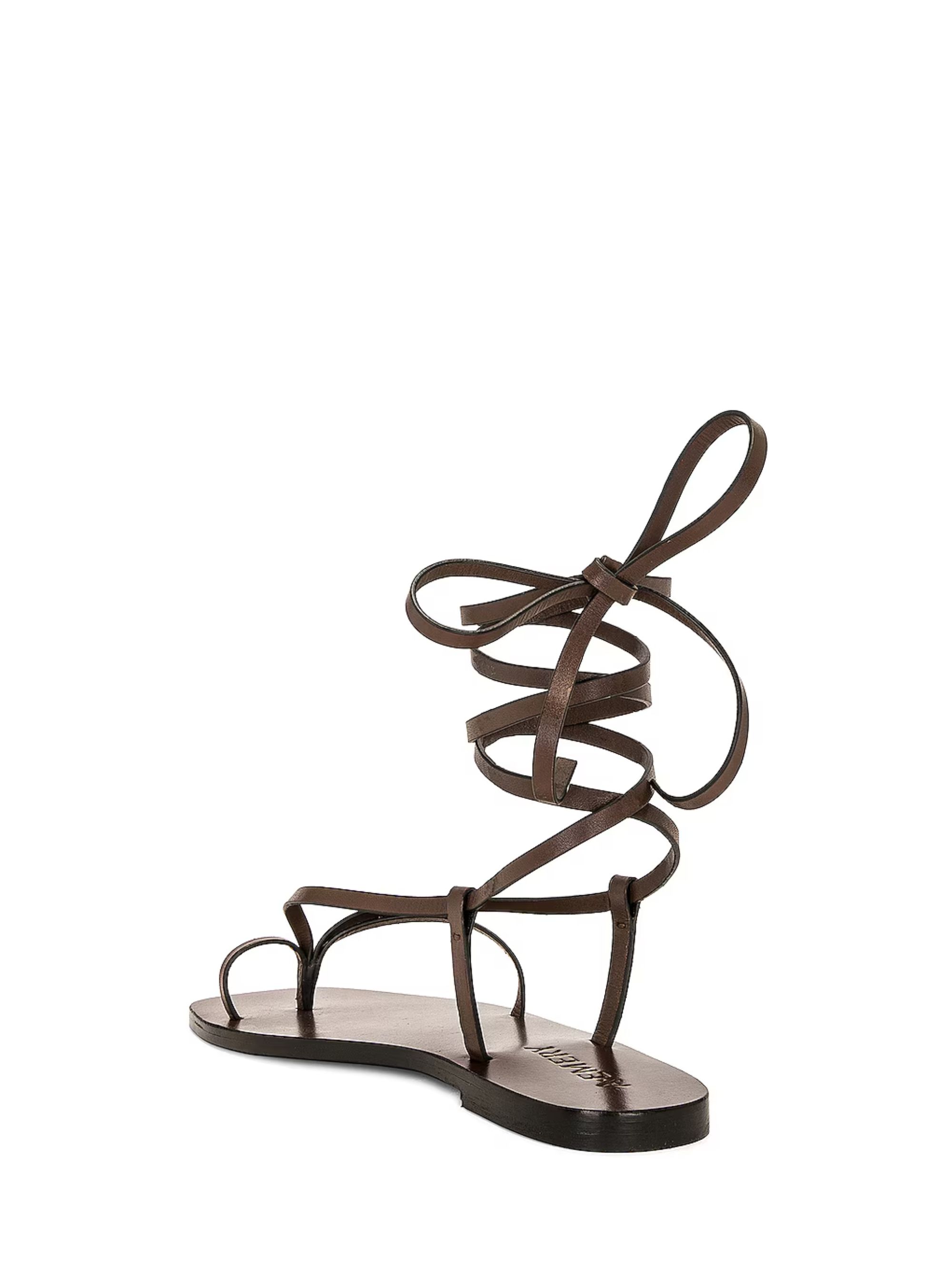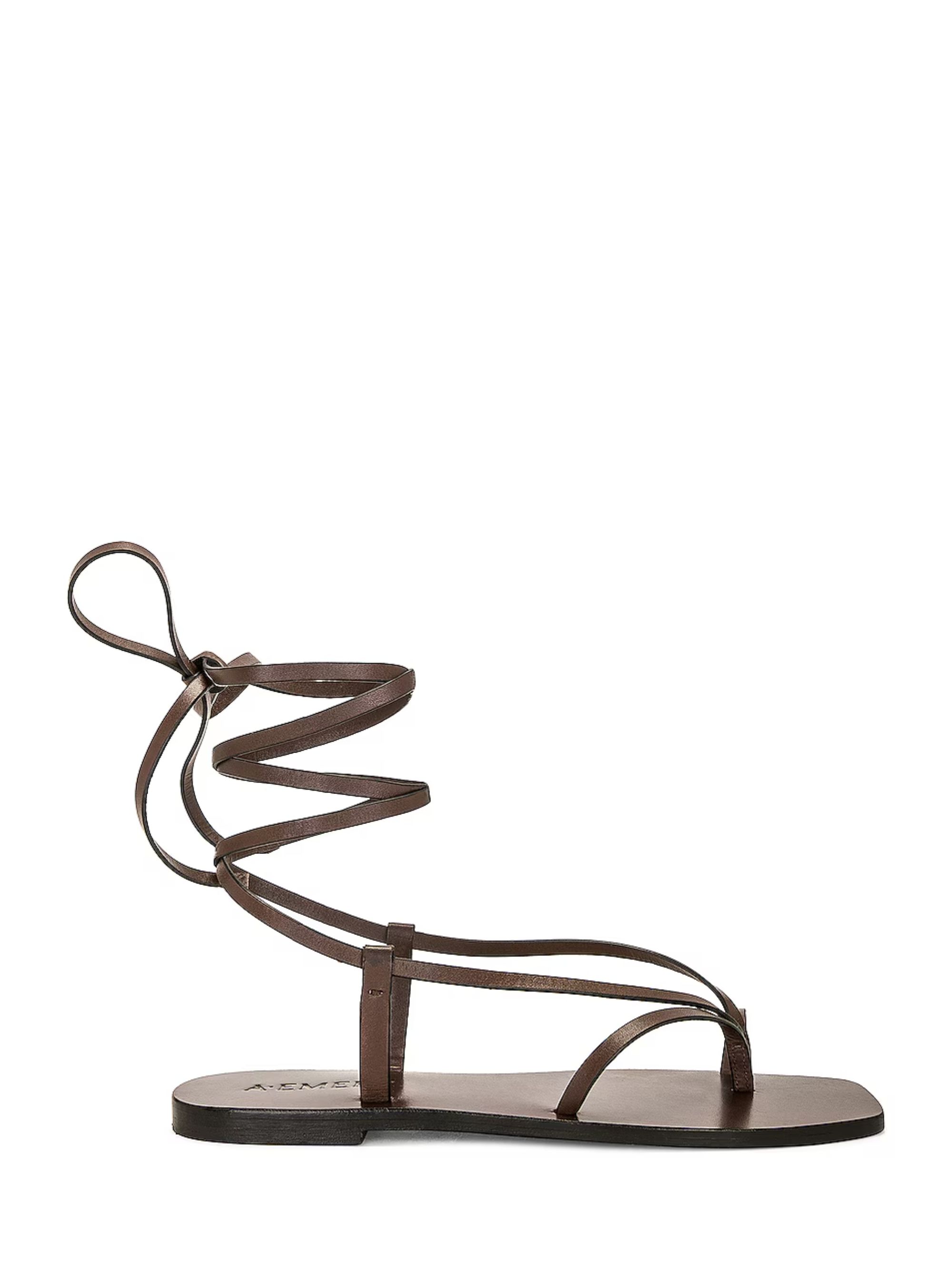 Sandalo Nolan di A.EMERY marrone in pelle con infradito e design alla schiava e suola con logo.