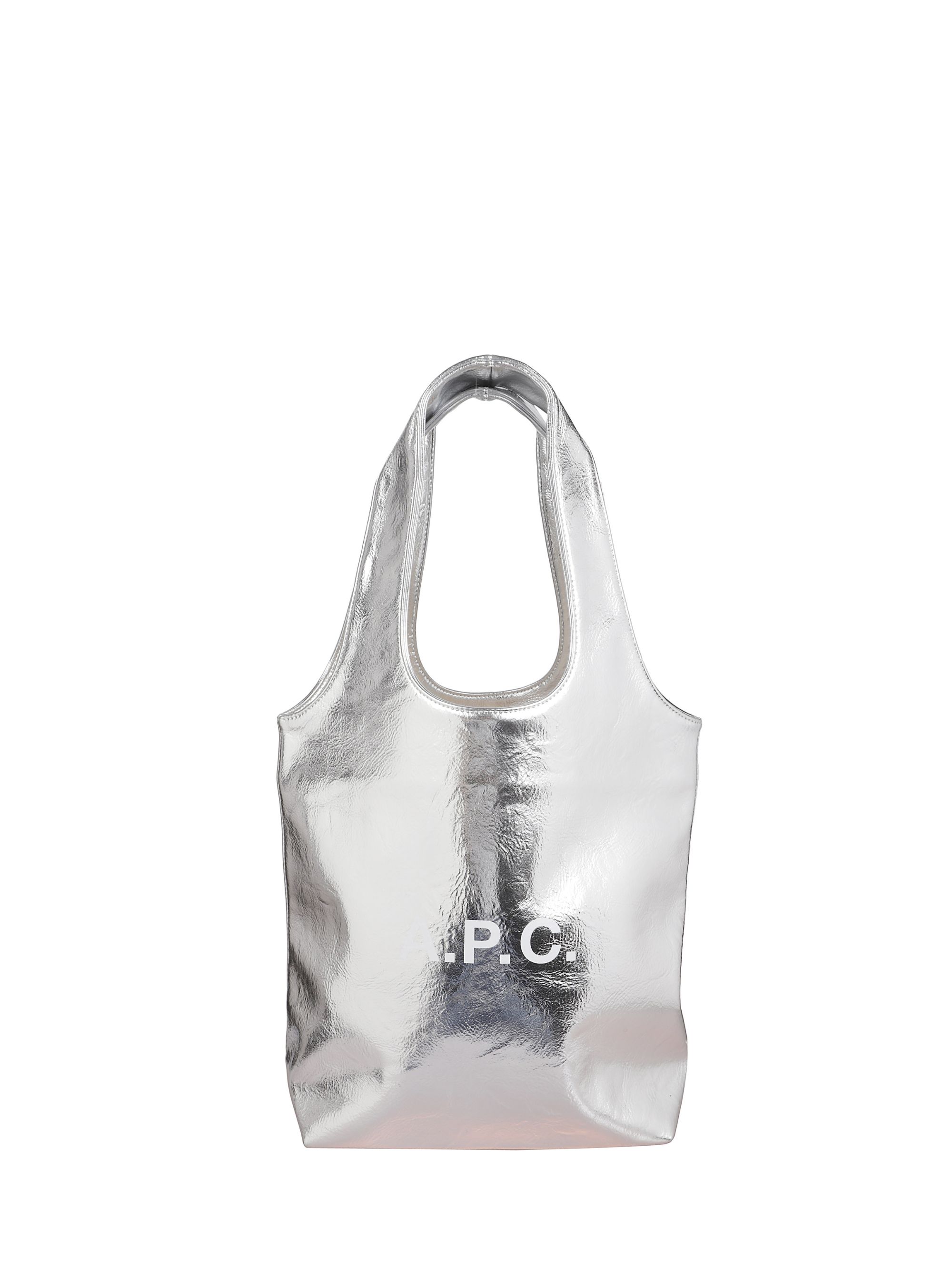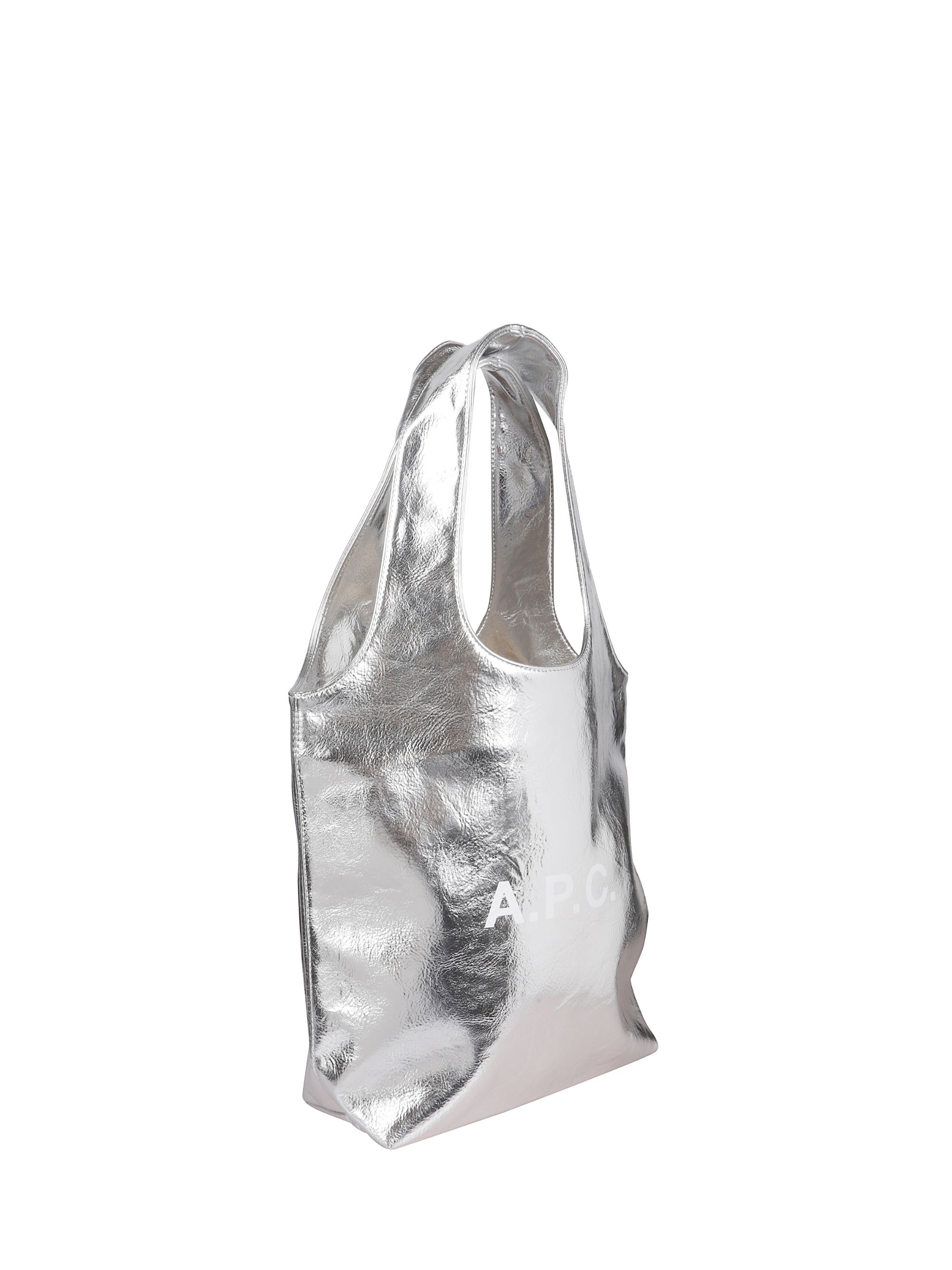Borsa Tote Ninon piccola di A.P.C. argentata in similpelle, caratterizzata da due ampi manici, logo a contrasto sul fronte e scomparto principale con tasca interna applicata. Dimensioni: 34 x 53 x 11 CM.