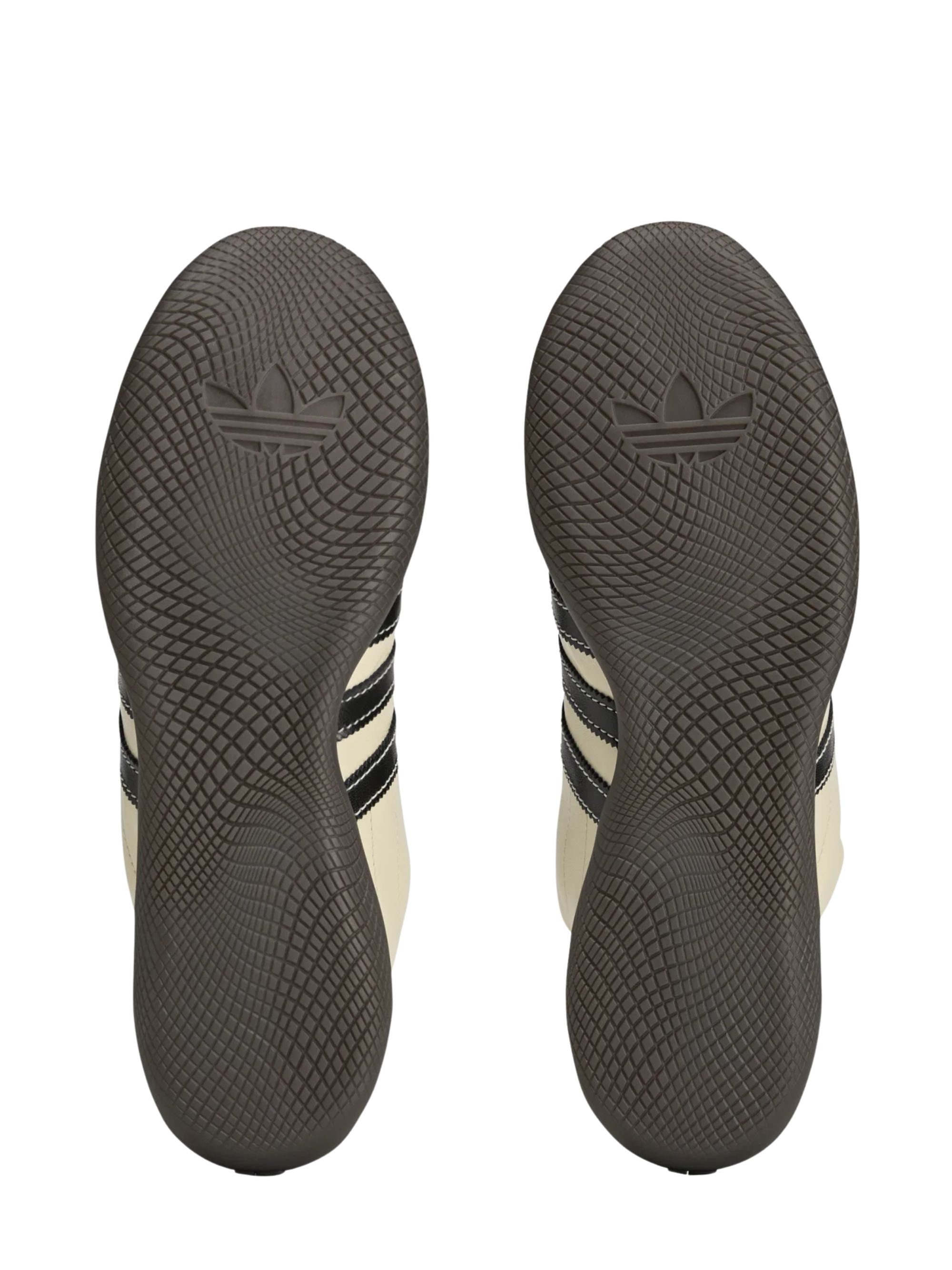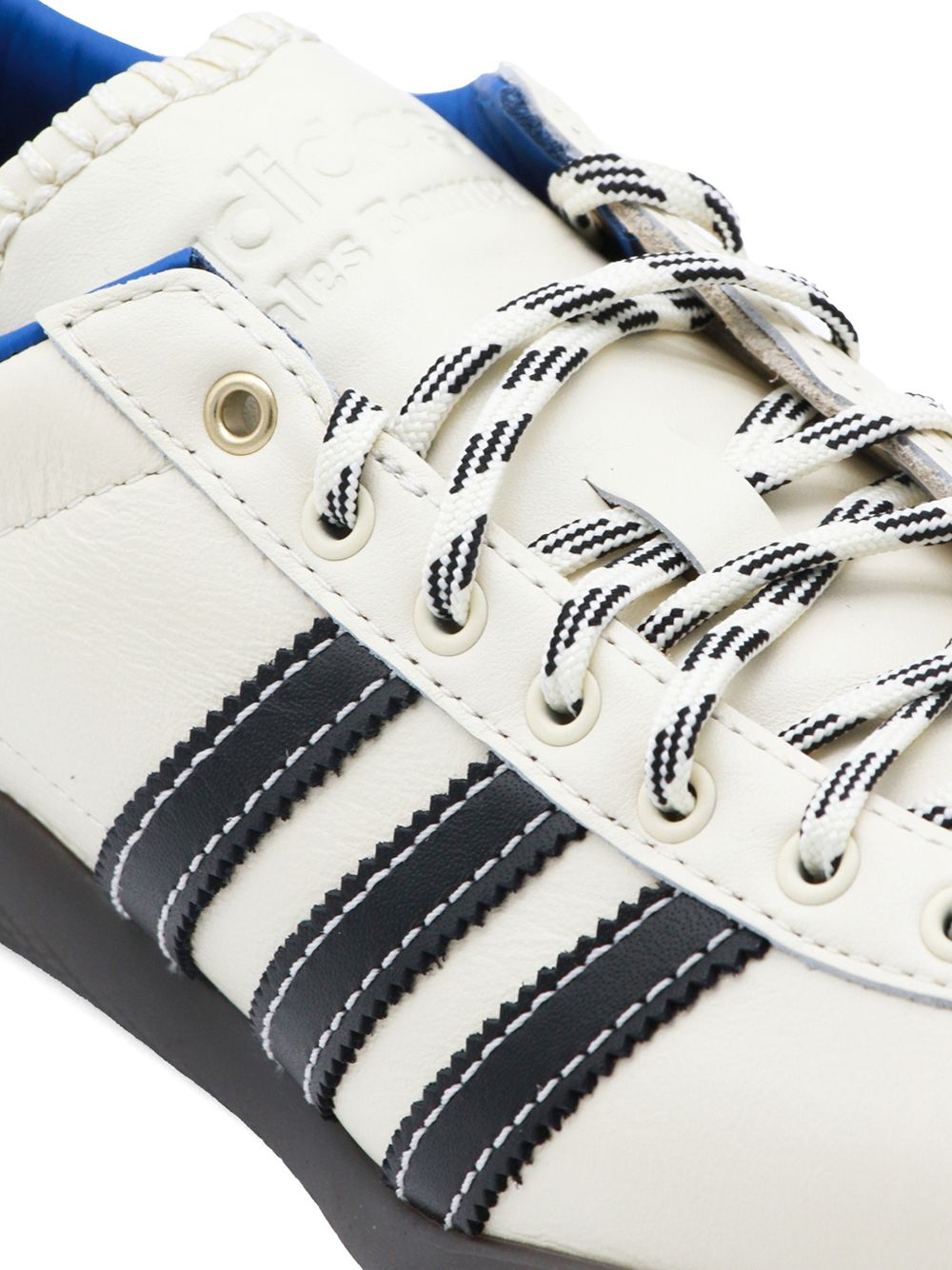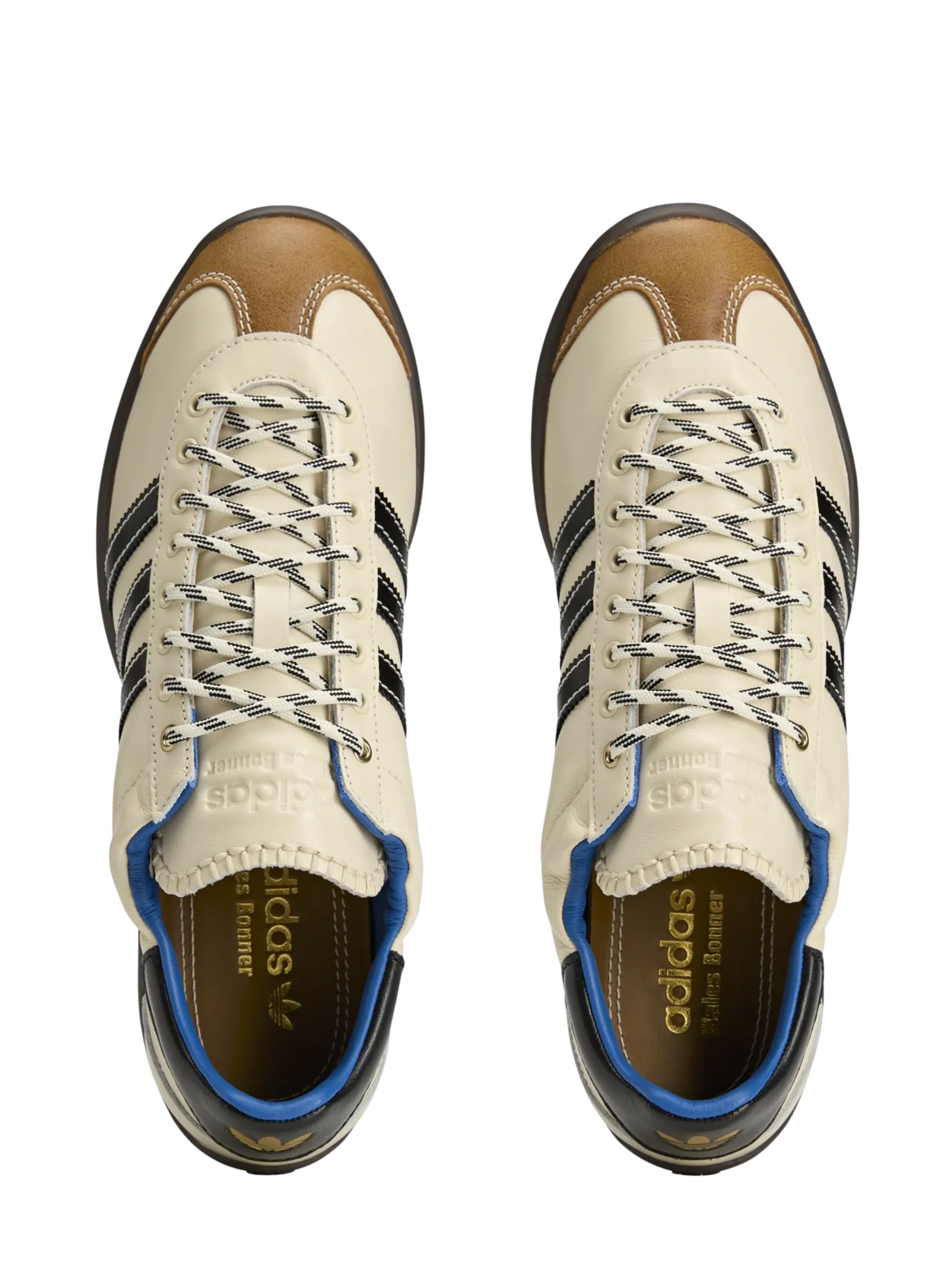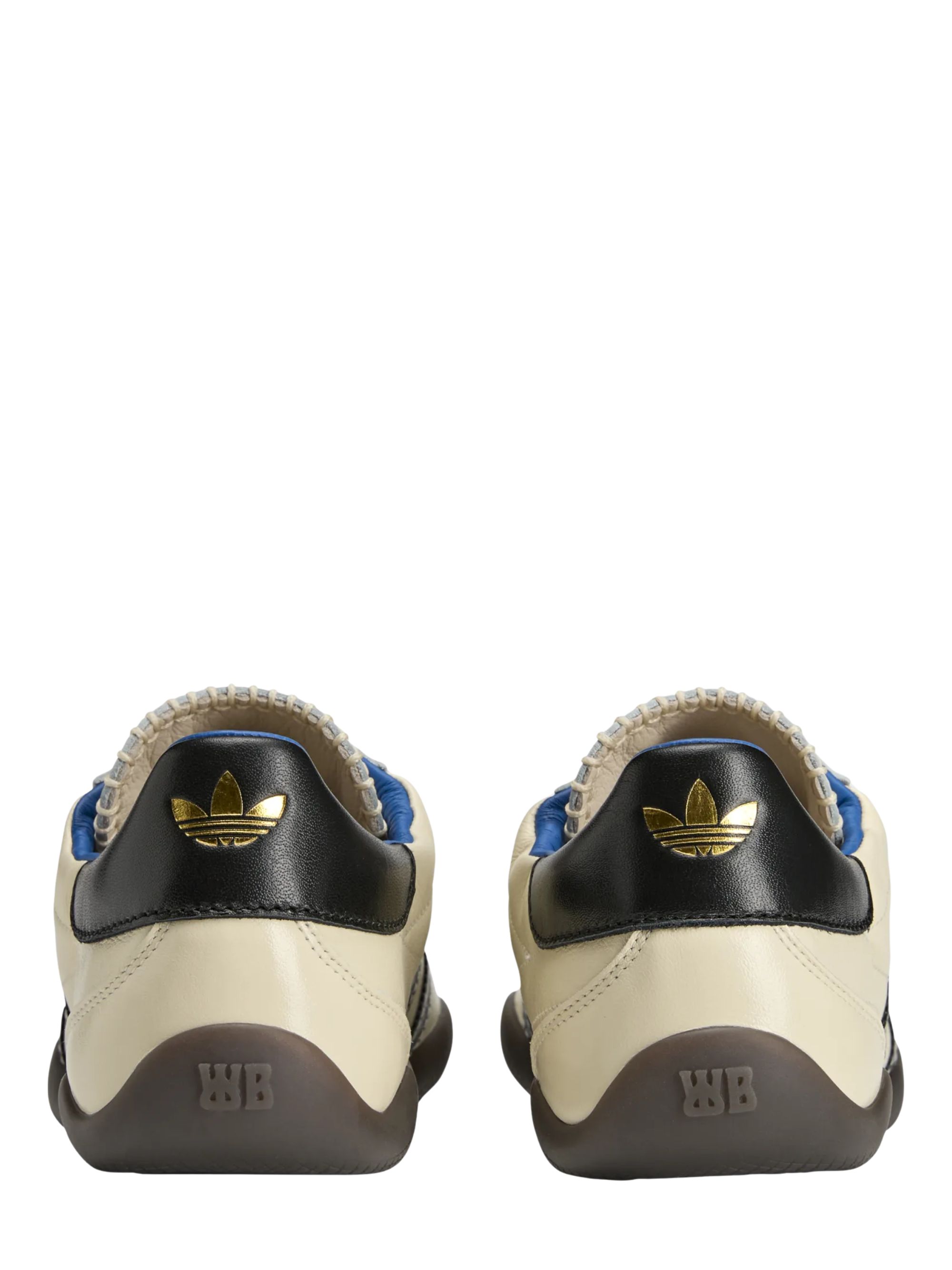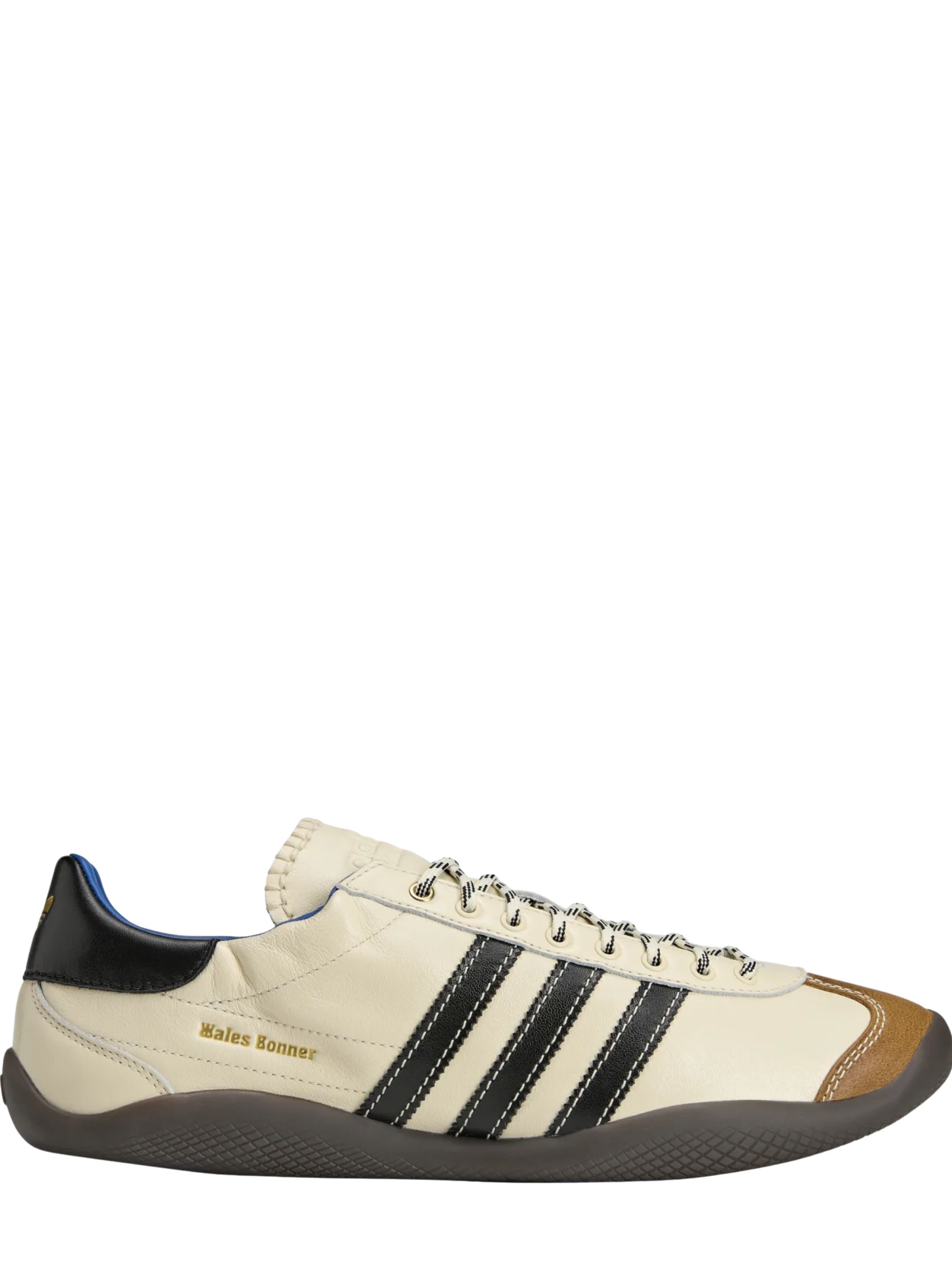 Sneaker Karintha di ADIDAS BY WALES BONNER panna in pelle con dettagli a contrasto neri, logo oro, cuciture a vista a contrasto, dettagli in pelle scamosciata e suola in gomma marrone.