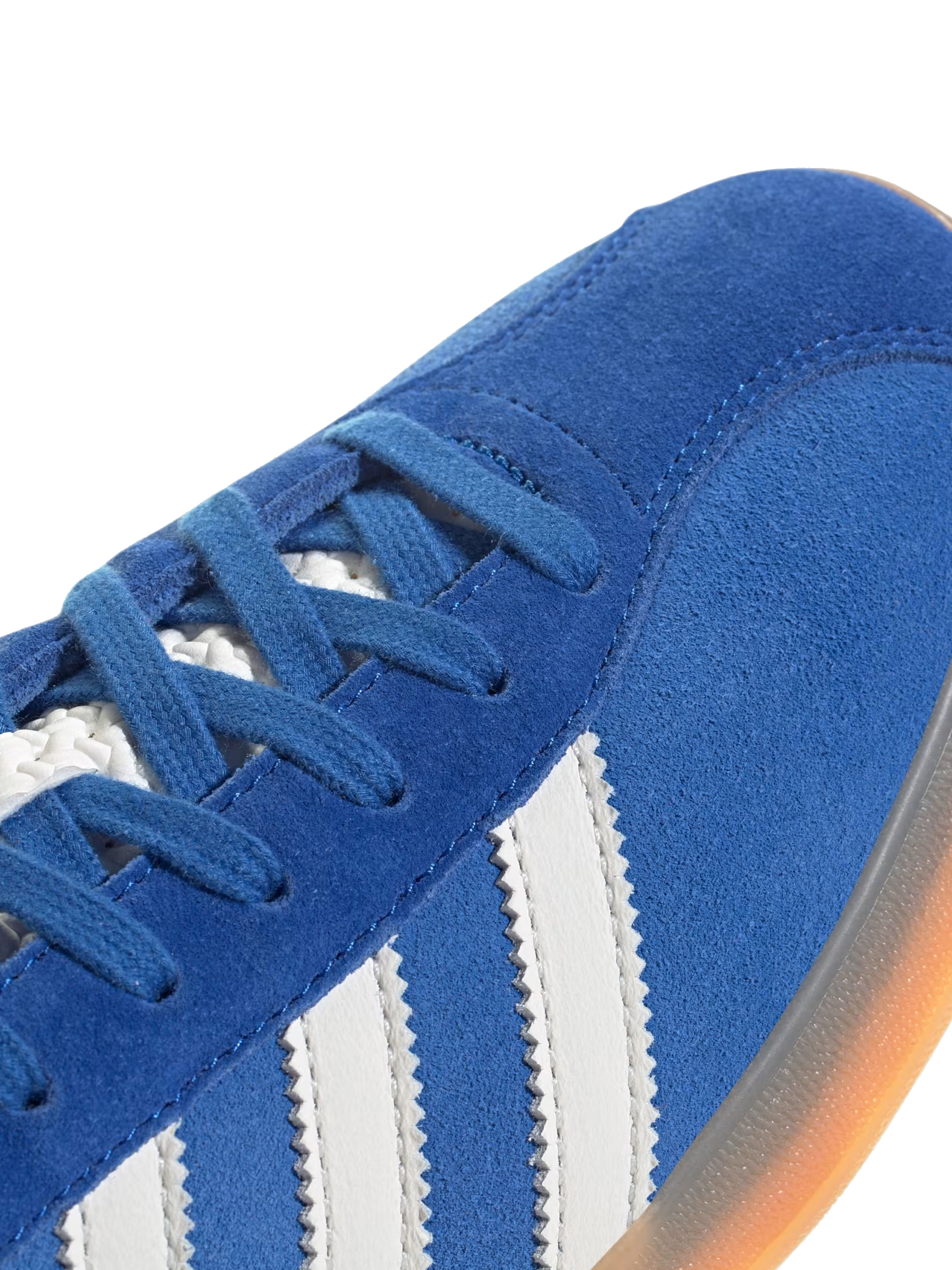 Sneaker Gazelle di ADIDAS blu in pelle scamosciata con dettagli bianchi in pelle, punta tonda e suola in gomma marrone.