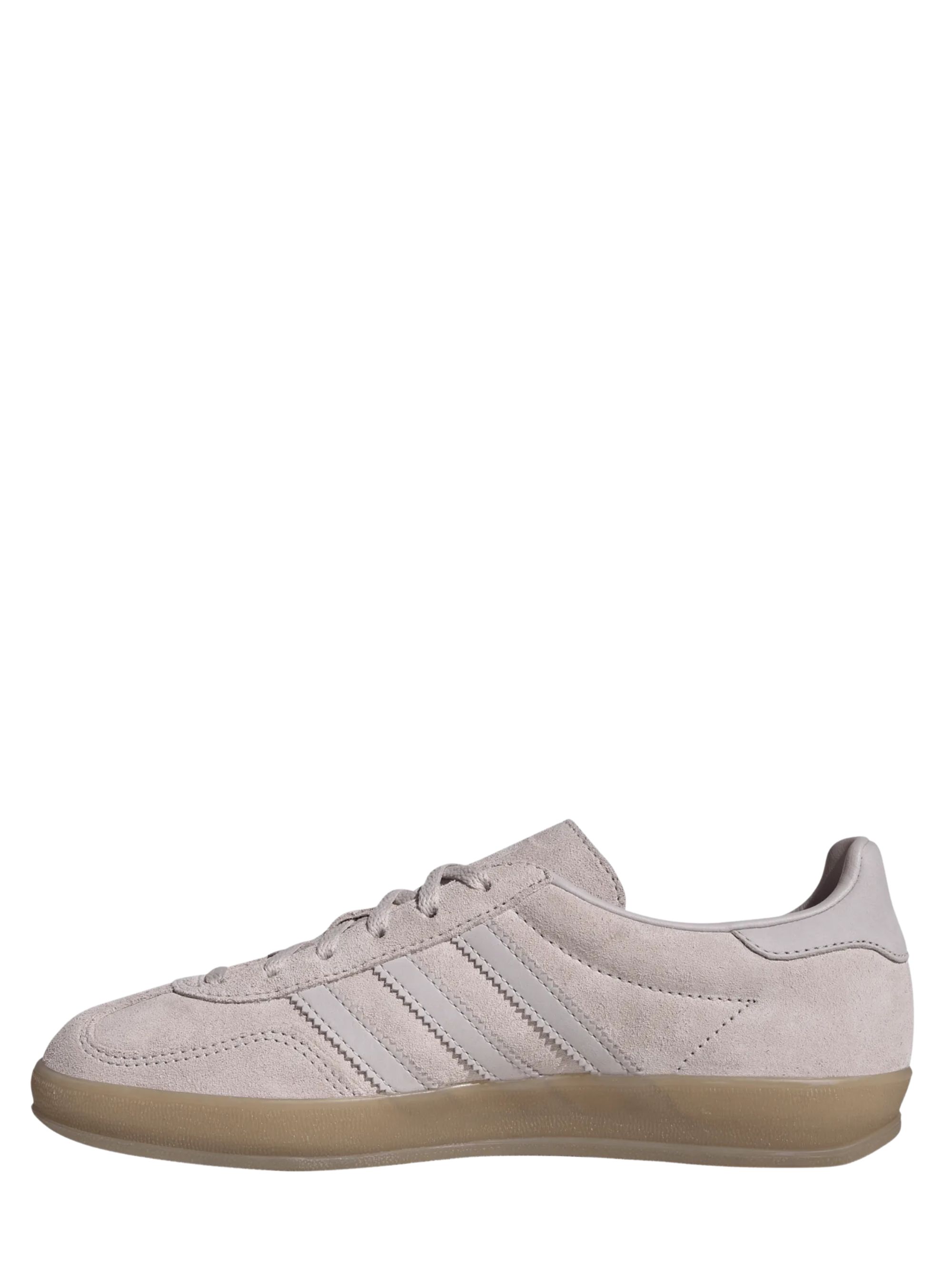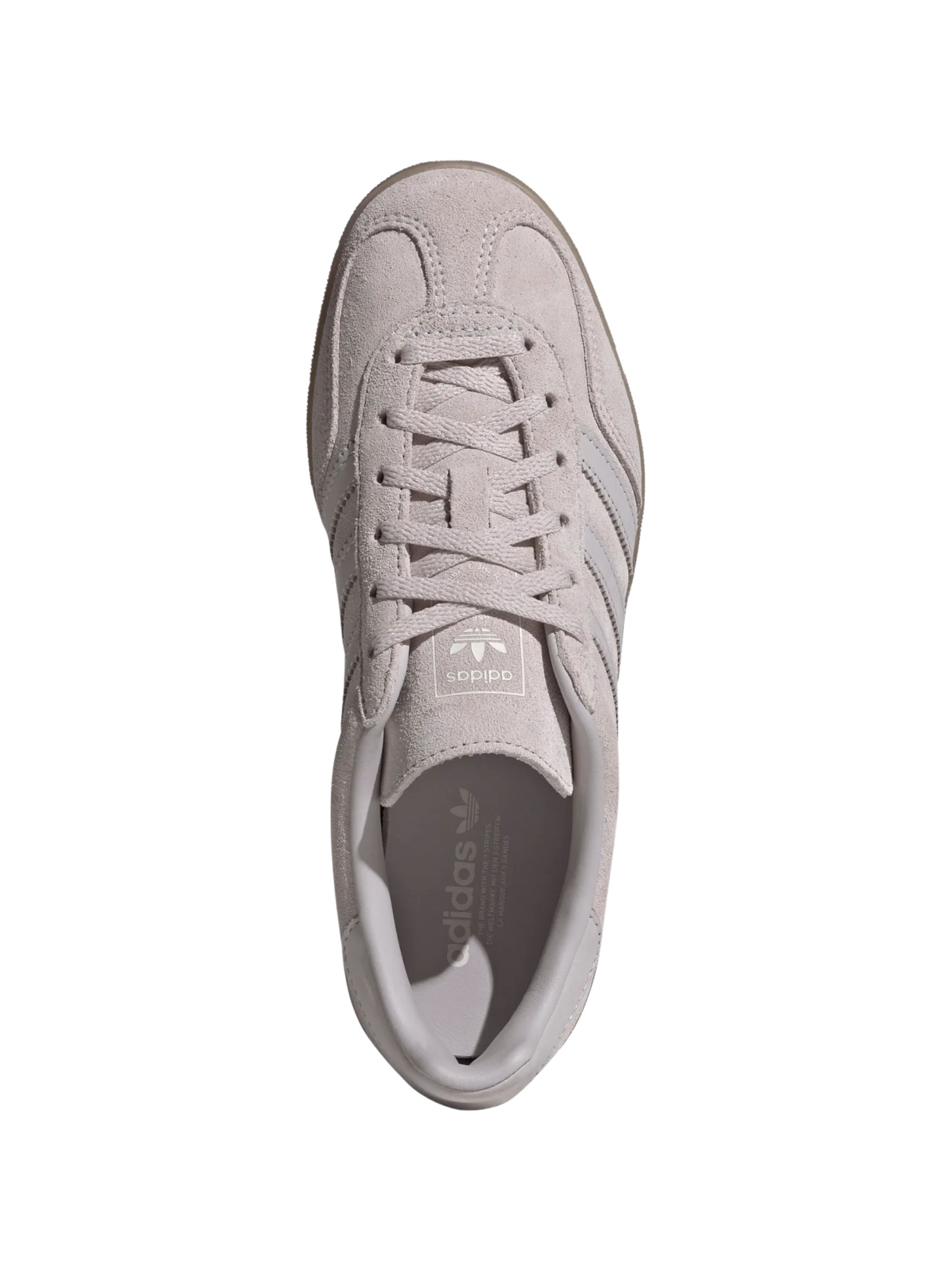 Sneaker gazelle indoor di ADIDAS grigia in suede, dettagli tono su tono, chiusura con lacci e suola in gomma.