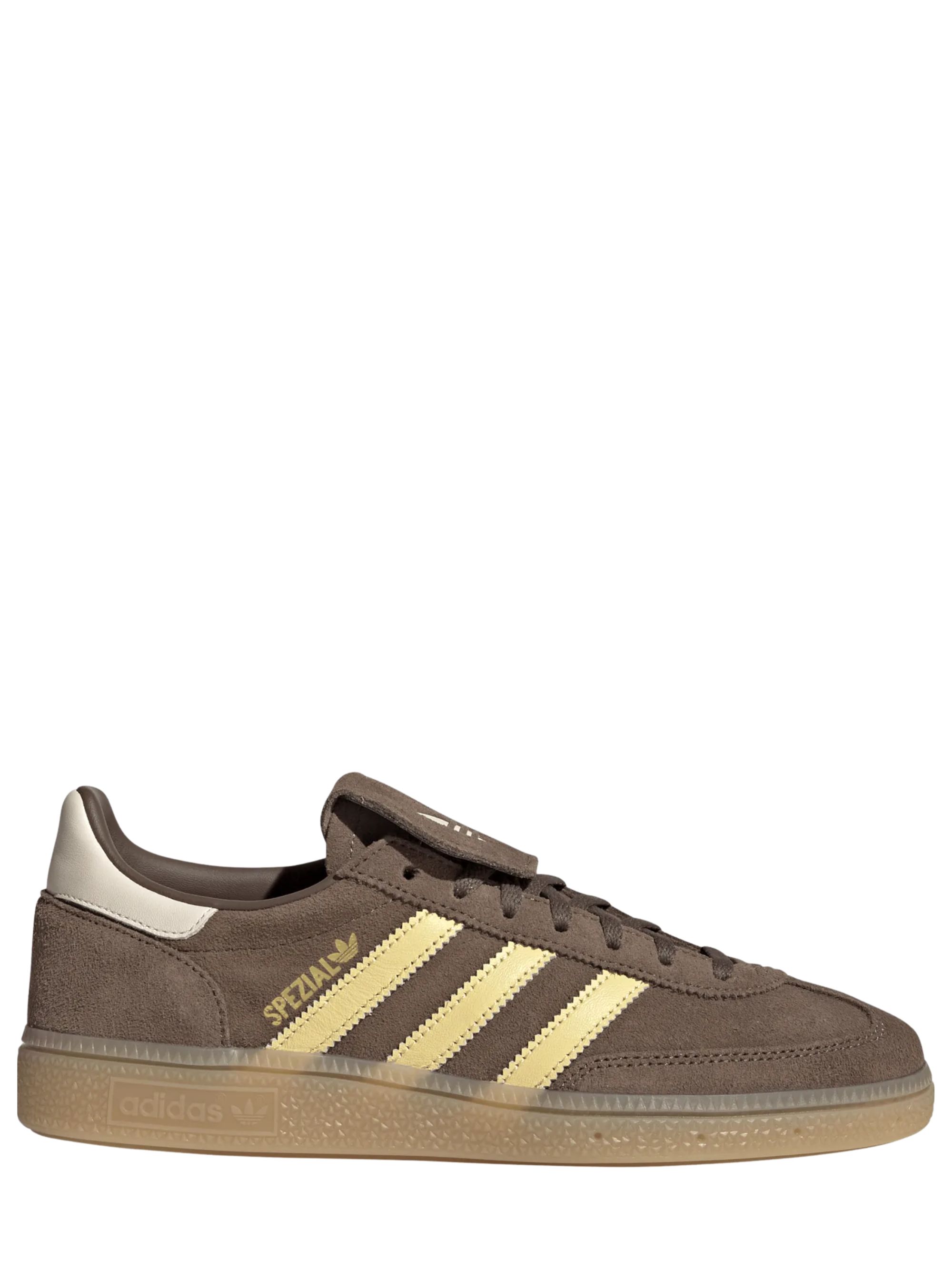 Sneaker Handball spezial di ADIDAS caratterizzata da chiusura con lacci, logo 3 strisce gialle, cuciture a T, finitura laterale in lamina, suola in gomma e soletta in tessuto.