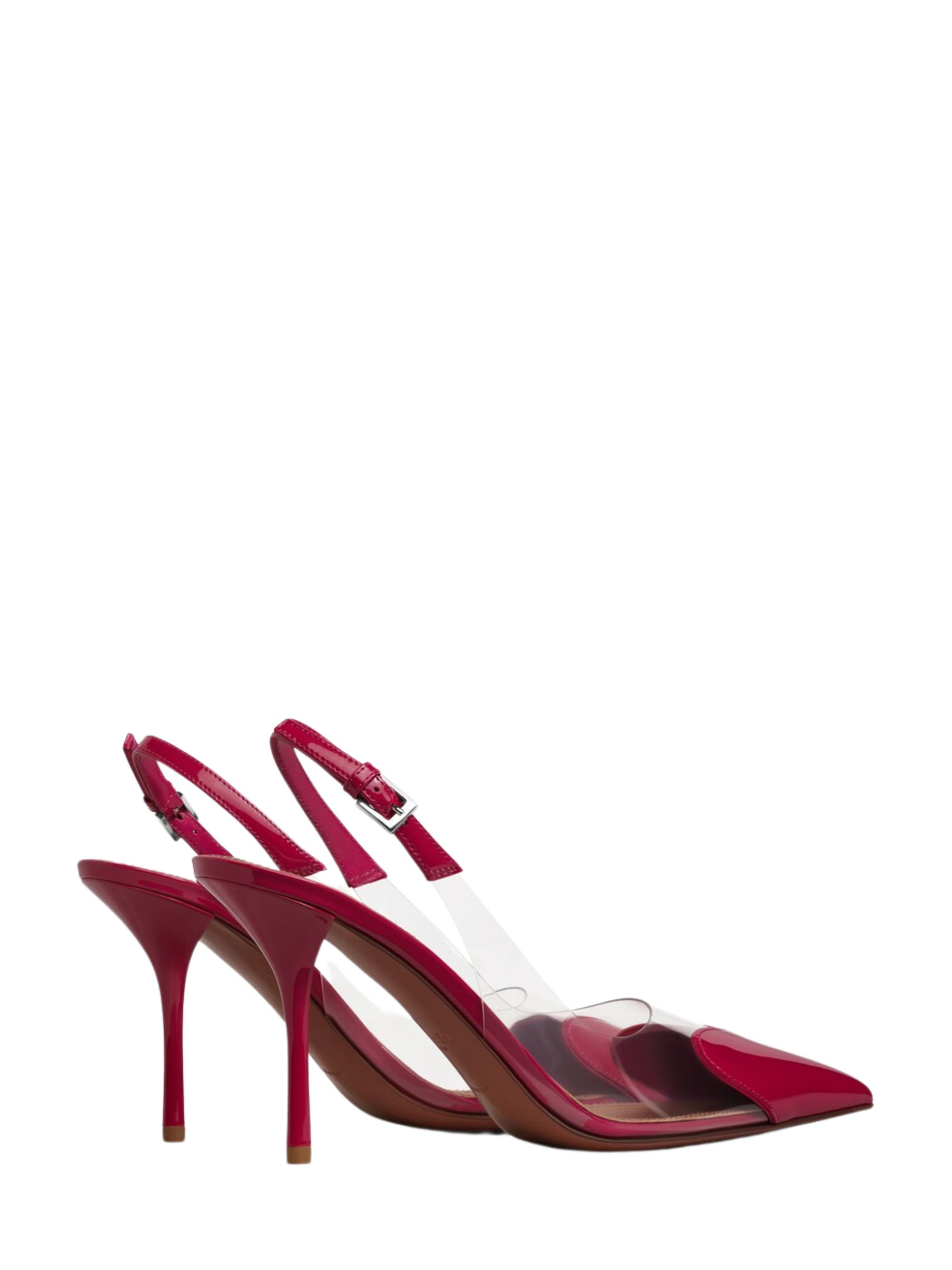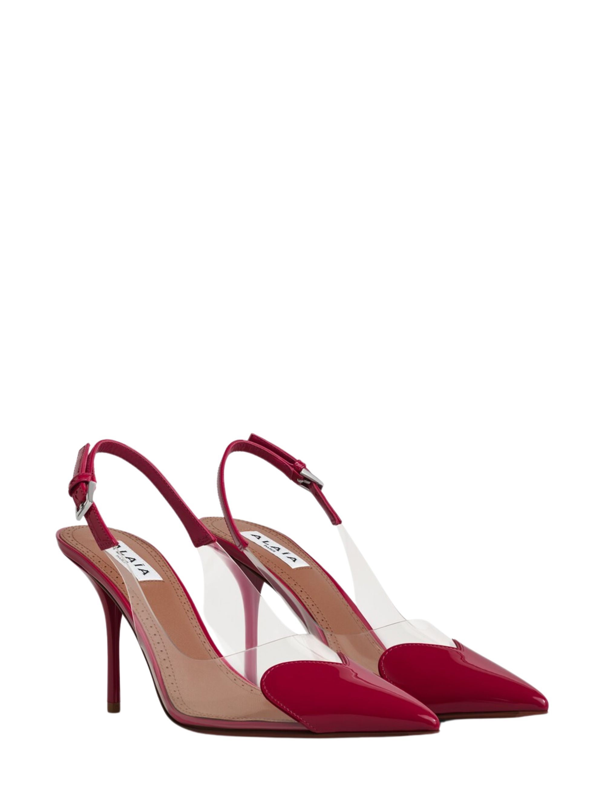 Slingback Le Coeur di ALAIA rossa in pelle con dettaglio a cuore sul davanti, tacco kitten 5,5 cm e chiusura con cinturino.