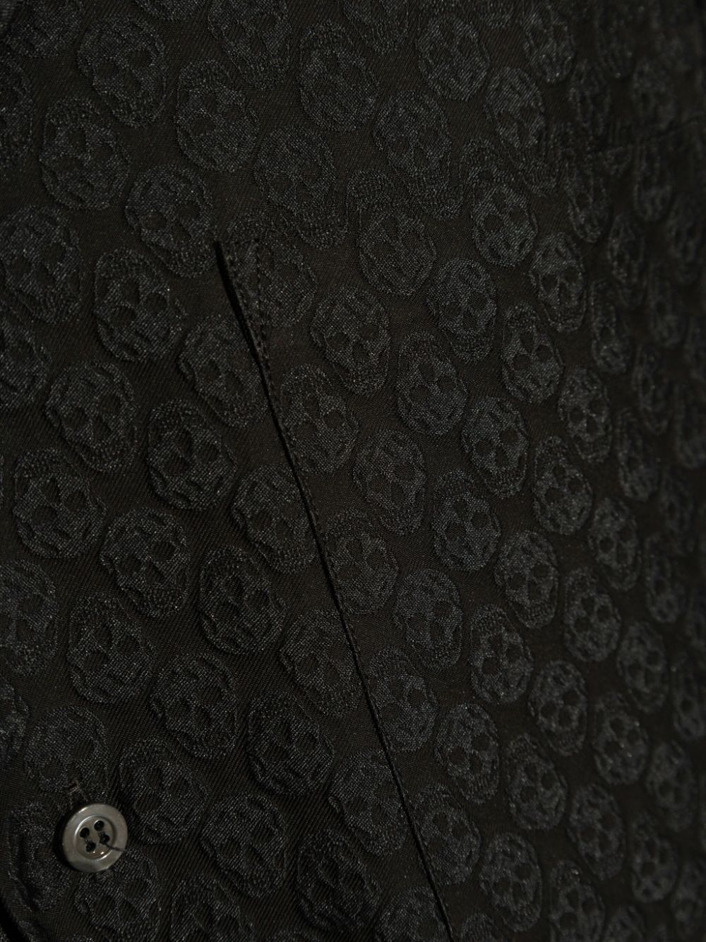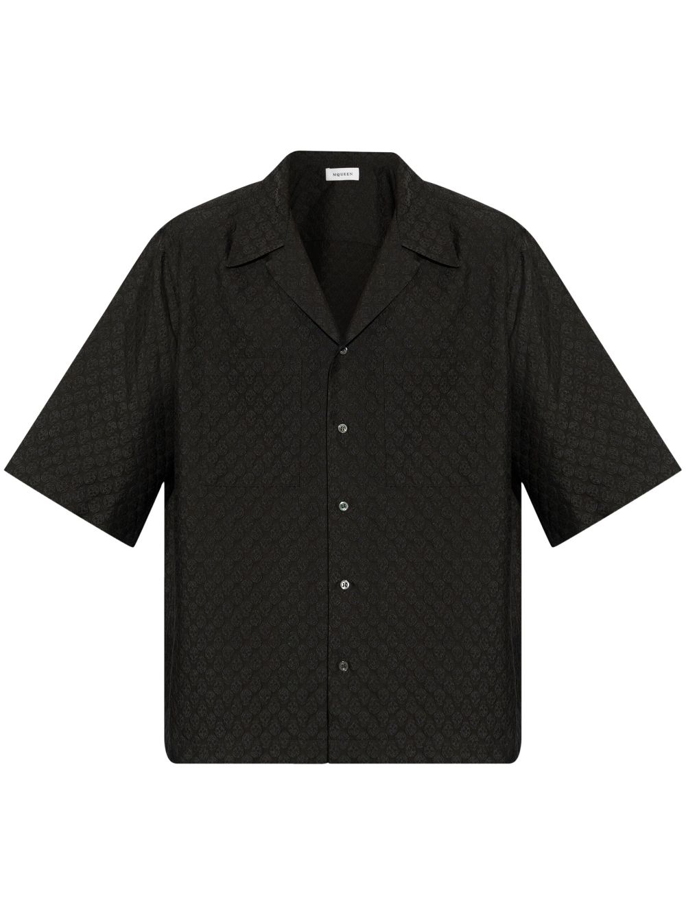 Camicia jacquard di ALEXANDER MCQUEEN nera in viscosa con tasca applicata sul petto, maniche corte e chiusura con bottoni.