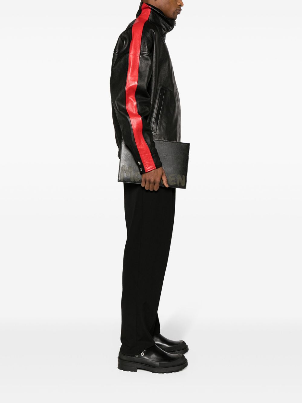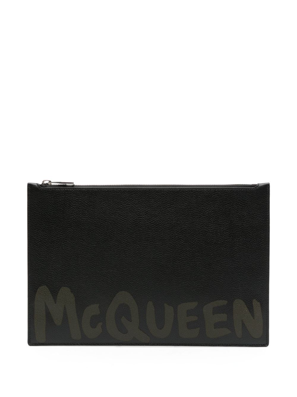 Pouch in pelle nera di ALEXANDER MCQUEEN caratterizzata da logo frontale e chiusura con zip.