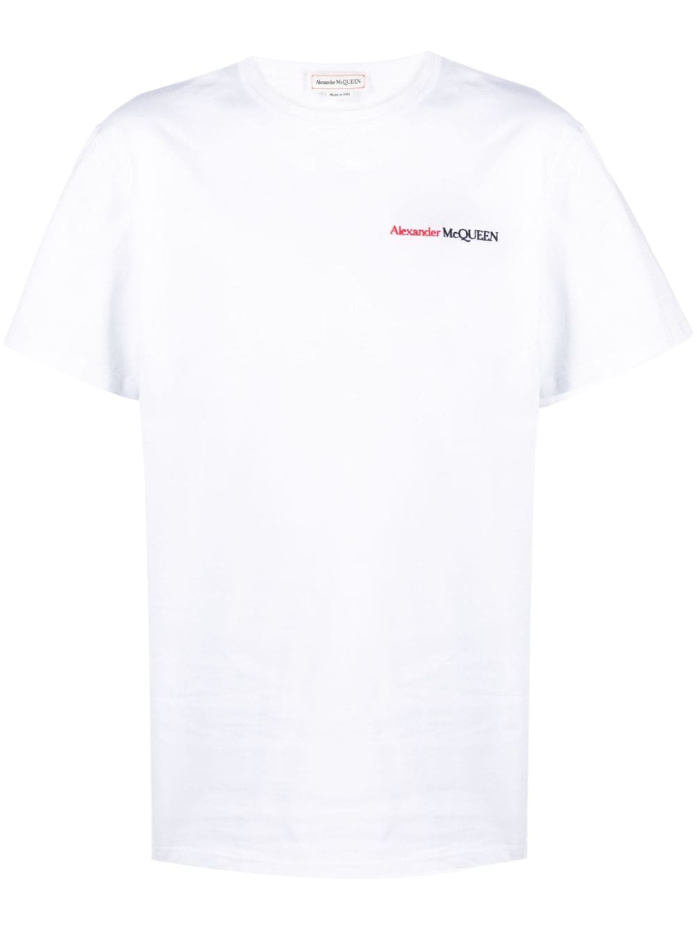 T-shirt con stampa di ALEXANDER MCQUEEN colore bianco, caratterizzata da stampa logo frontale, maniche corte e girocollo