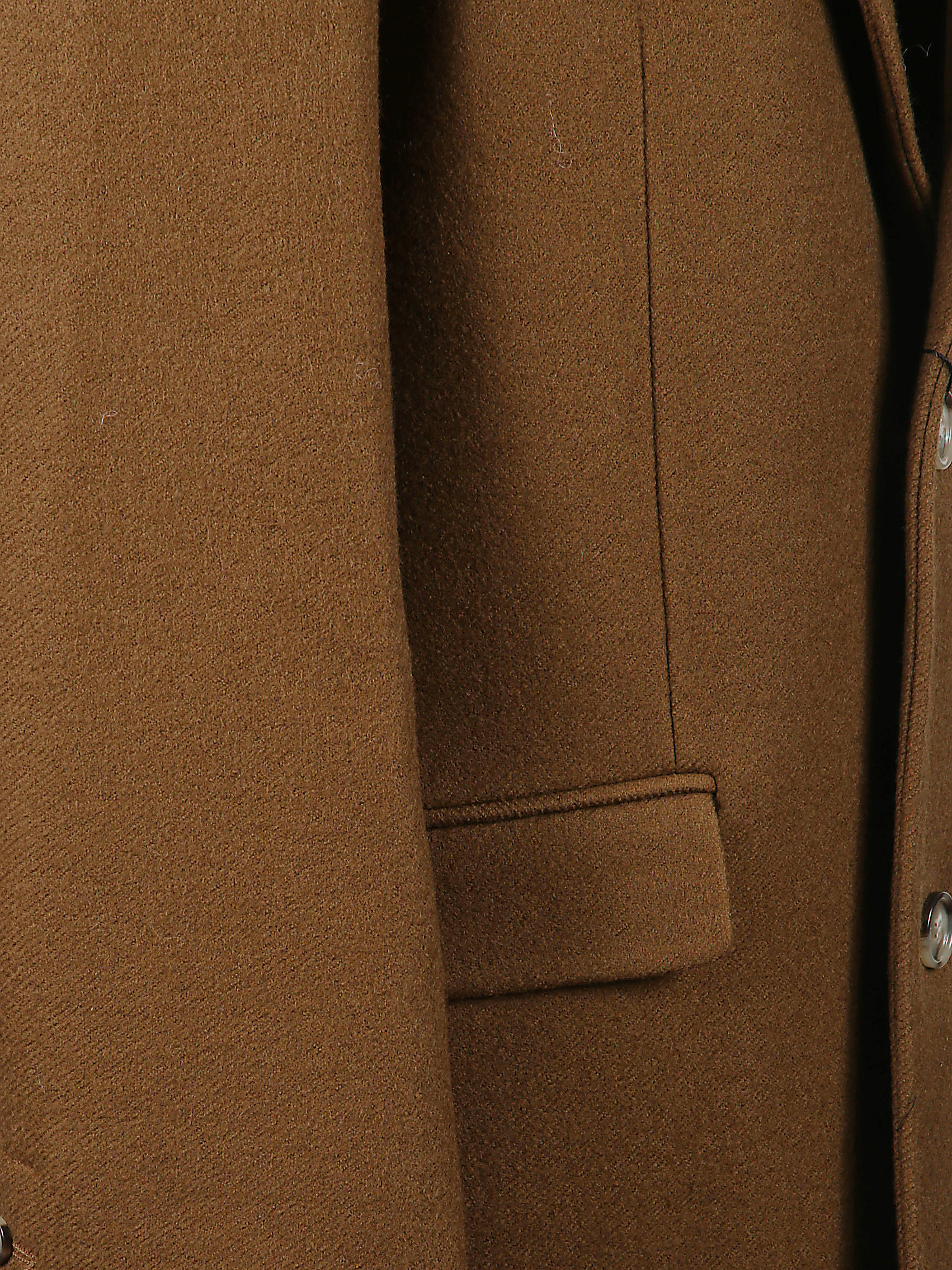 Cappotto lungo di AMI PARIS marrone in lana, caratterizzato da rever classico, tasche con patta sul fronte, taschino sul petto, chiusura con bottoni, polsini con bottoni e spacco sul retro.