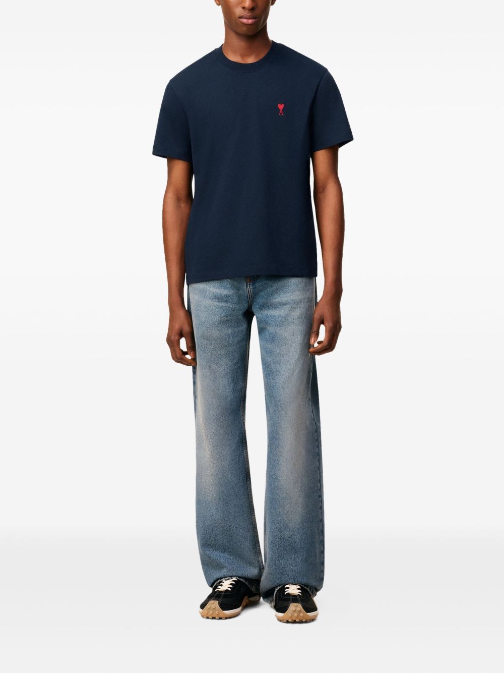 T-shirt Ami de Coeur di AMI PARIS blu in cotone, caraterizzata da girocollo, maniche corte e ricamo Ami de Coeur sul petto.