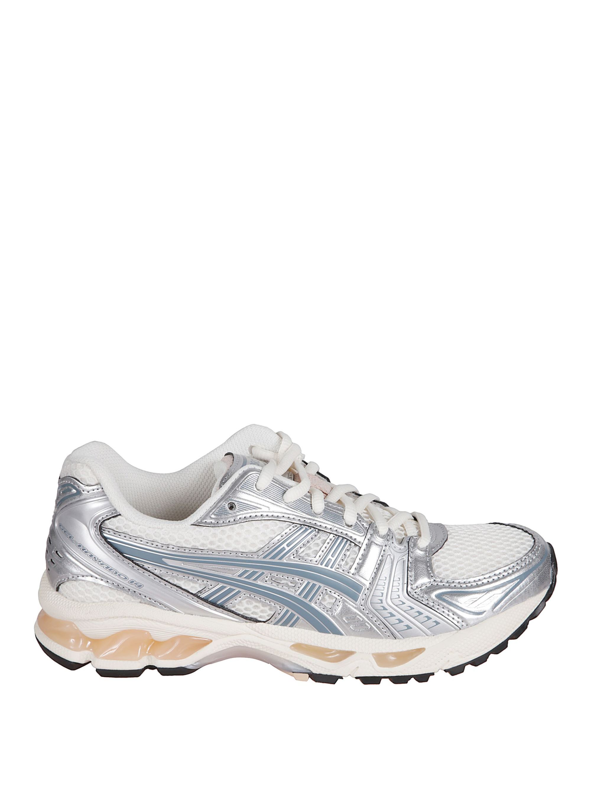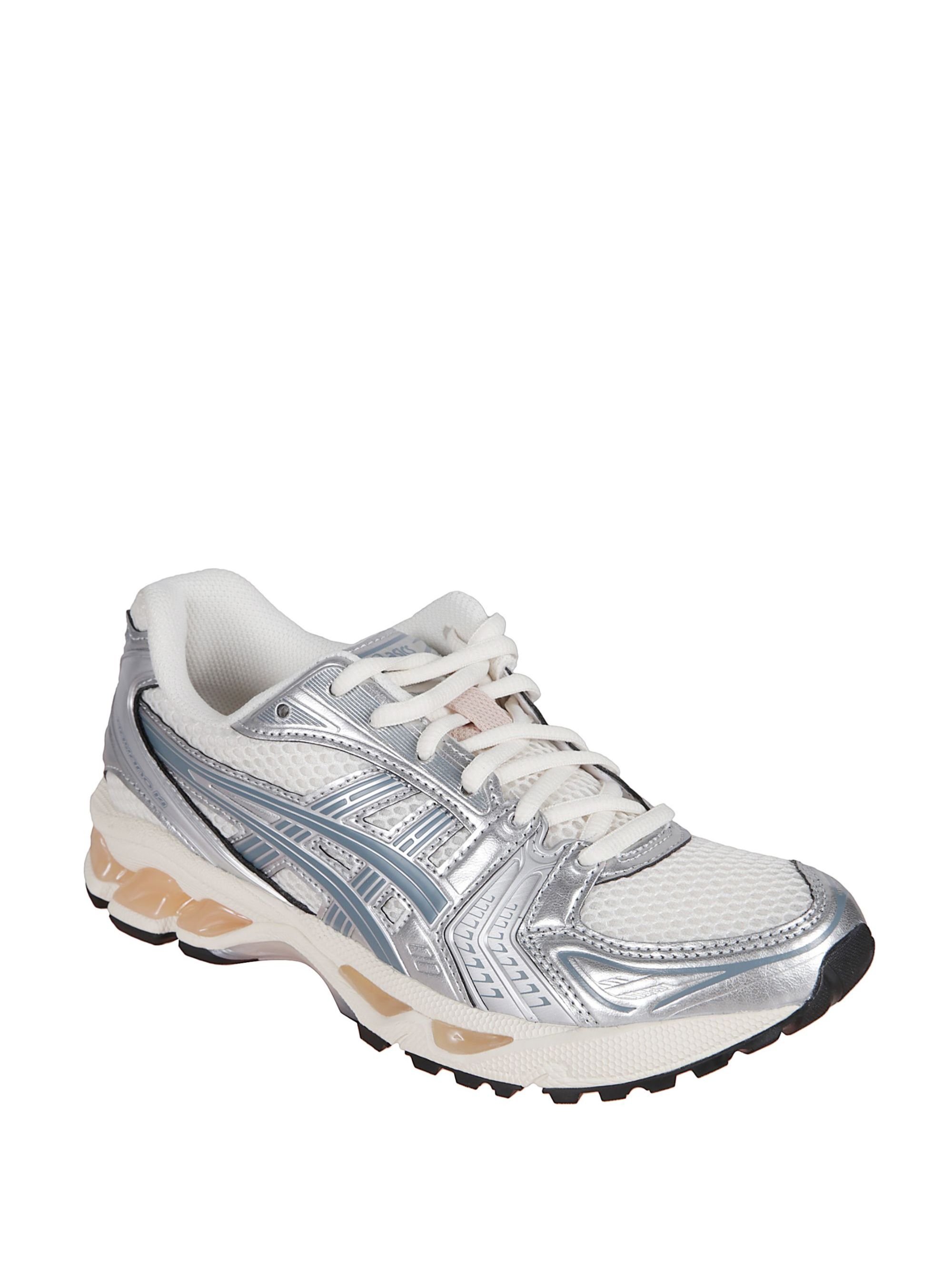 Sneaker Gel-Kayano 14 di ASICS grigio in pelle e mesh, caratterizzata da logo su linguetta, logo laterale in pelle, fondo bicolore, suola in gomma e chiusura con lacci.