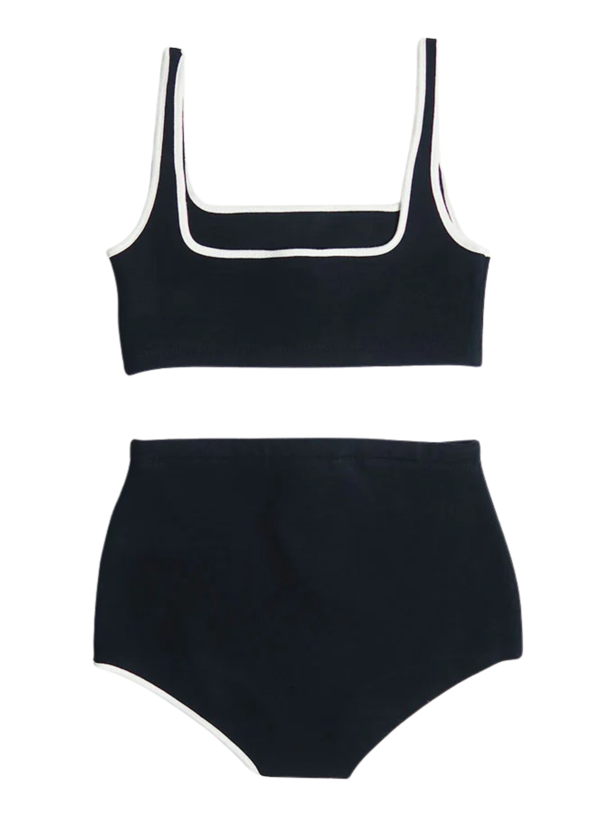 Completo intimo a due pezzi in lana di AURALEE blu con inserto bianco
