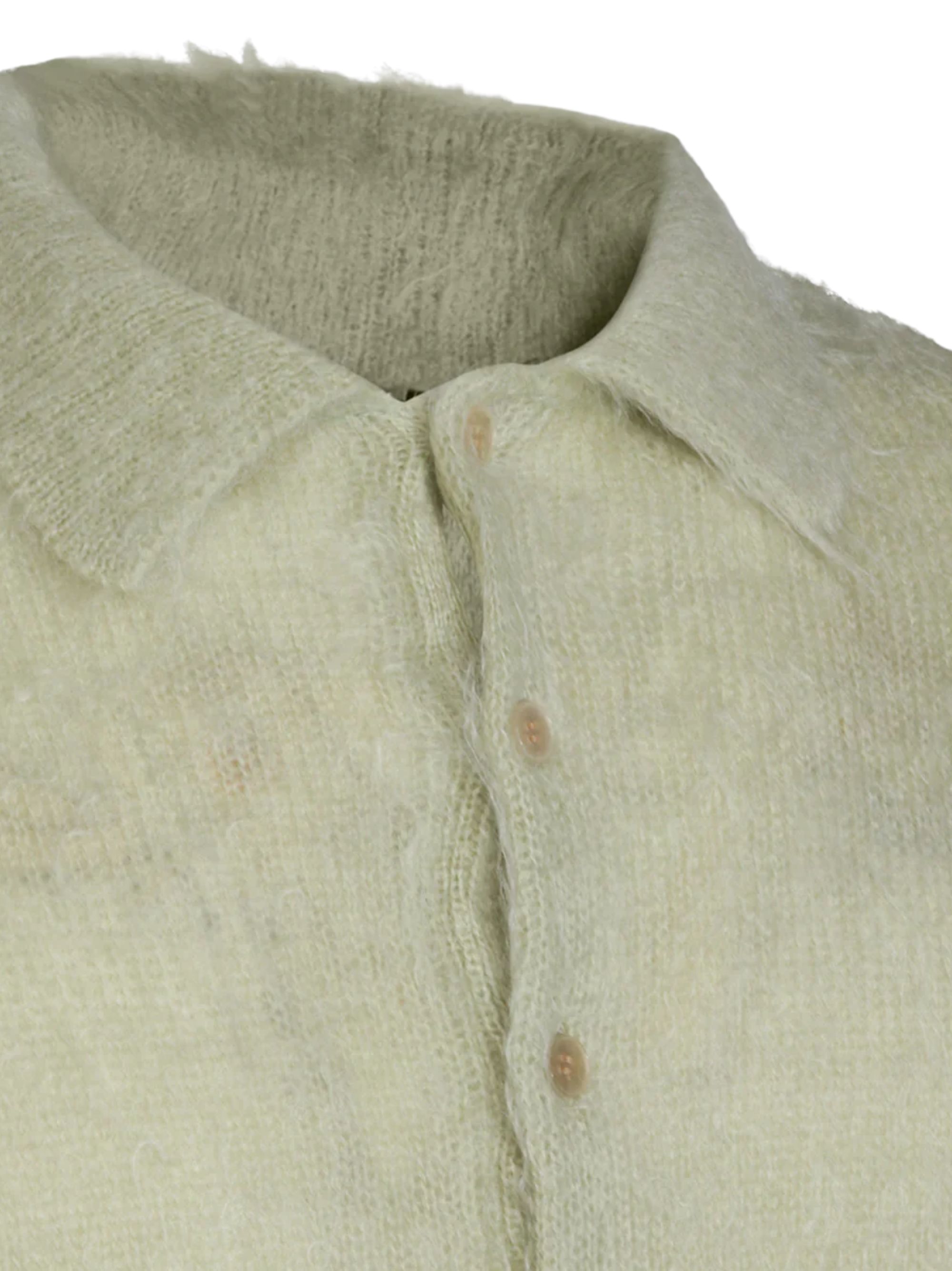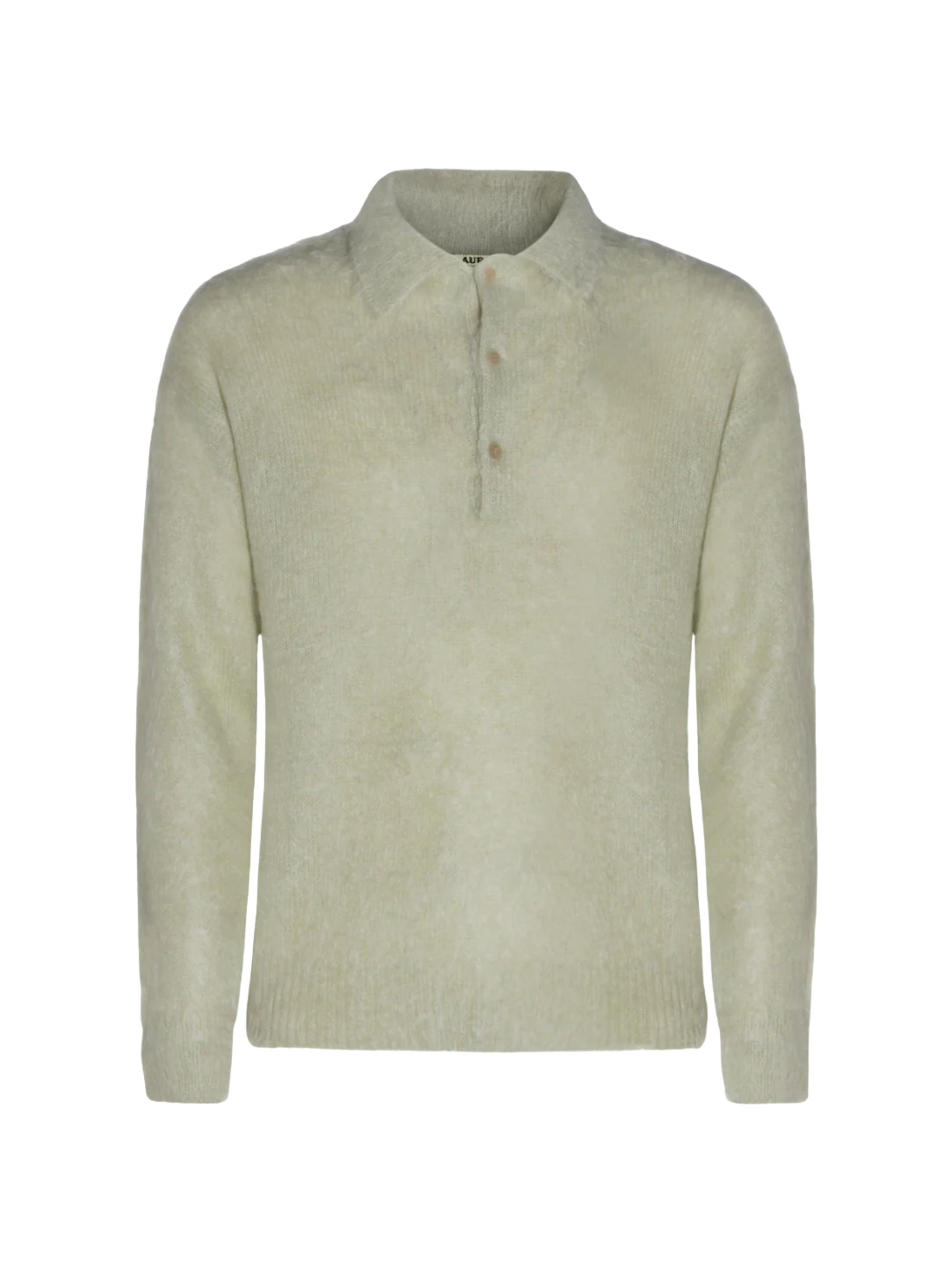 Maglia polo di AURALEE kaki in lana e mohair con orlo e polsini a costine.